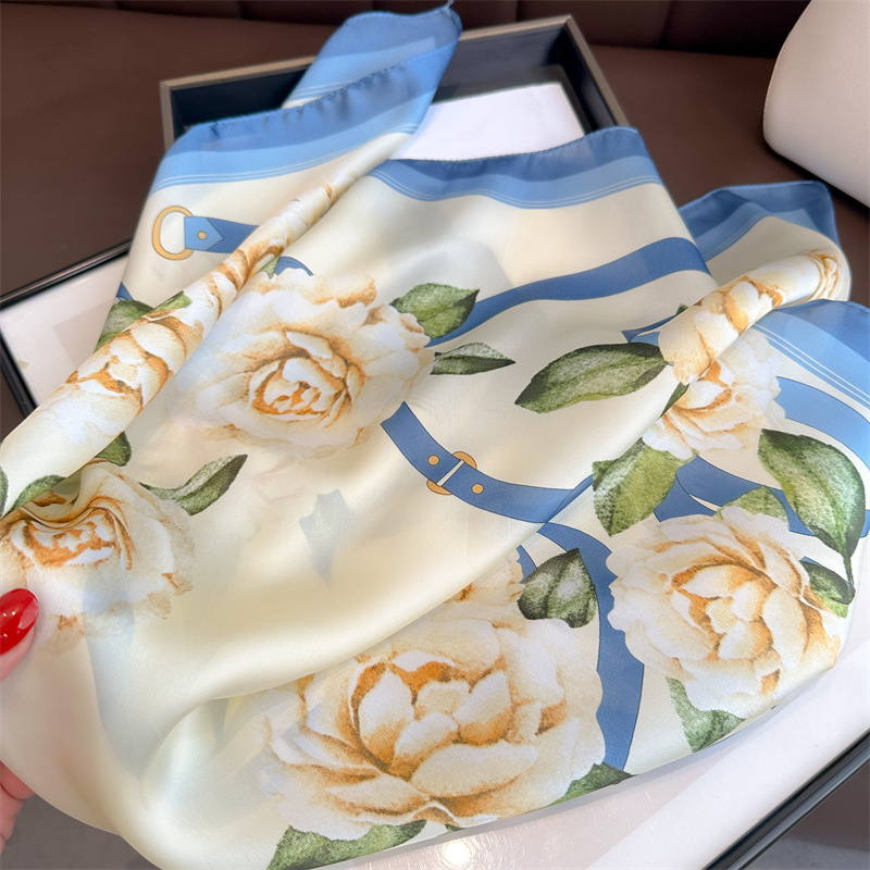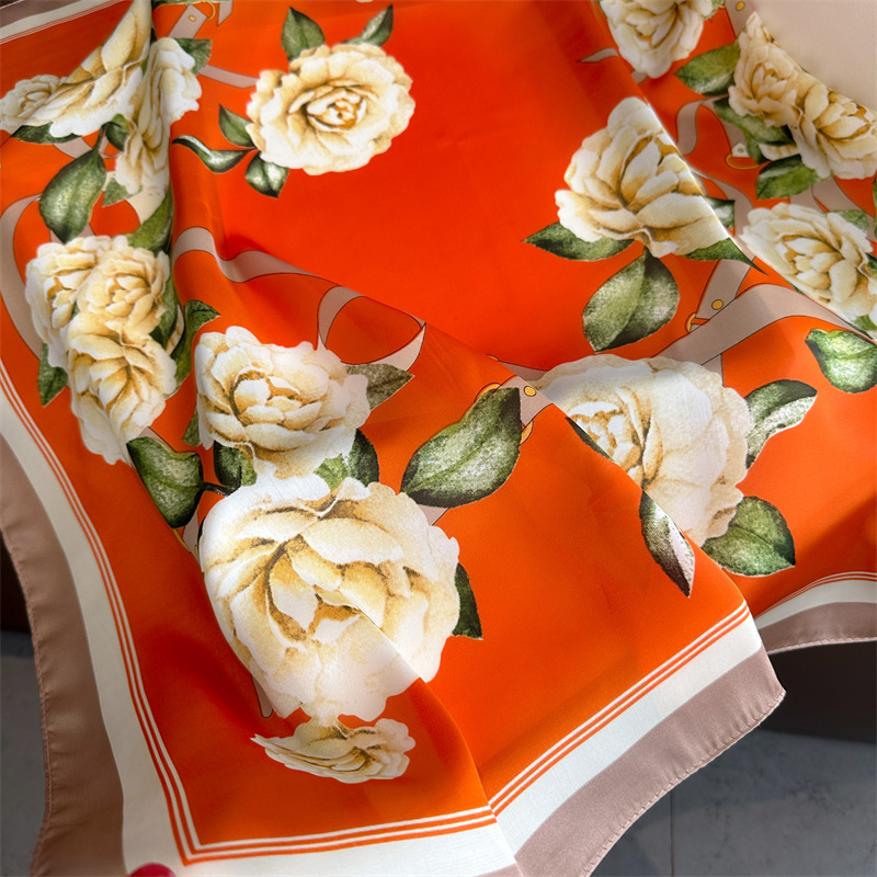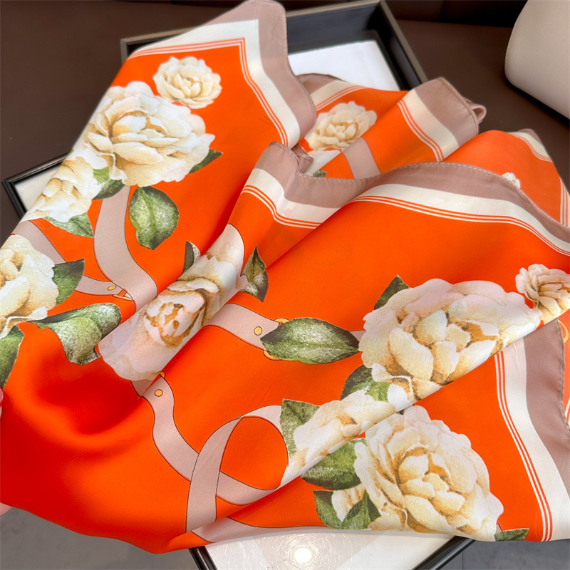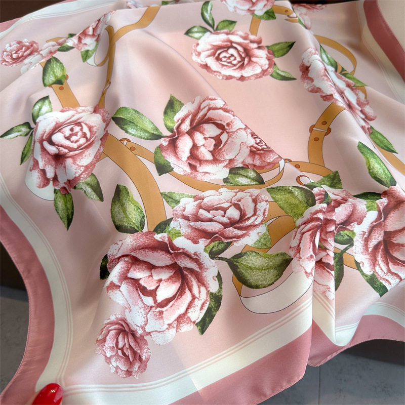 핑크 로즈 프린트 실크 스카프 70 모조 실크 고급 스퀘어 스카프 봄과 여름 얇은 스카프 여성용 모든 매치 스카프 넥타이 머리 스카프스토어 가기