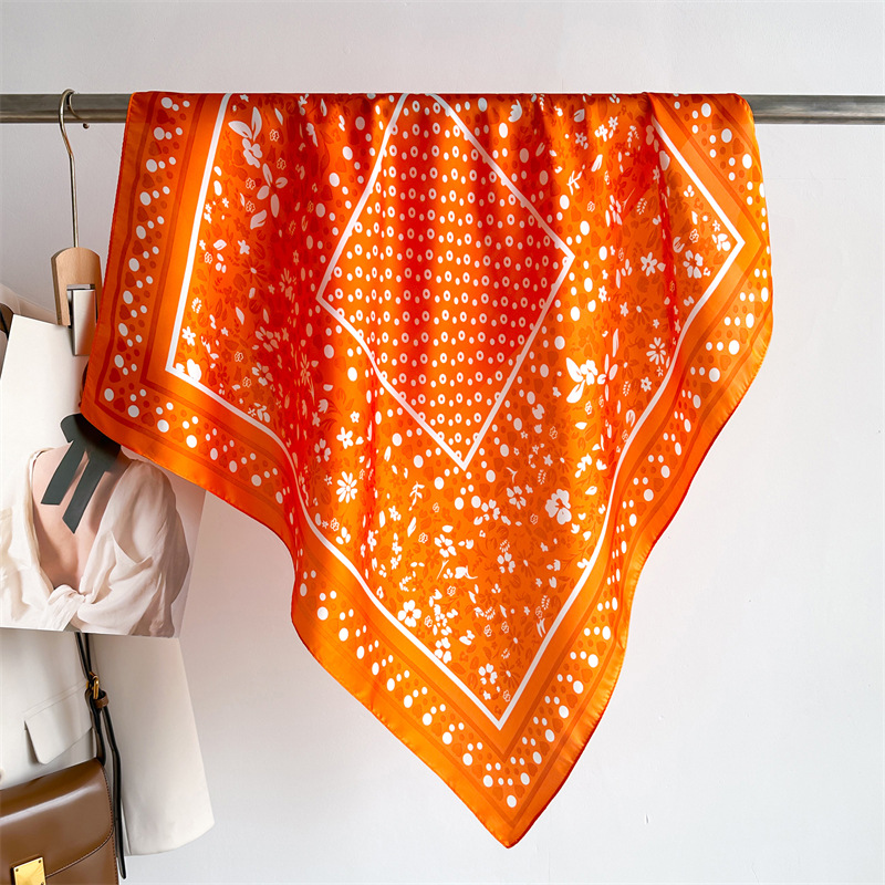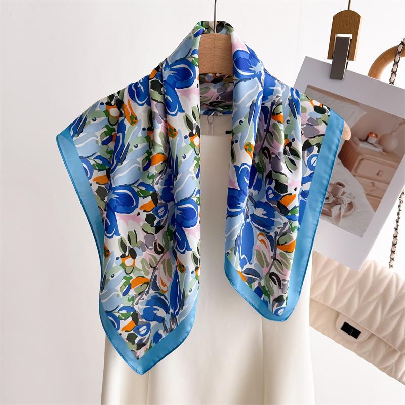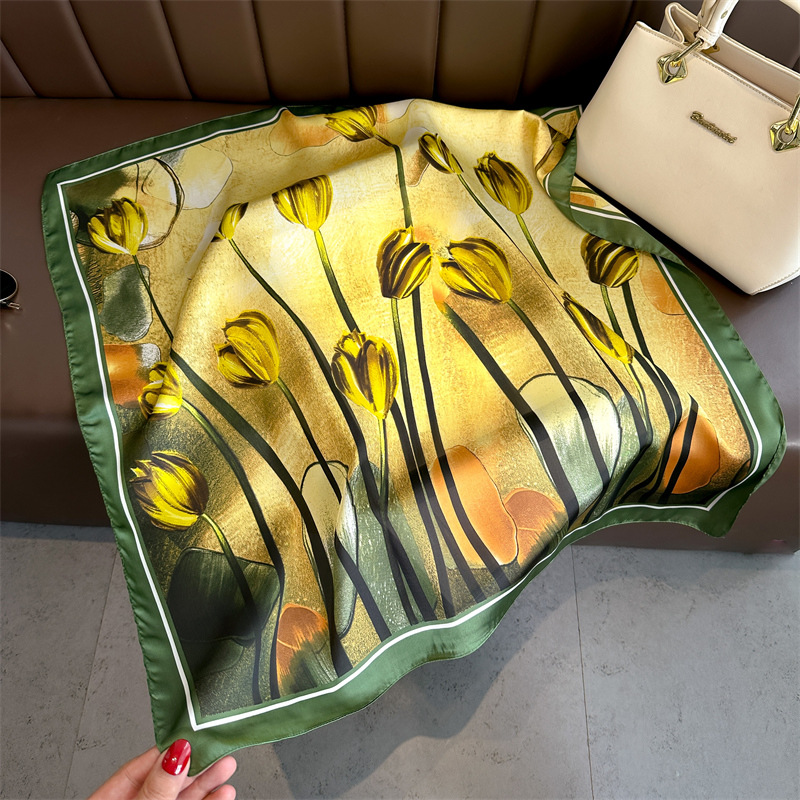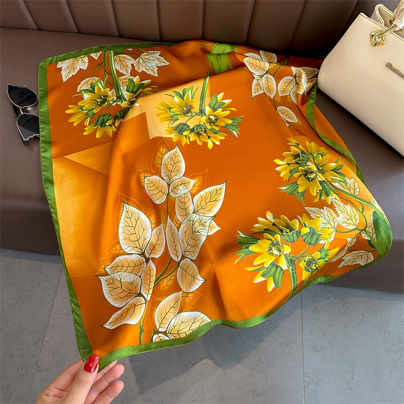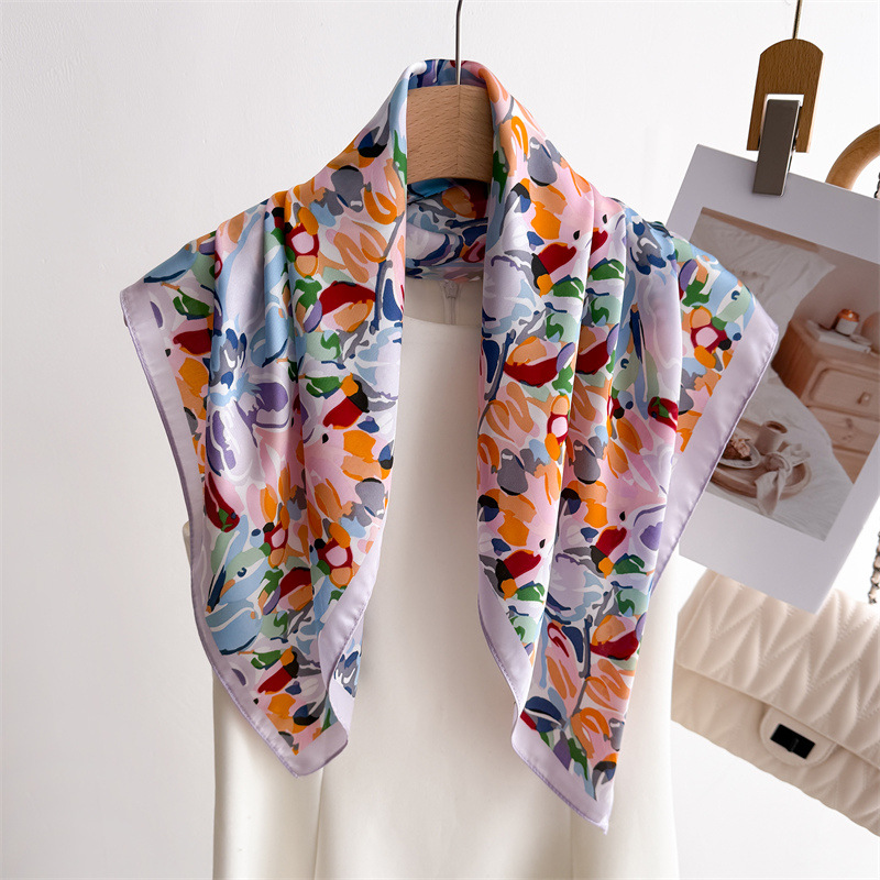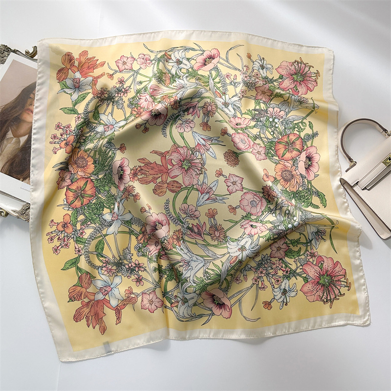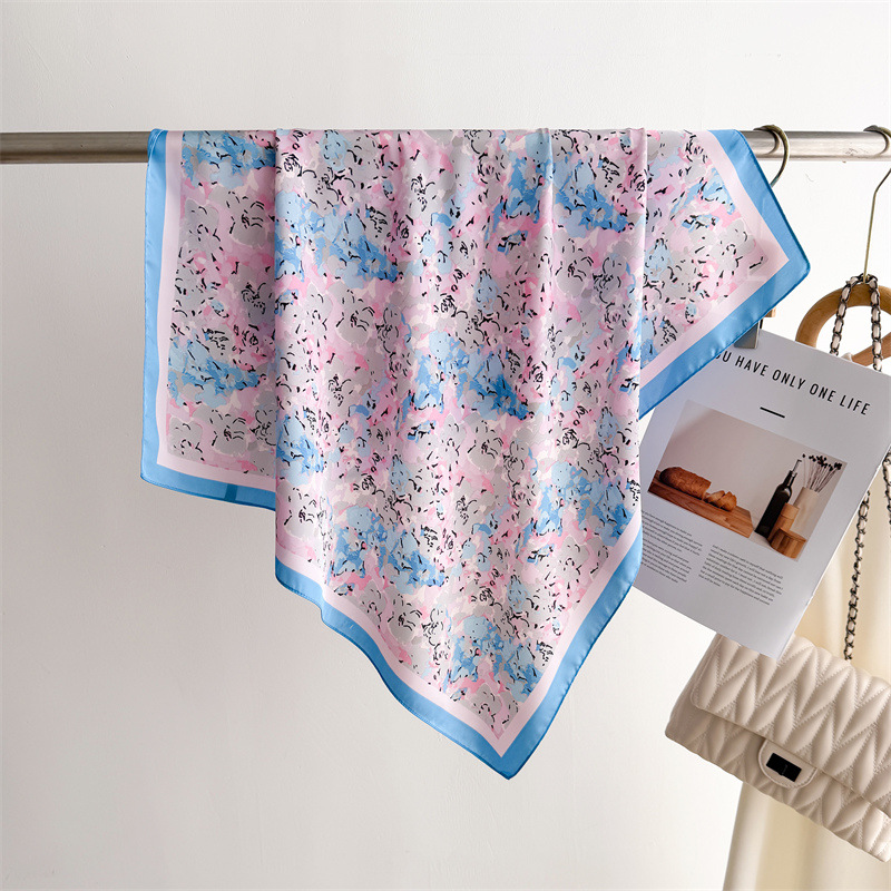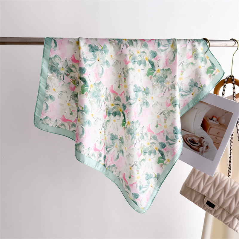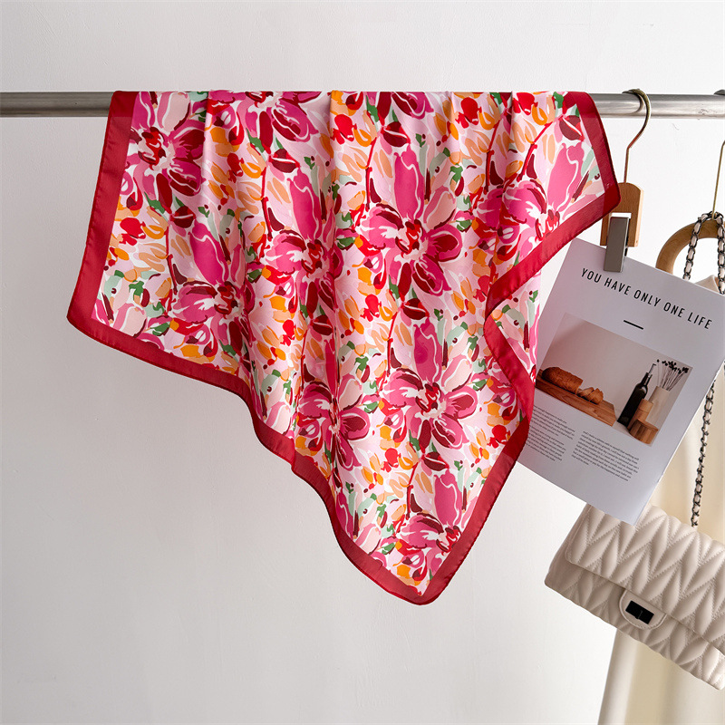 핑크 로즈 프린트 실크 스카프 70 모조 실크 고급 스퀘어 스카프 봄과 여름 얇은 스카프 여성용 모든 매치 스카프 넥타이 머리 스카프