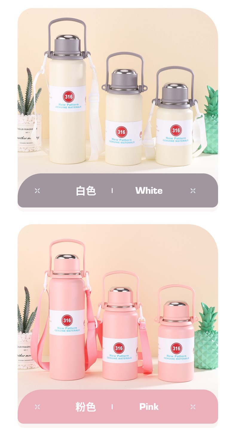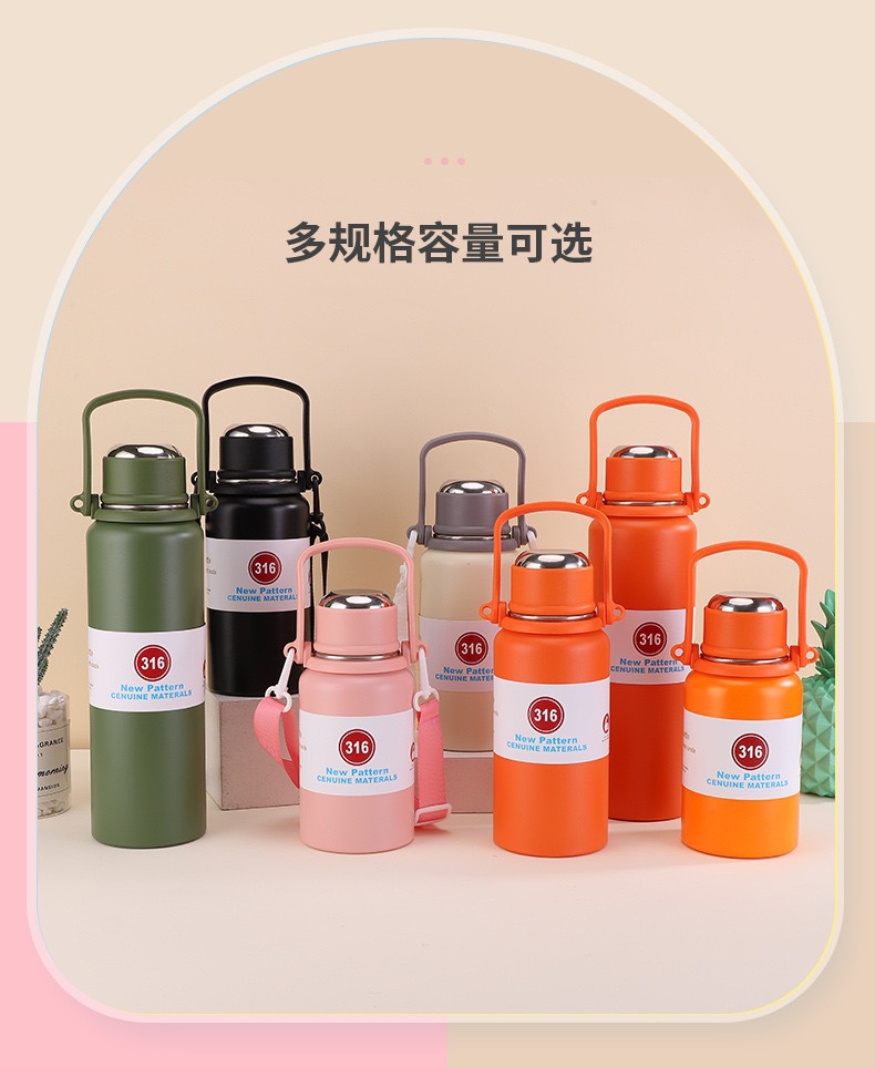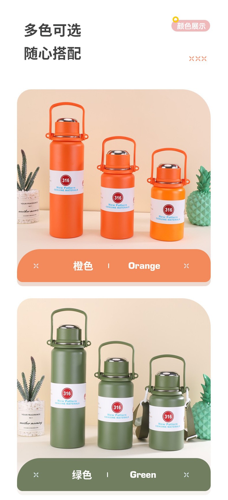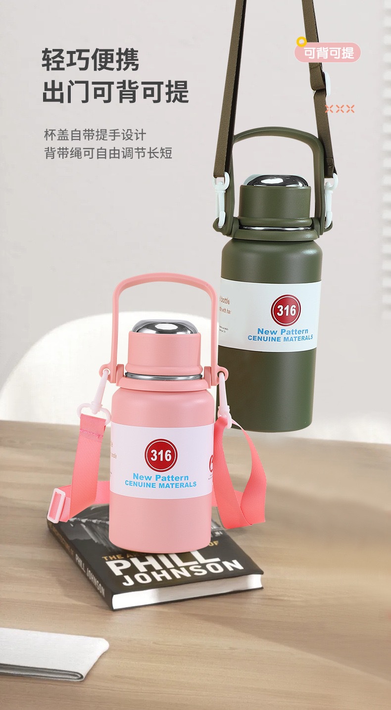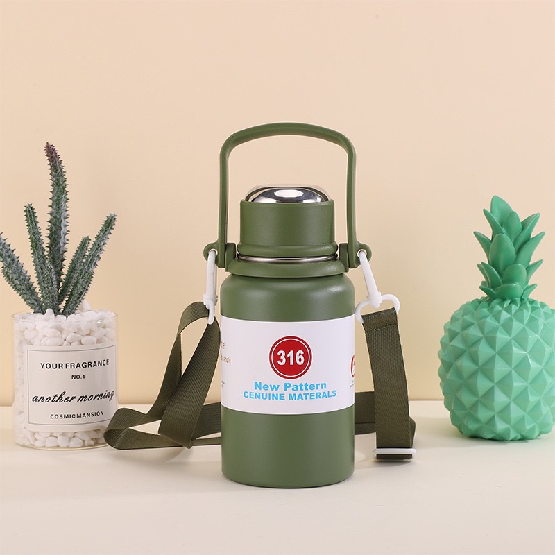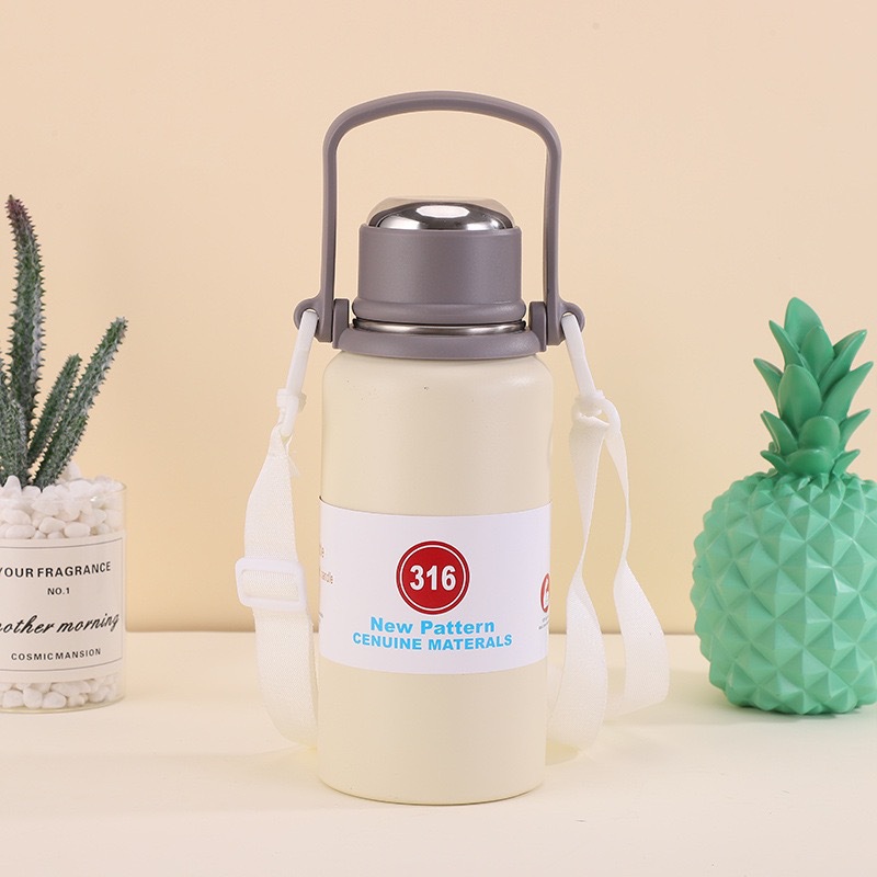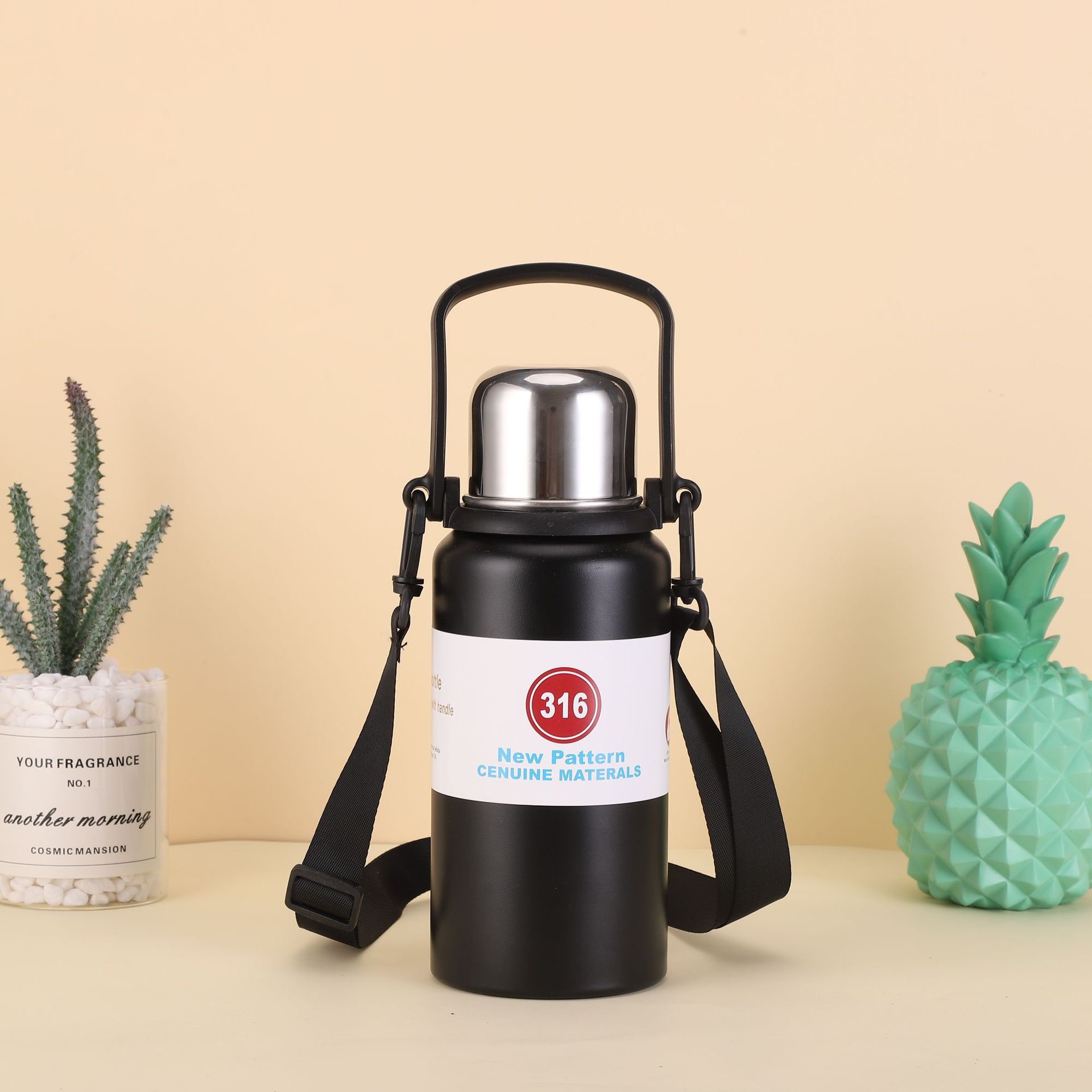 316 대용량 스포츠 주전자 야외 휴대용 핸들 스트랩 등산가 냄비 이중 진공 스테인레스 스틸 보온병 컵