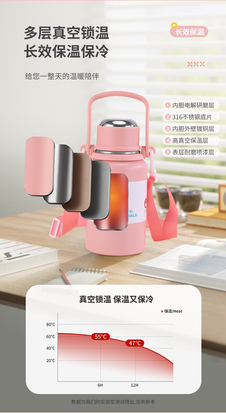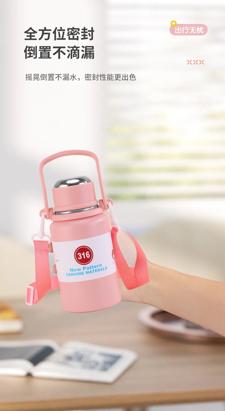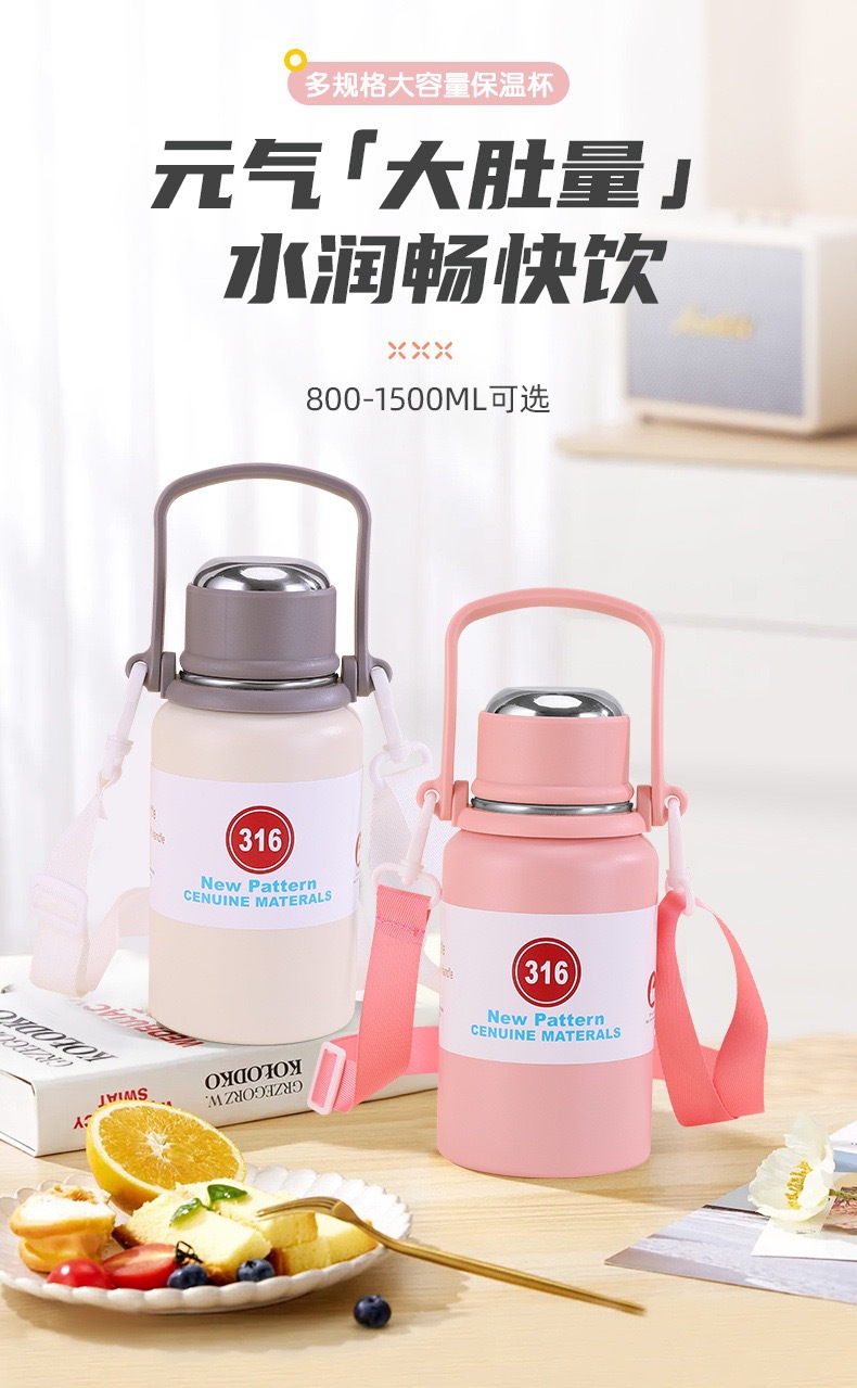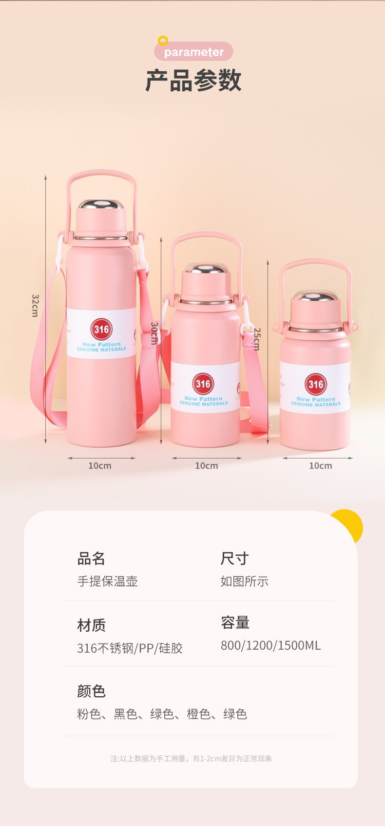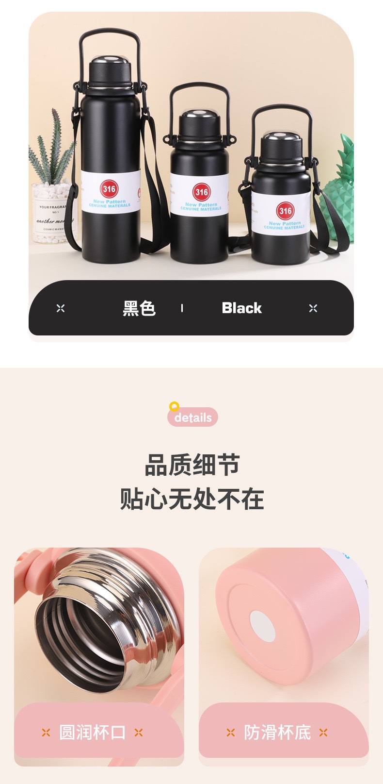 316 대용량 스포츠 주전자 야외 휴대용 핸들 스트랩 등산가 냄비 이중 진공 스테인레스 스틸 보온병 컵
