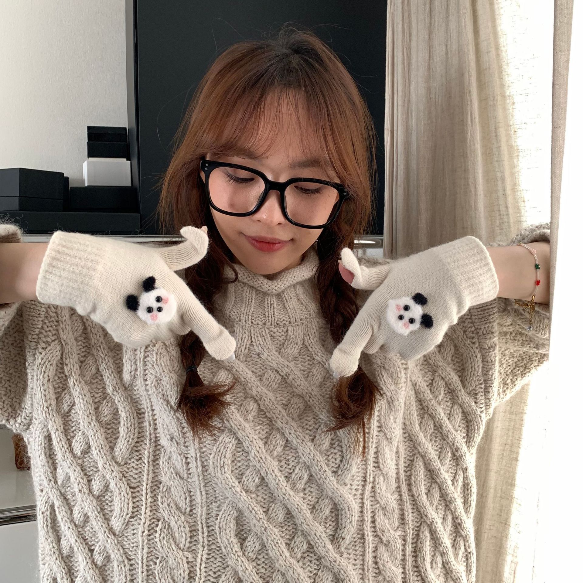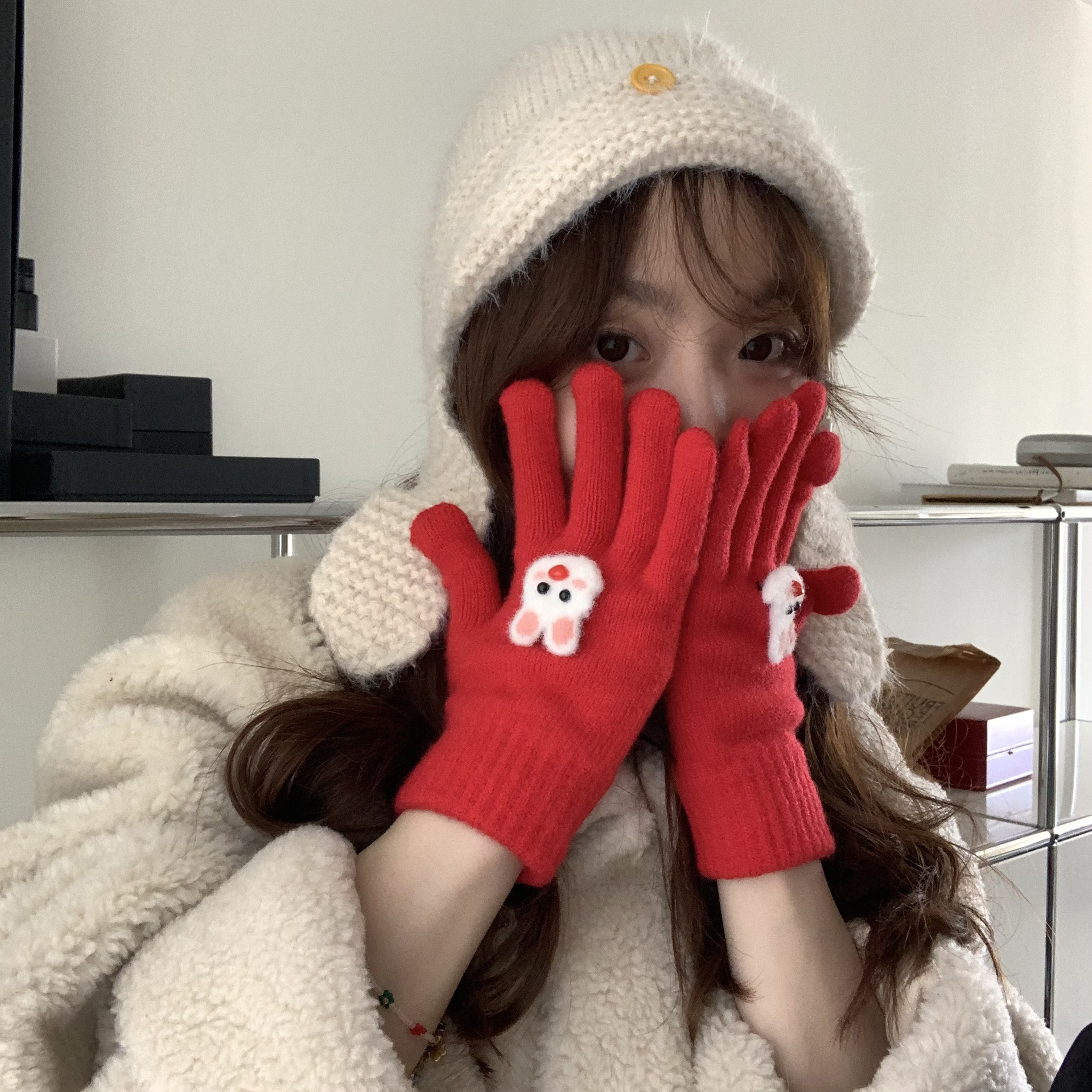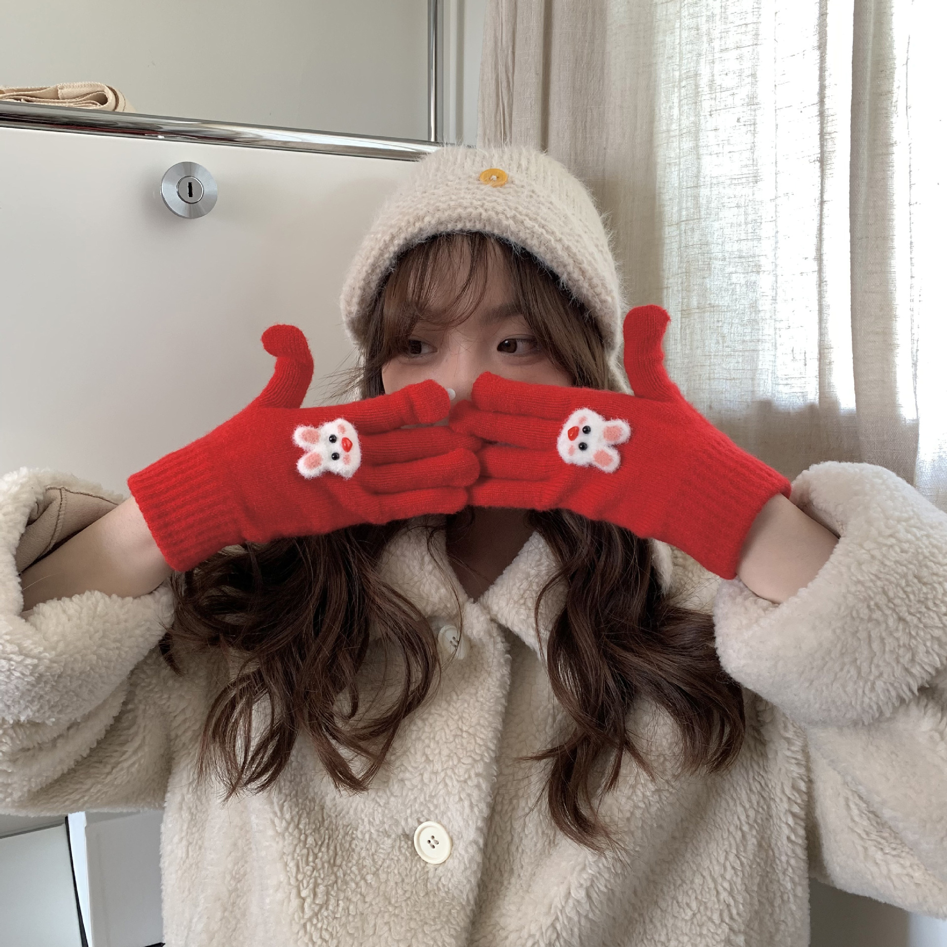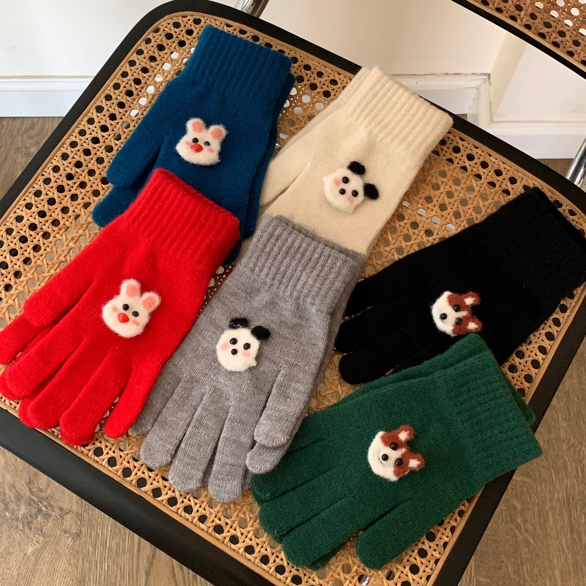 한국 슈퍼 귀여운 만화 니트 모직 장갑 여성용 가을과 겨울 방한 보온 학생을위한 모든 경기 손가락 터치 스크린스토어 가기