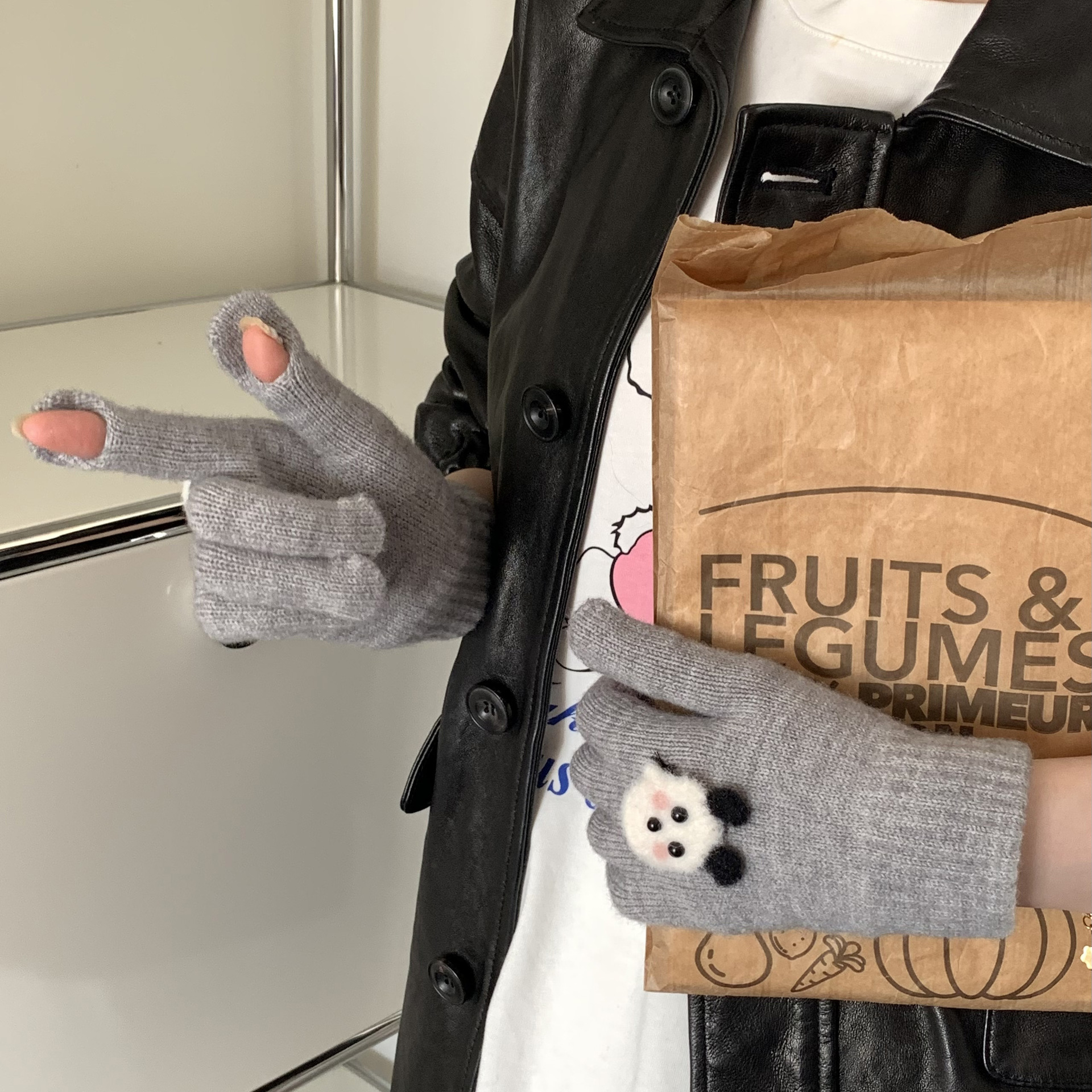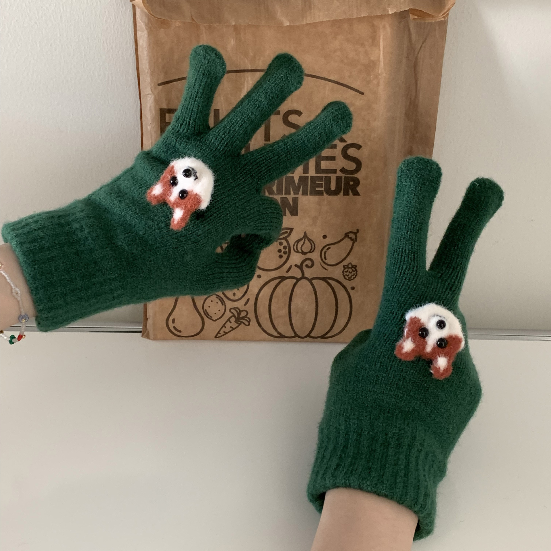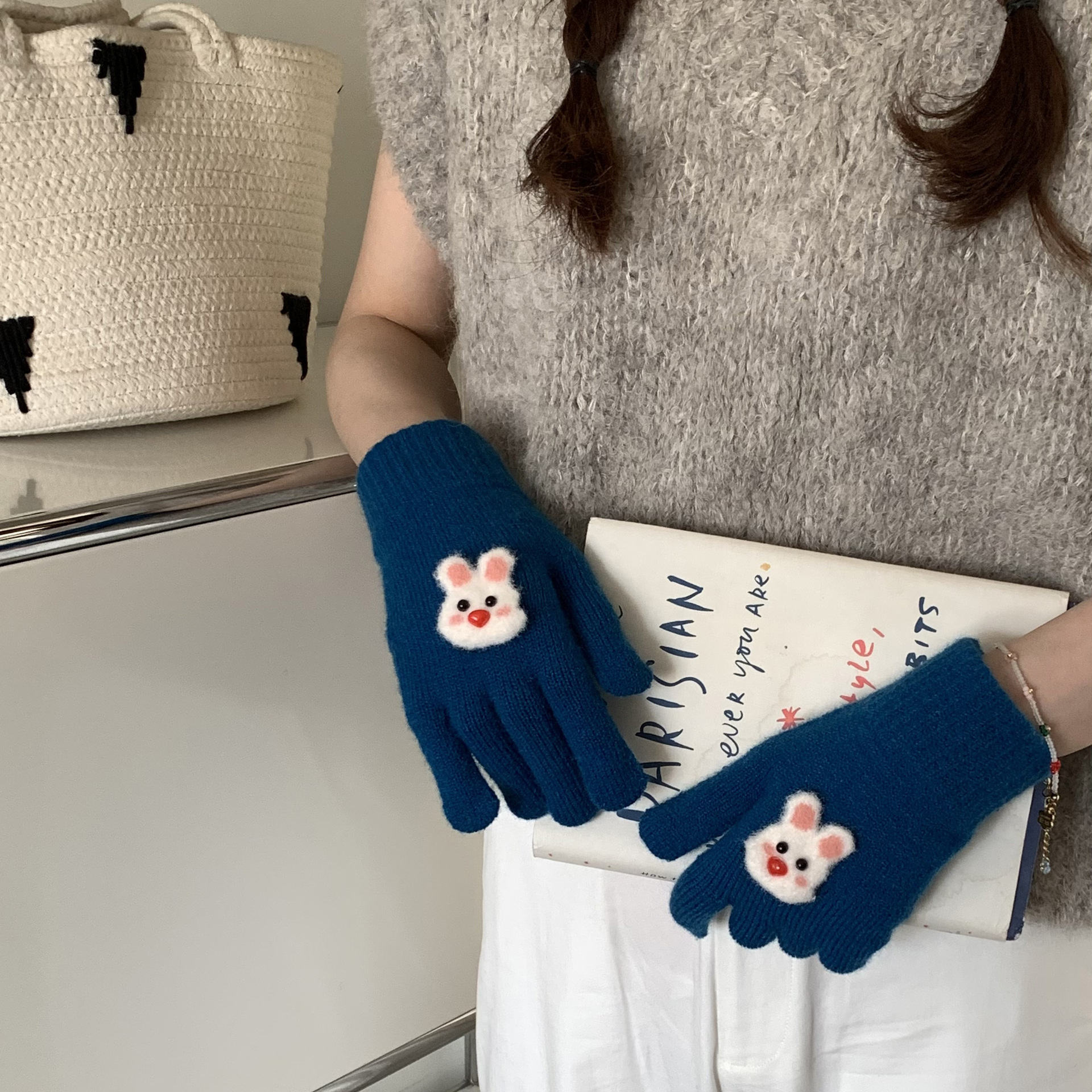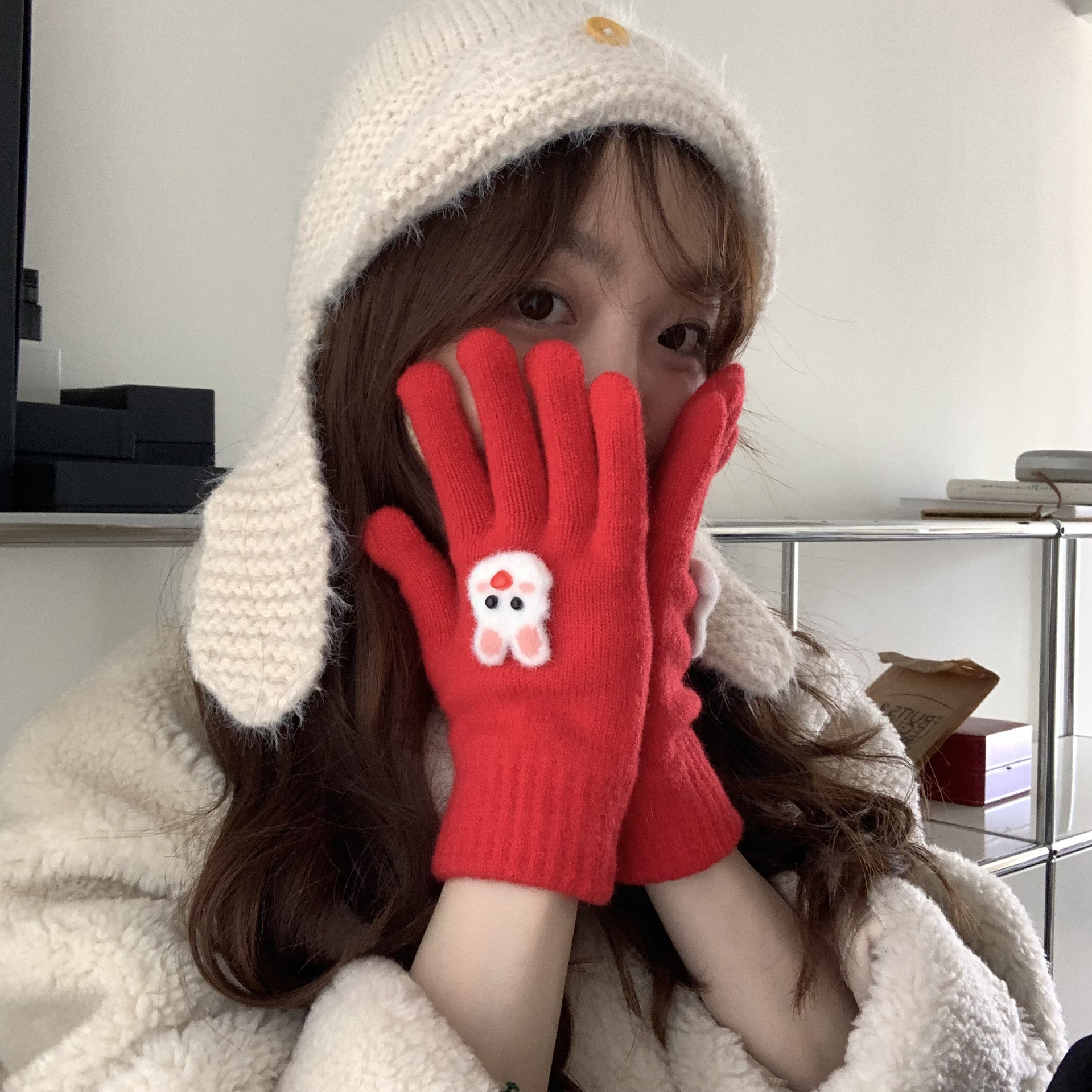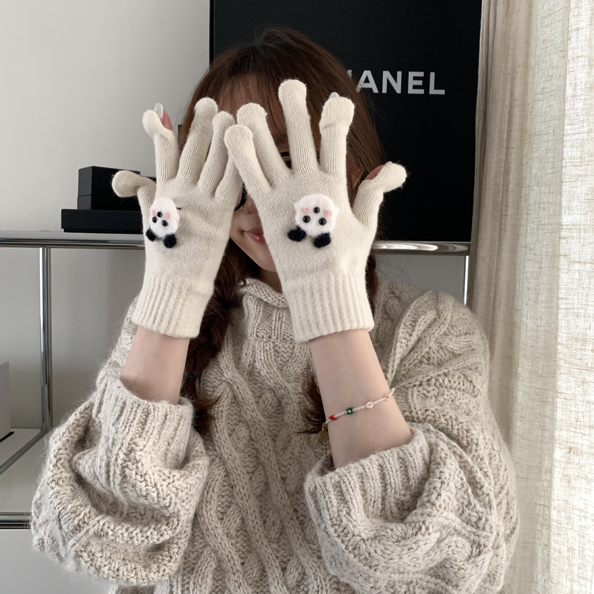 한국 슈퍼 귀여운 만화 니트 모직 장갑 여성용 가을과 겨울 방한 보온 학생을위한 모든 경기 손가락 터치 스크린스토어 가기