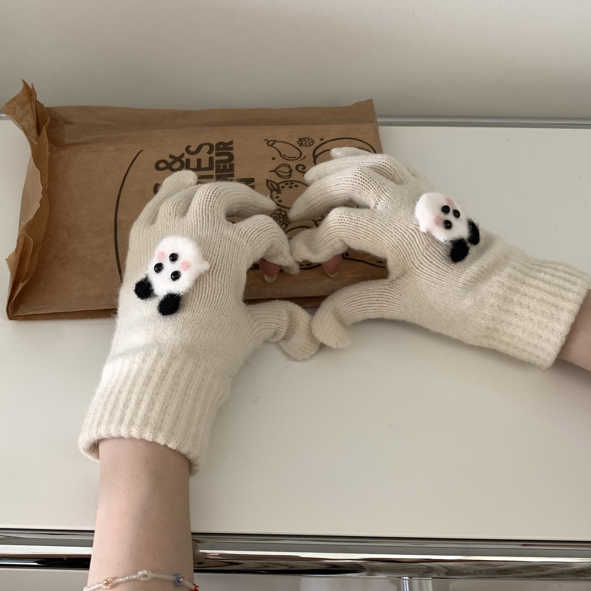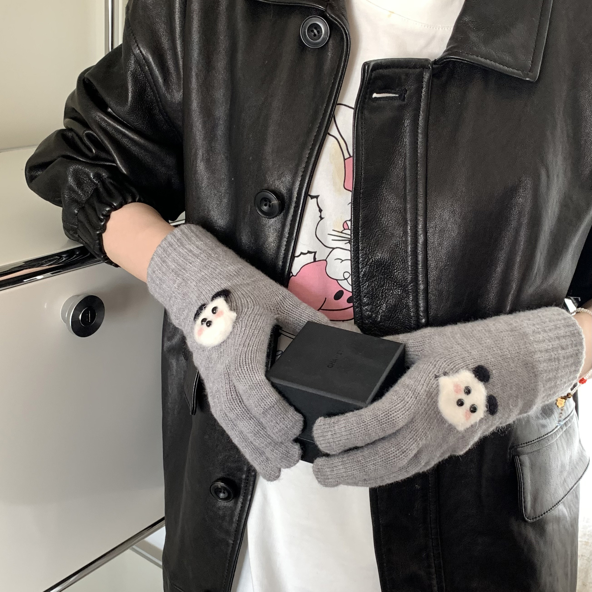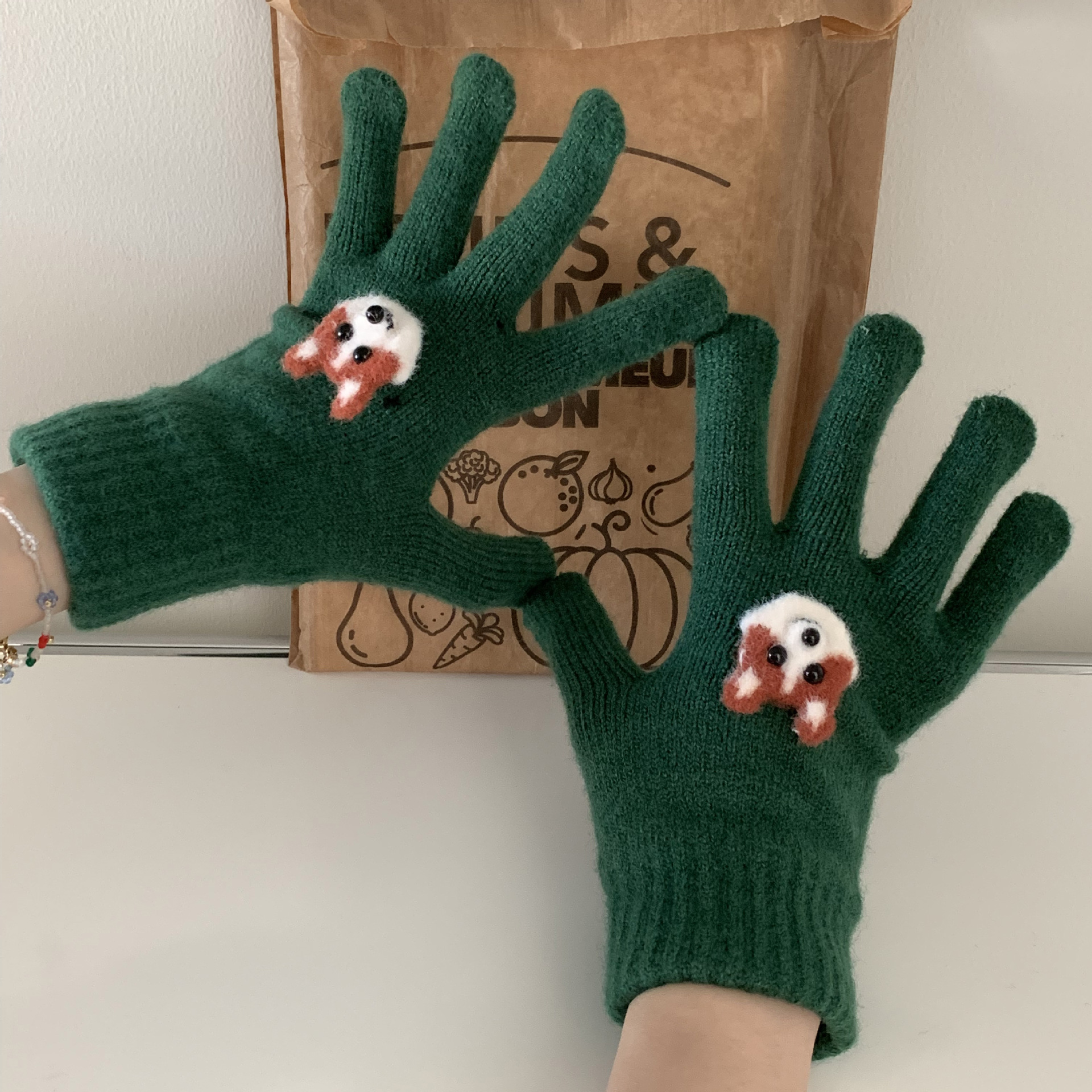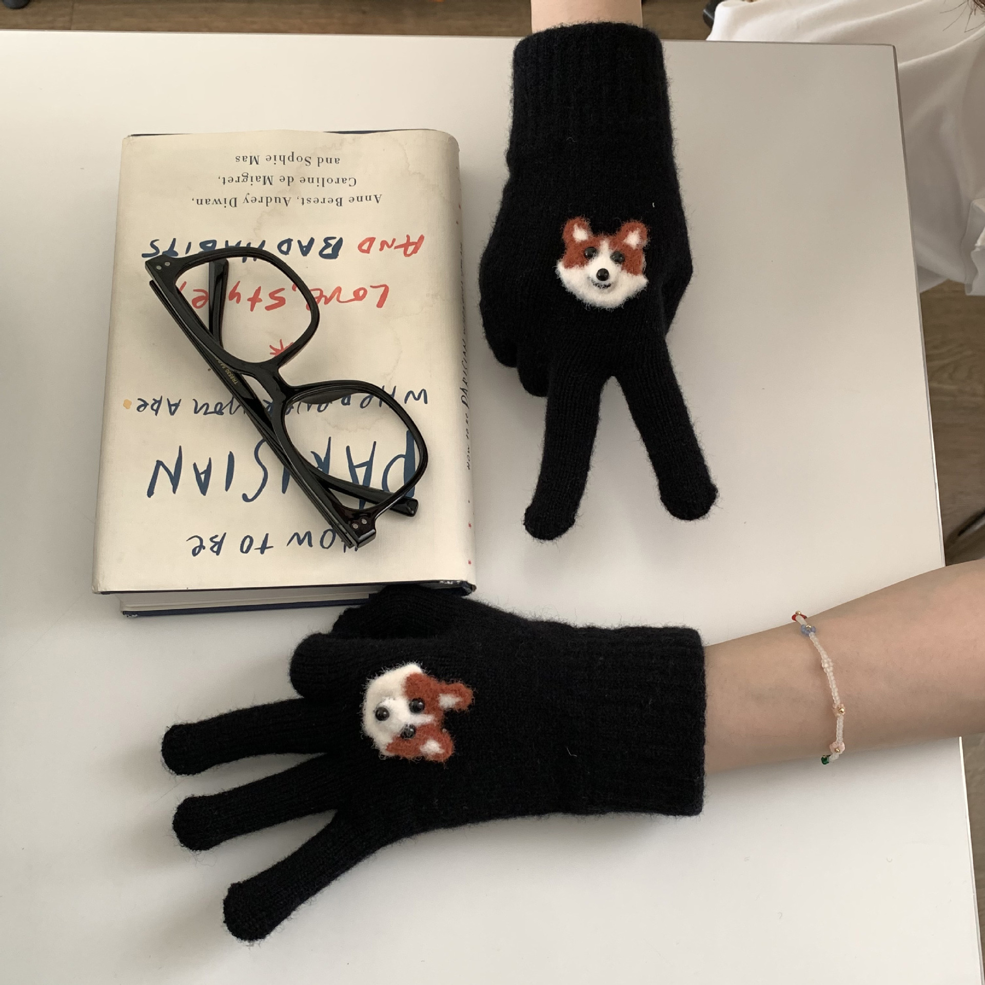 한국 슈퍼 귀여운 만화 니트 모직 장갑 여성용 가을과 겨울 방한 보온 학생을위한 모든 경기 손가락 터치 스크린스토어 가기