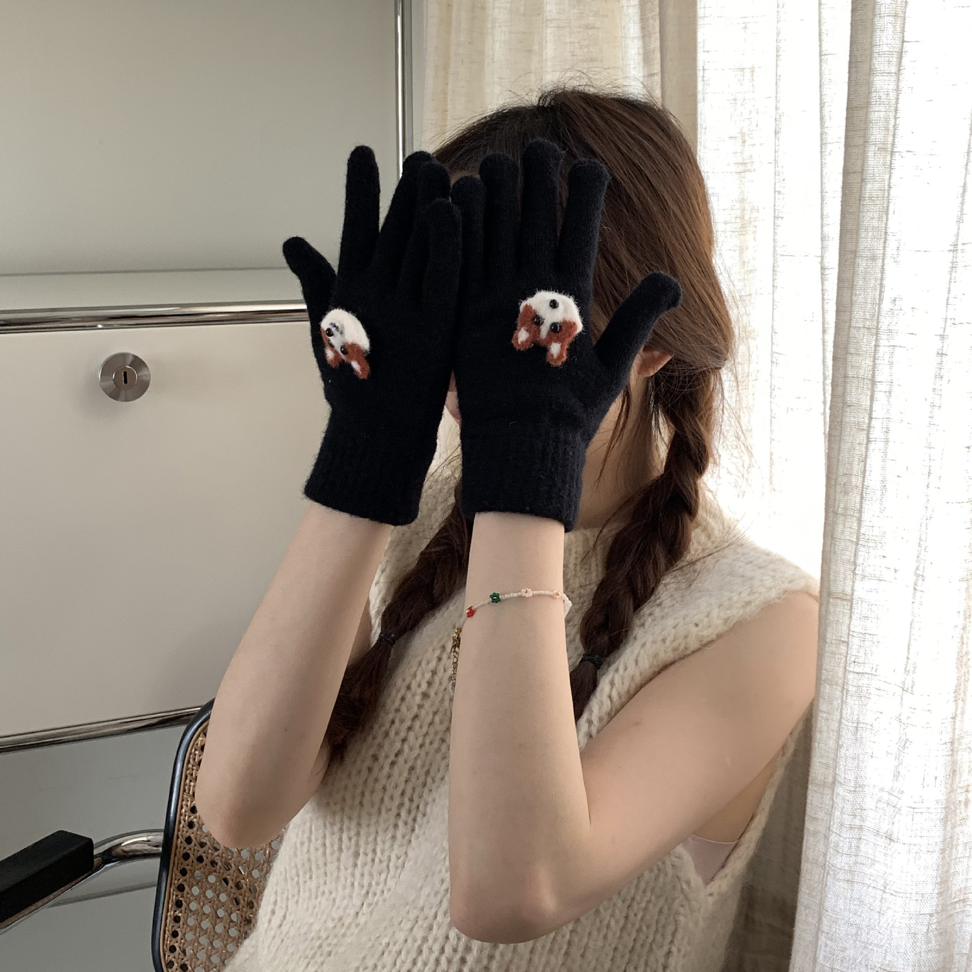 한국 슈퍼 귀여운 만화 니트 모직 장갑 여성용 가을과 겨울 방한 보온 학생을위한 모든 경기 손가락 터치 스크린