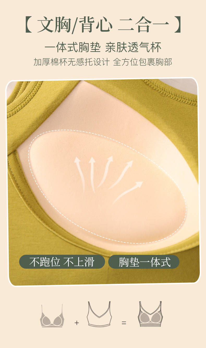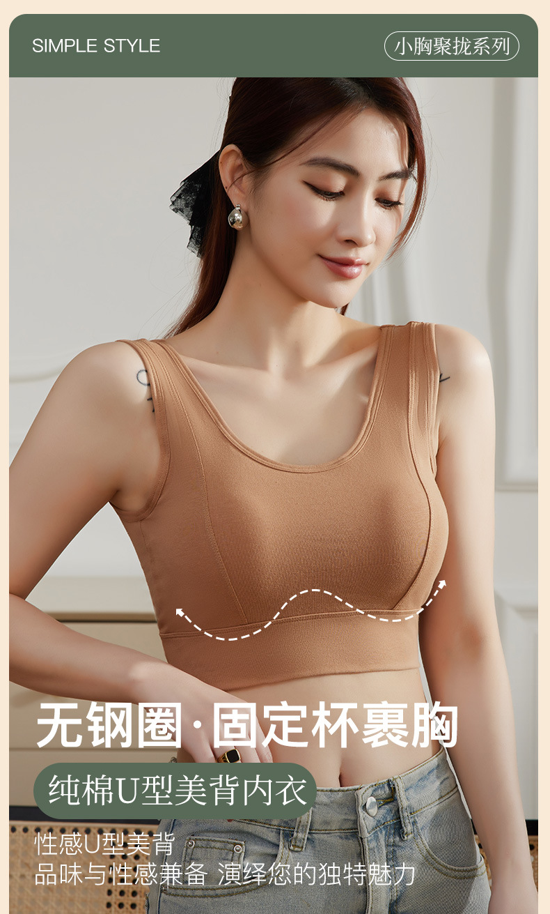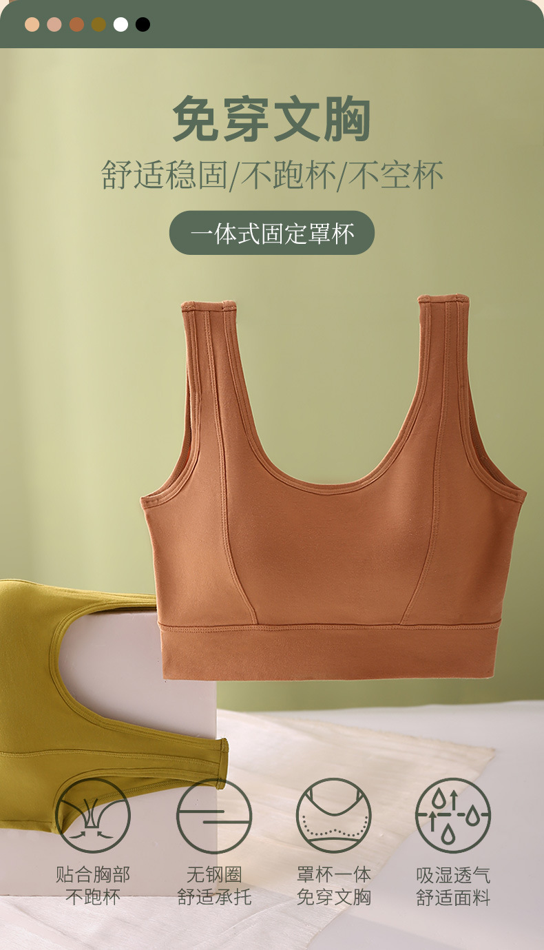 순면 아름다운 등 스포츠 조끼 여성용 원피스 고정 두꺼운 브래지어 튜브 탑 브래지어 편안한 통기성 푸시 업 속옷