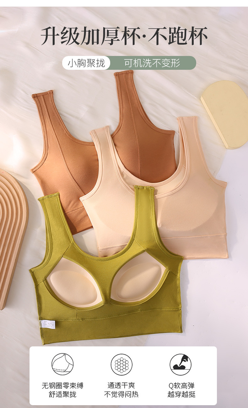 순면 아름다운 등 스포츠 조끼 여성용 원피스 고정 두꺼운 브래지어 튜브 탑 브래지어 편안한 통기성 푸시 업 속옷스토어 가기