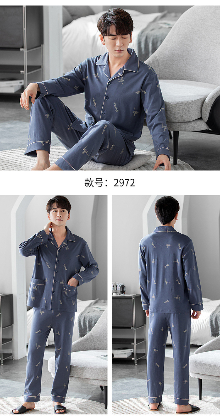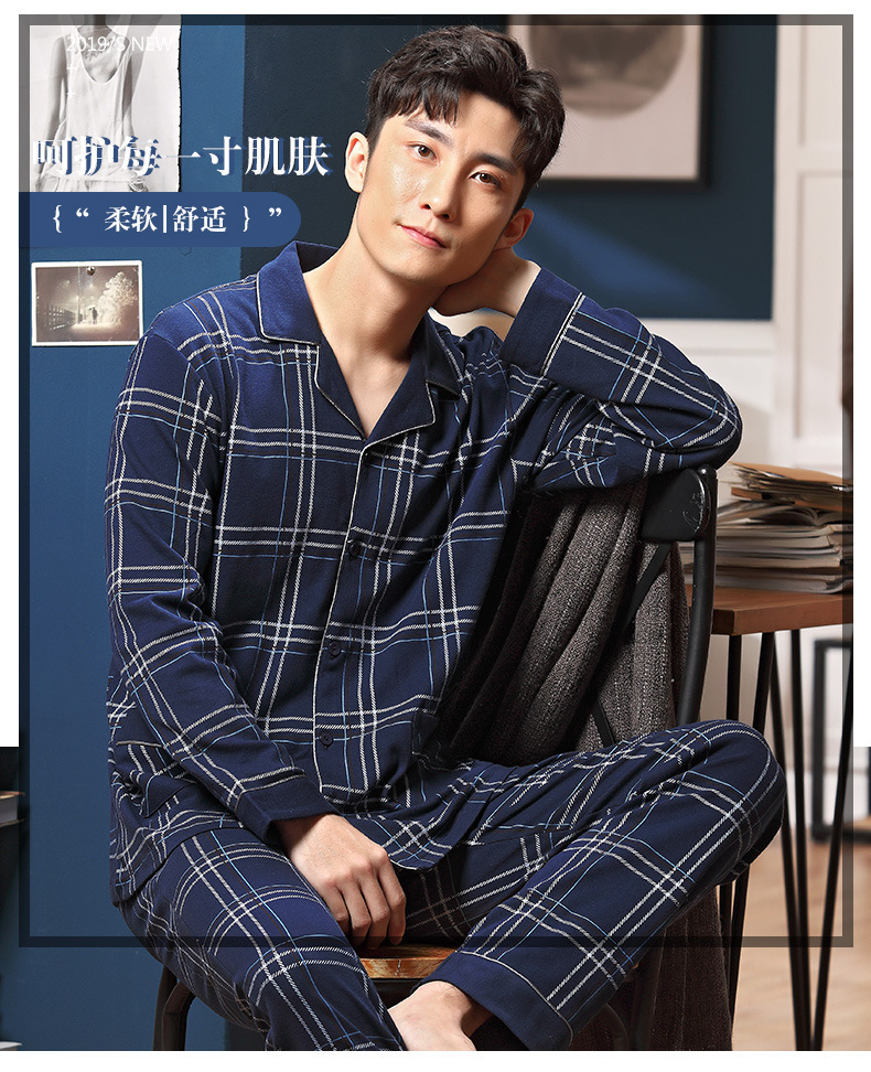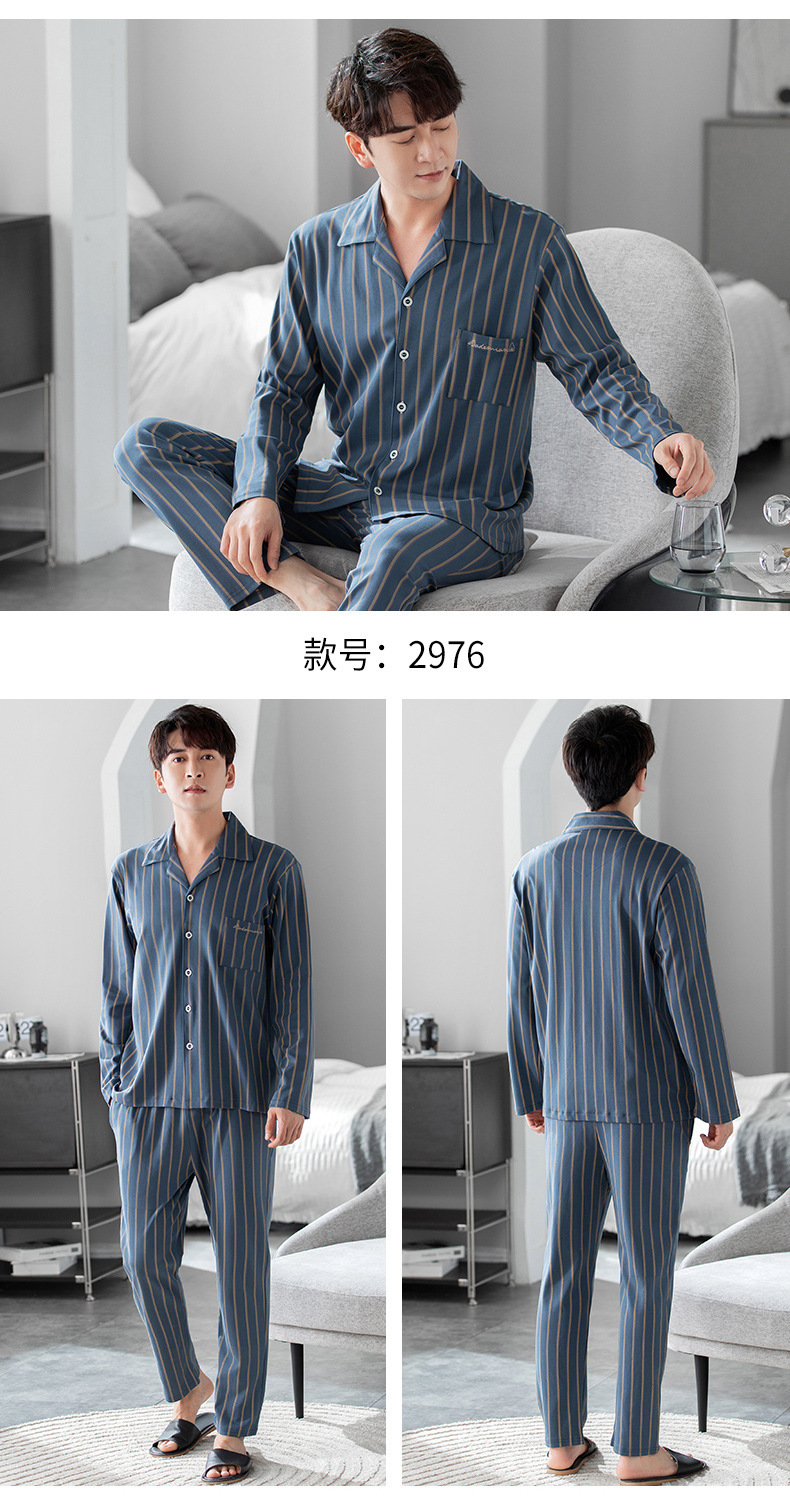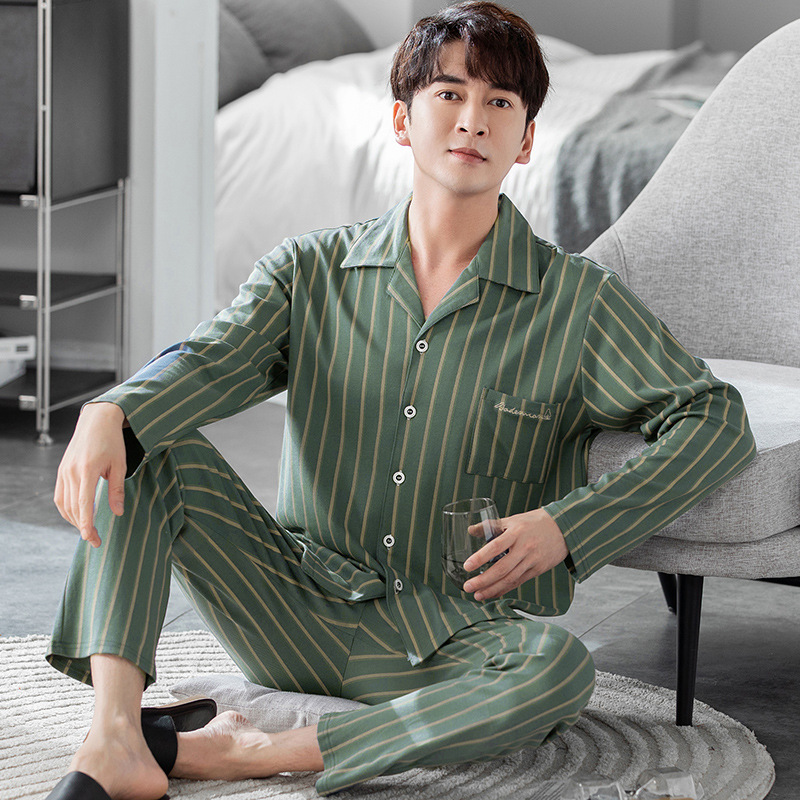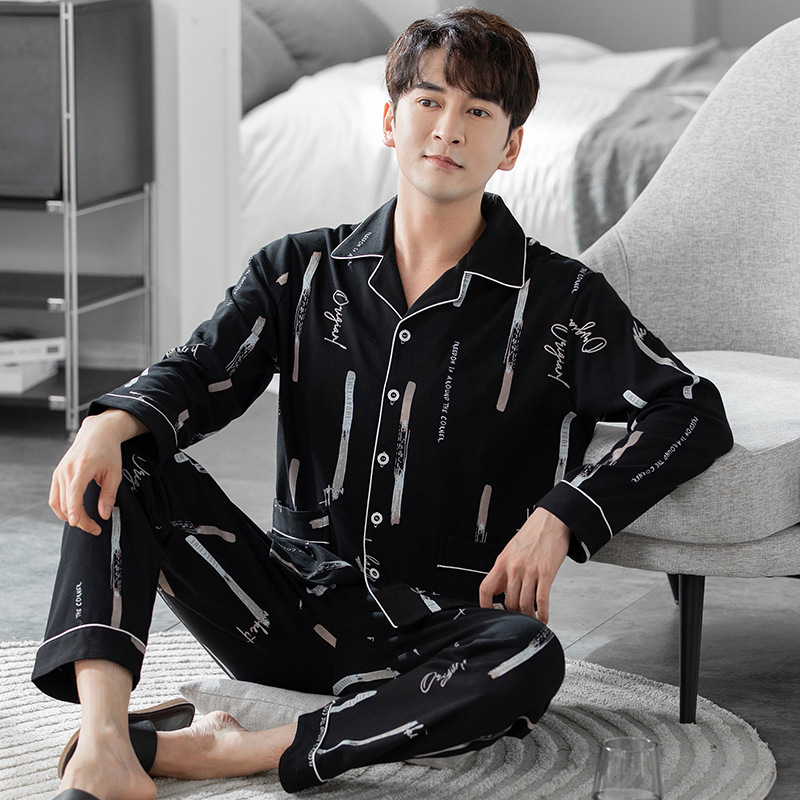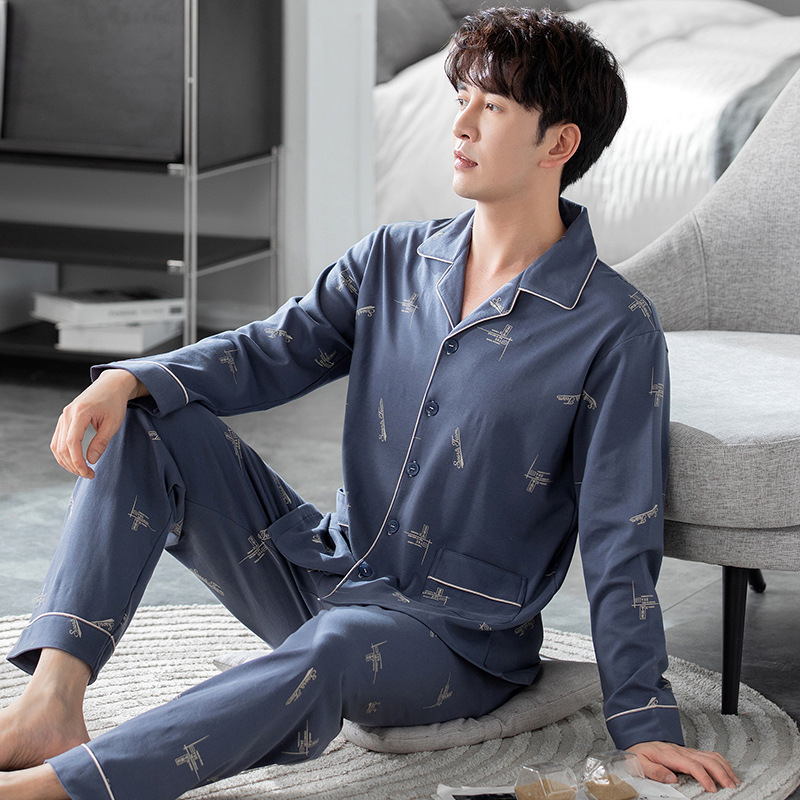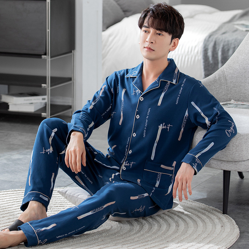 남성용 잠옷 가을 겨울용 면 긴팔 2024 신상 루즈핏 큰 사이즈 청소년 남학생 외출복 겸용 홈웨어스토어 가기