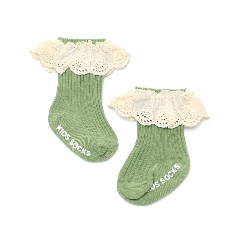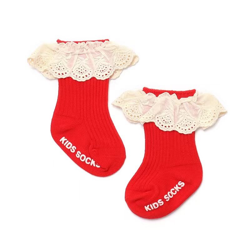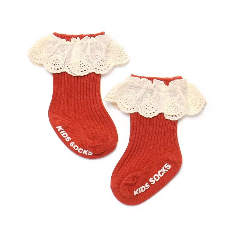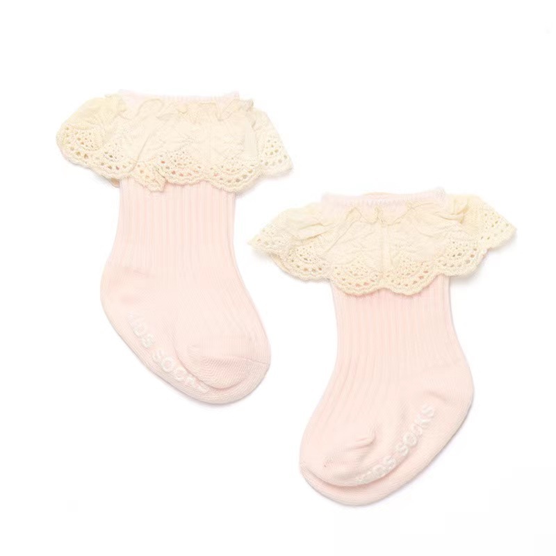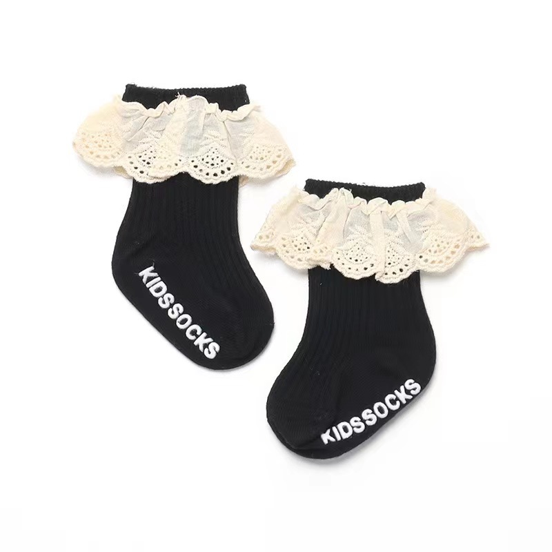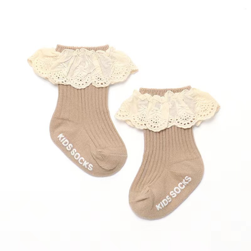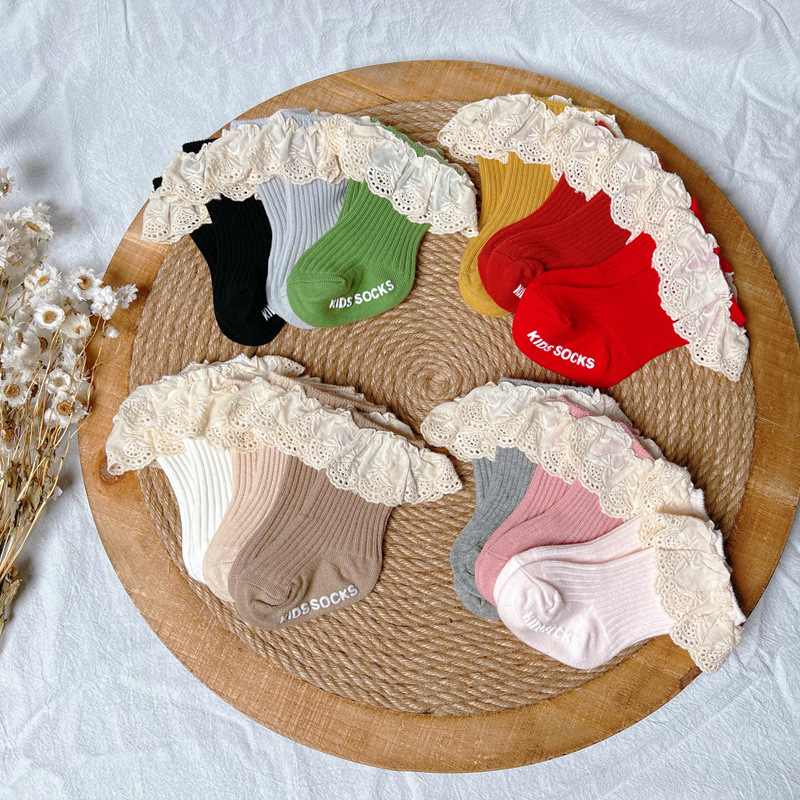 In 미드 튜브 아기 양말 레이스 양말 빗질면 부드러운 통기성 피트 스트립 미드 튜브 어린이 양말 귀여운 아기 양말