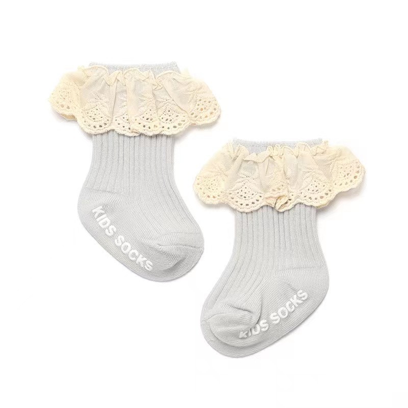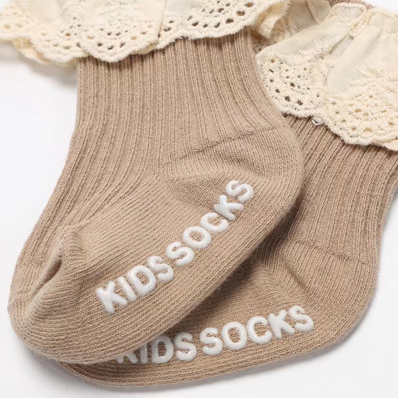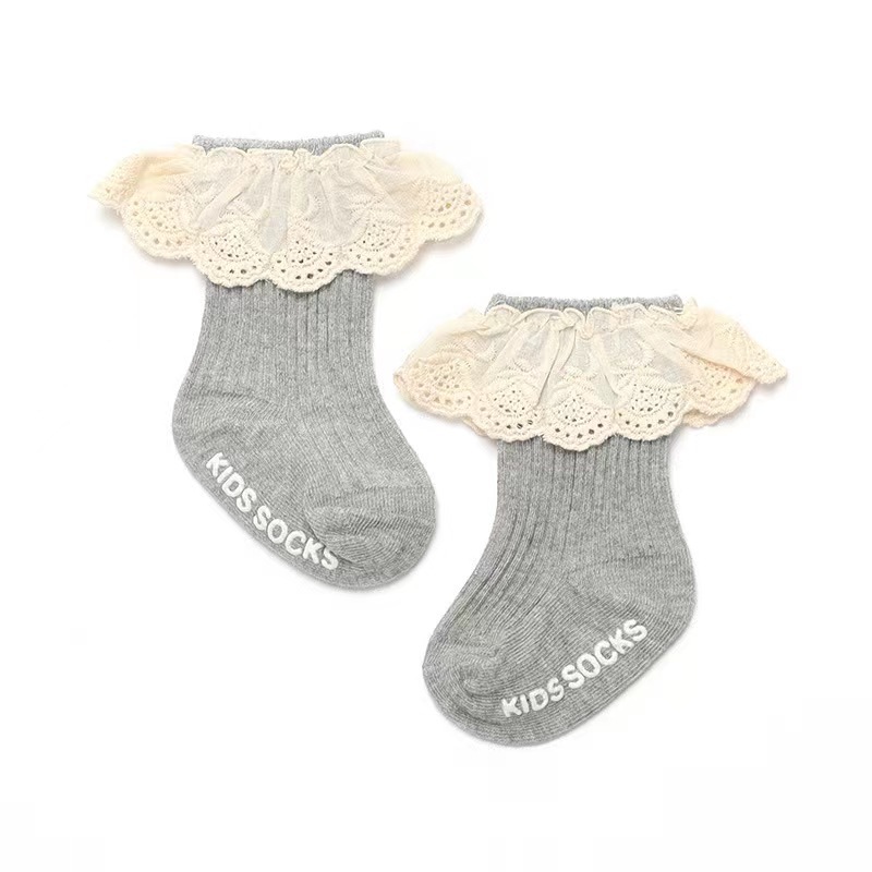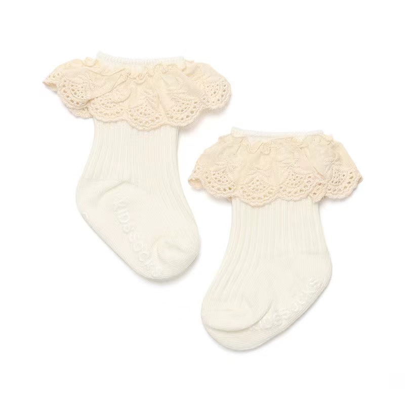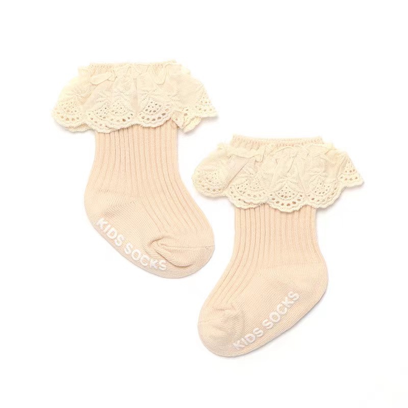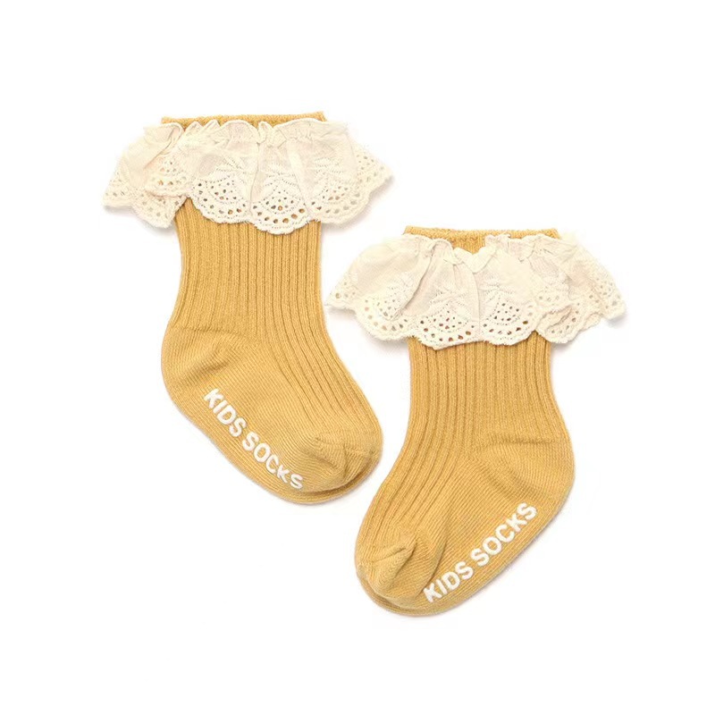 In 미드 튜브 아기 양말 레이스 양말 빗질면 부드러운 통기성 피트 스트립 미드 튜브 어린이 양말 귀여운 아기 양말스토어 가기