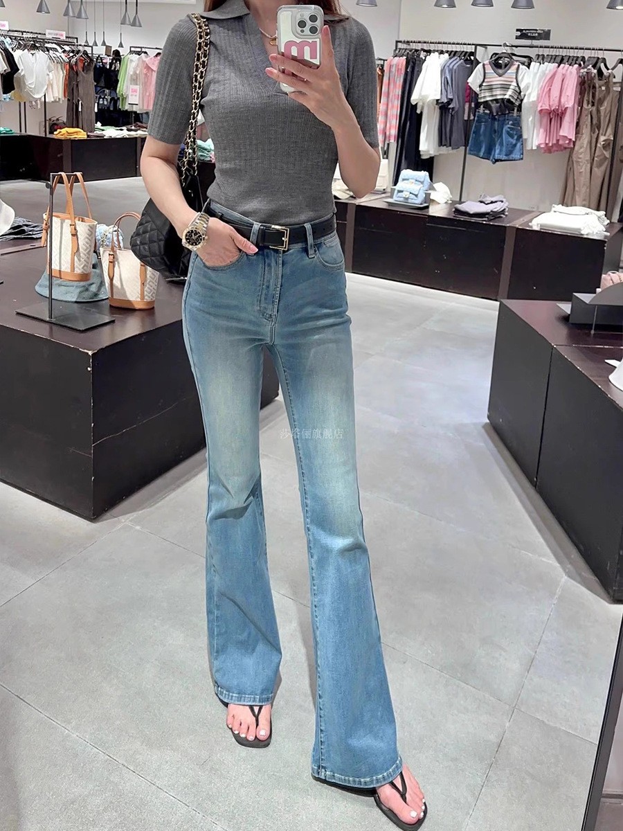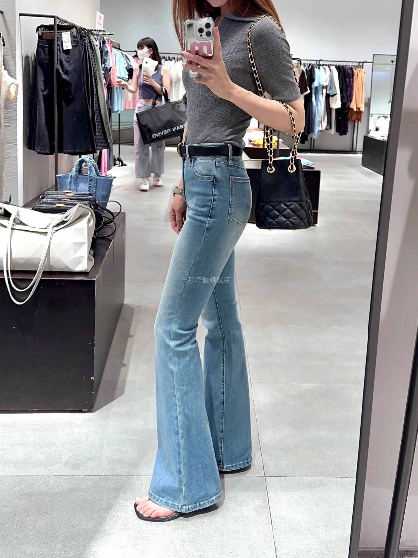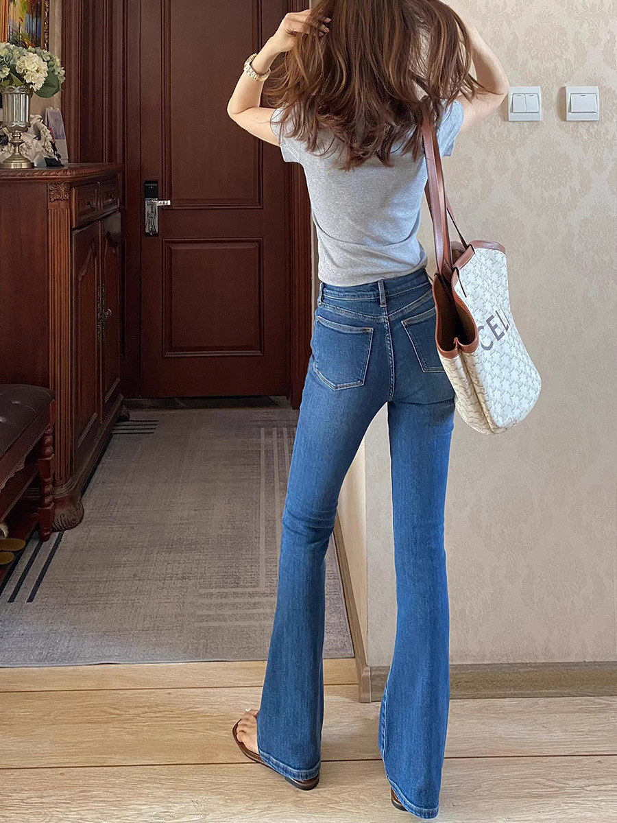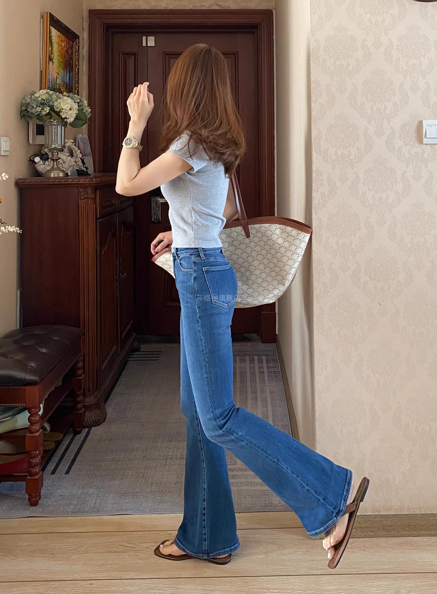 좋은 몸매를 강조하세요! 얇은 4방향 스트레치 마이크로 플레어 청바지 여성용 봄 스타일 작은 체형을 위한 슬림핏 바지스토어 가기
