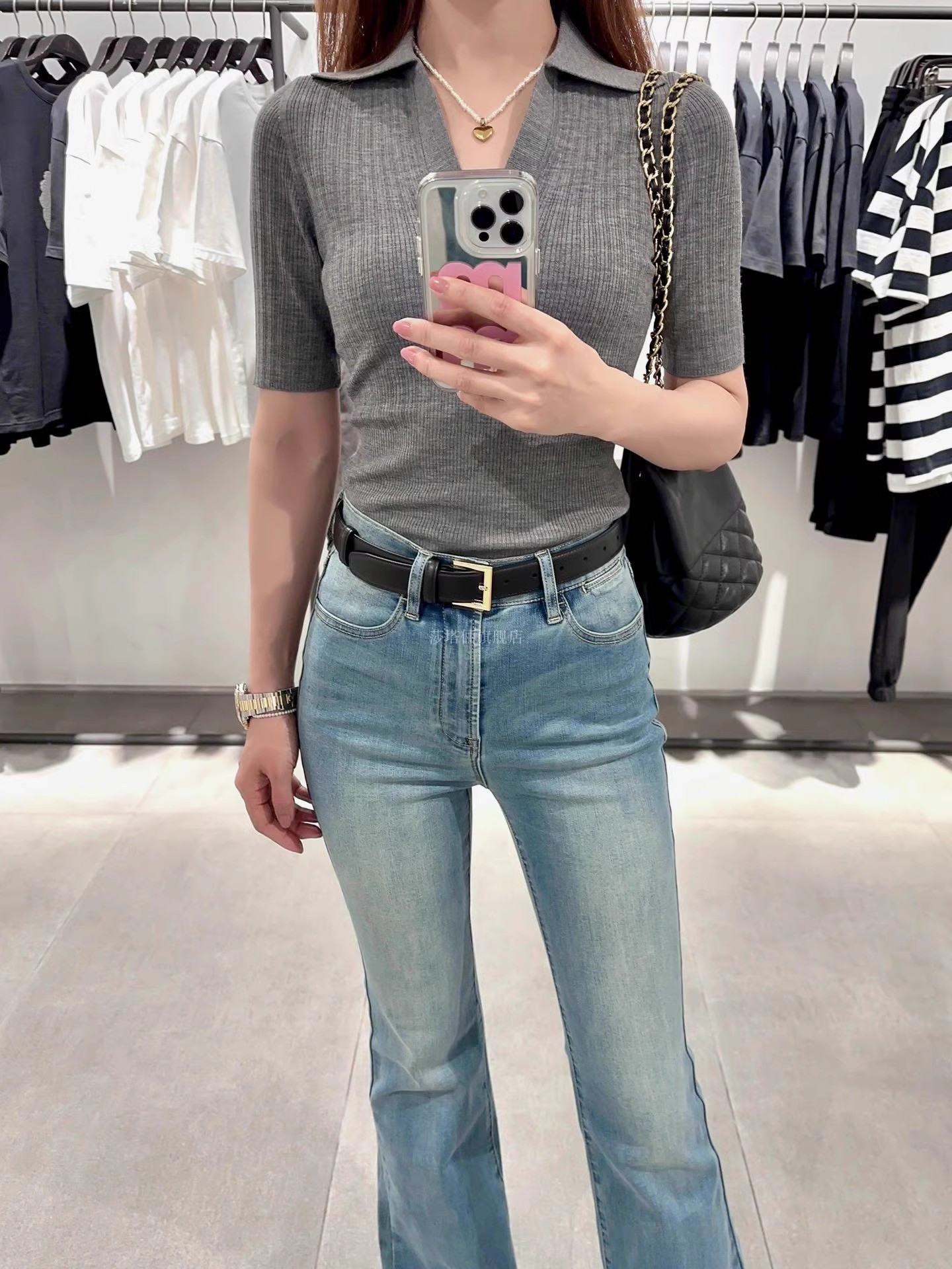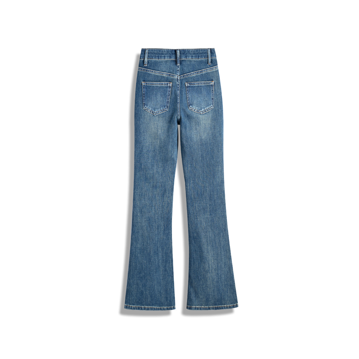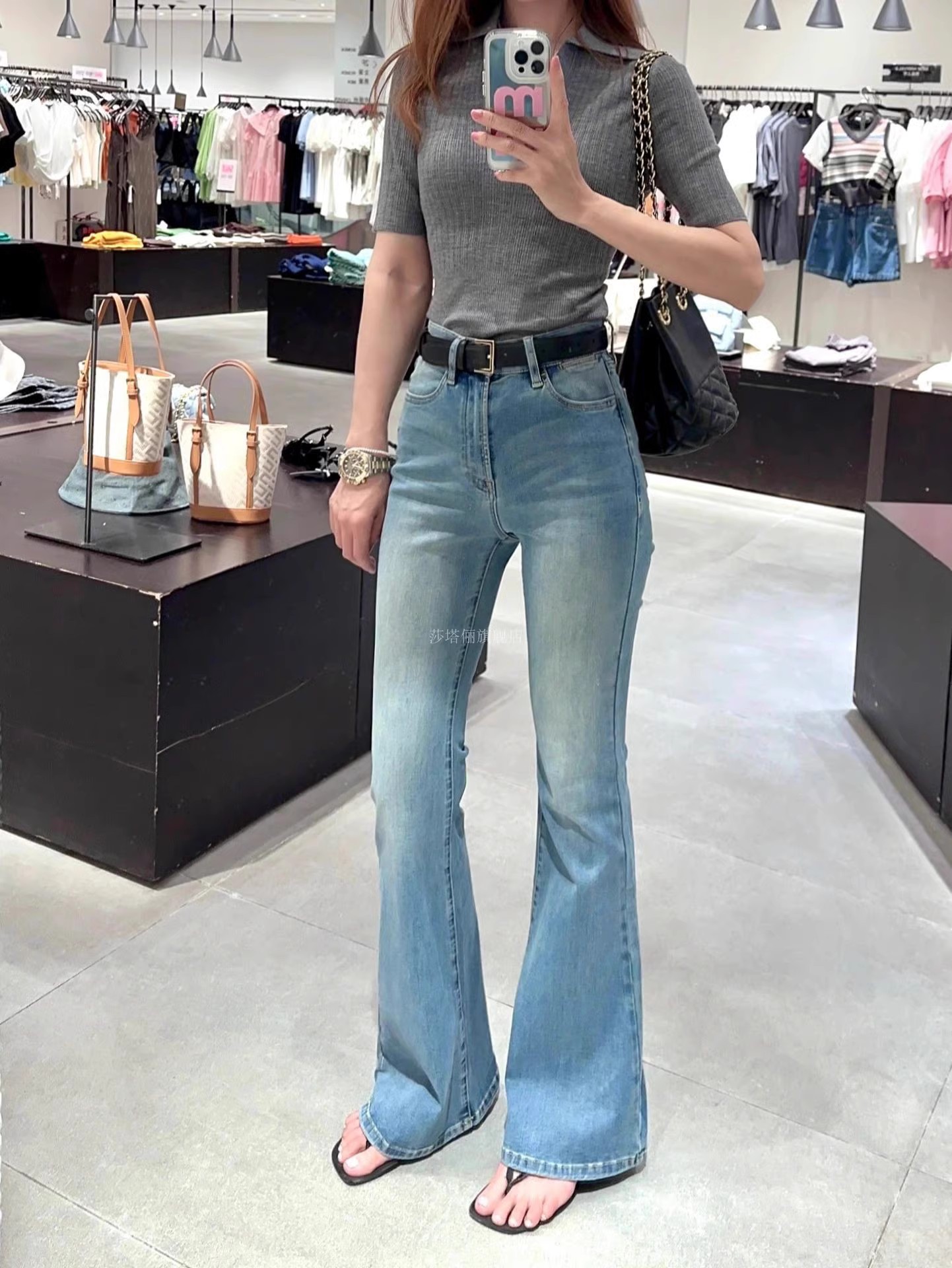 좋은 몸매를 강조하세요! 얇은 4방향 스트레치 마이크로 플레어 청바지 여성용 봄 스타일 작은 체형을 위한 슬림핏 바지스토어 가기
