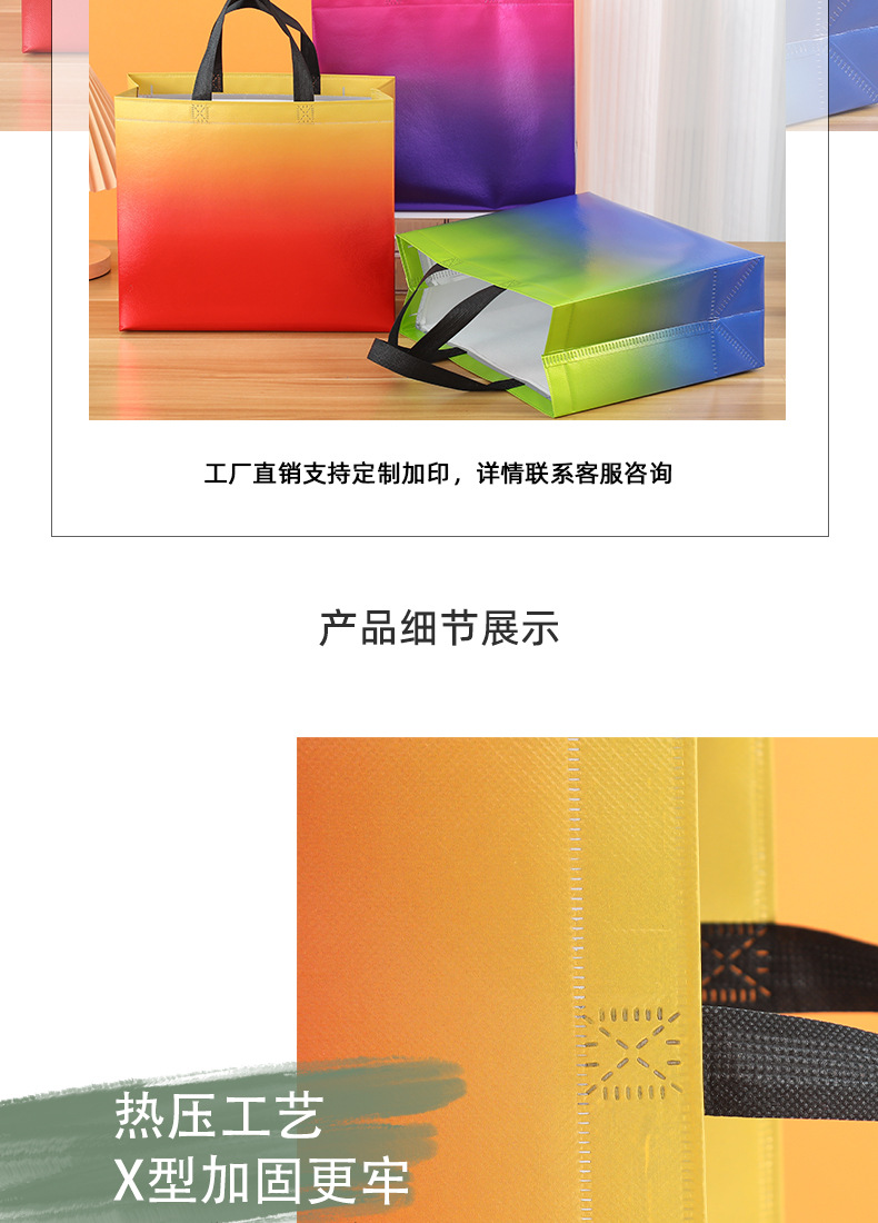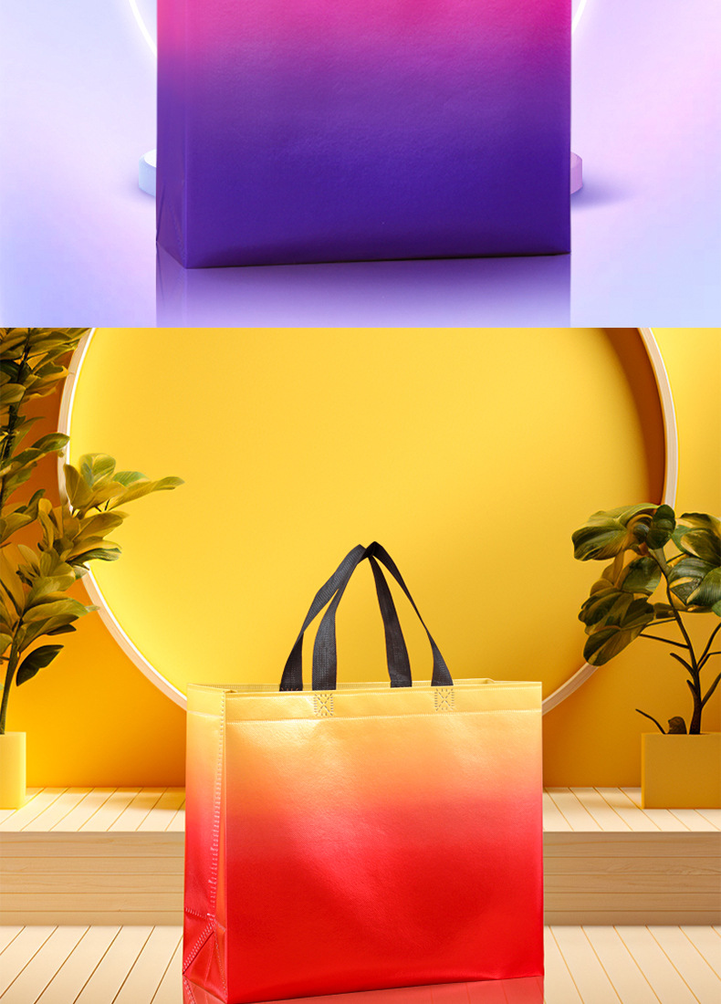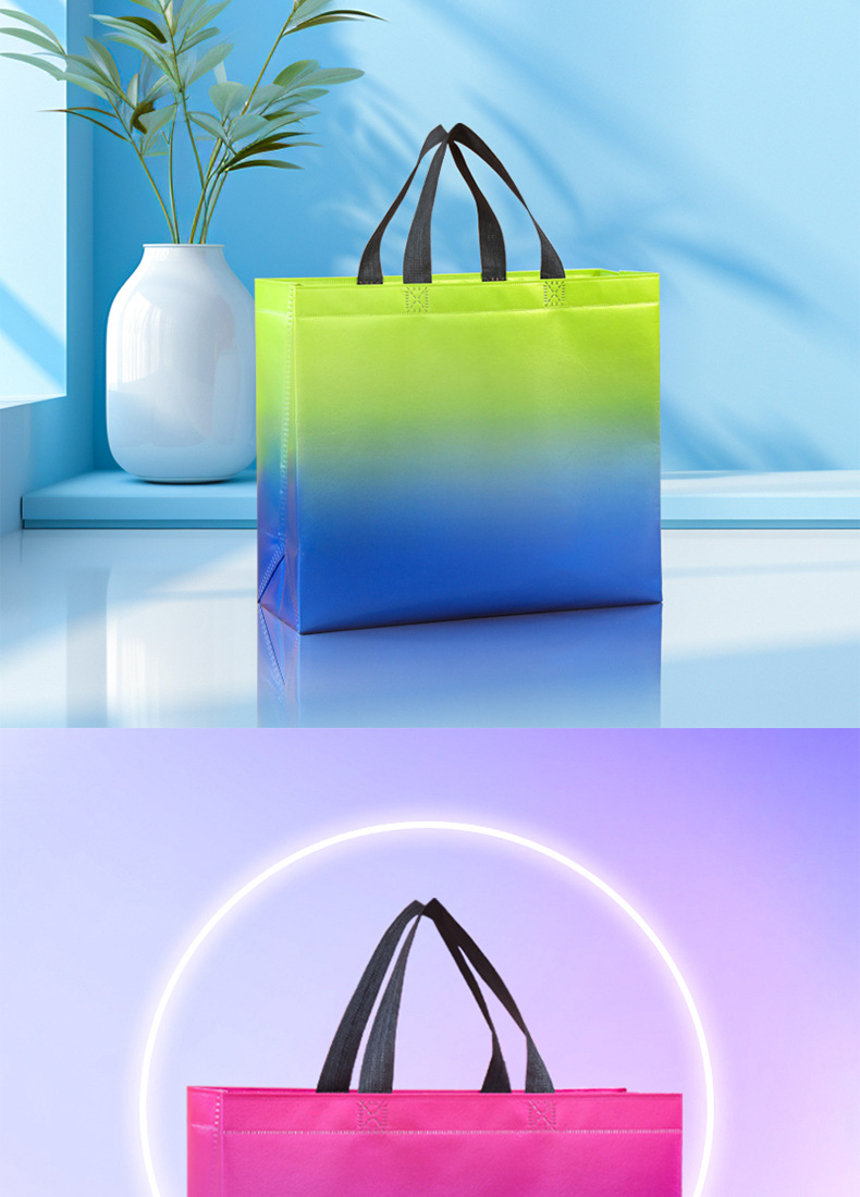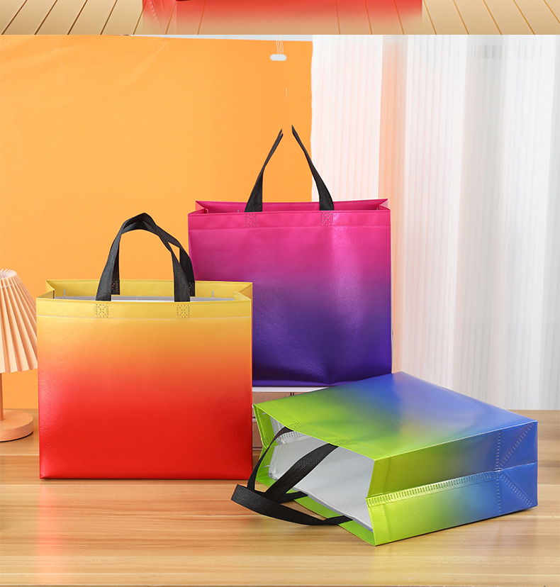 그라디언트 컬러 레이저 적층 알루미늄 부직포 가방 도매 크로스 보더 핸드백 선물 가방 쇼핑백 인쇄 로고스토어 가기