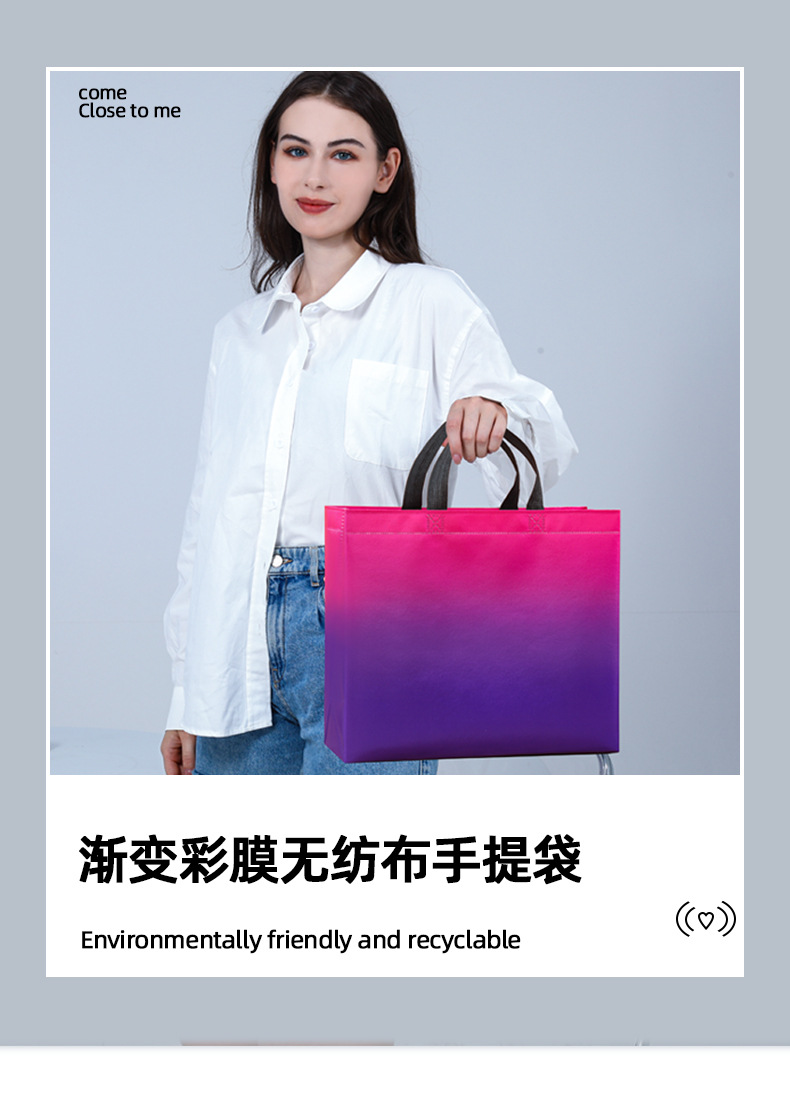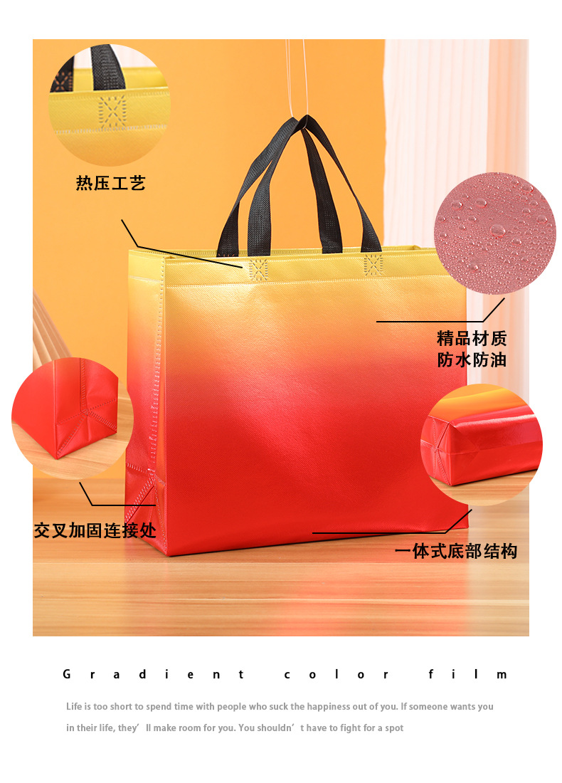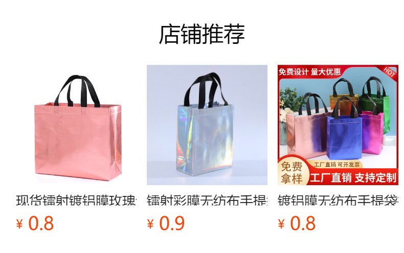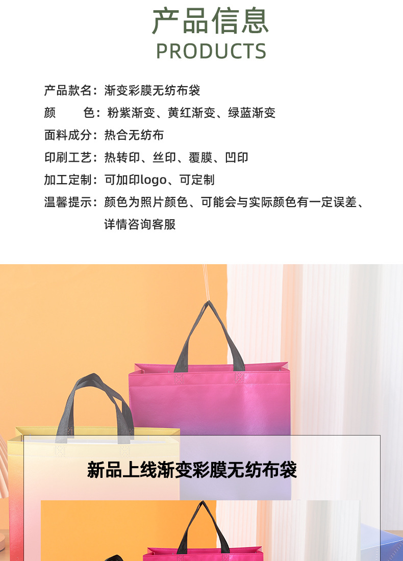 그라디언트 컬러 레이저 적층 알루미늄 부직포 가방 도매 크로스 보더 핸드백 선물 가방 쇼핑백 인쇄 로고스토어 가기
