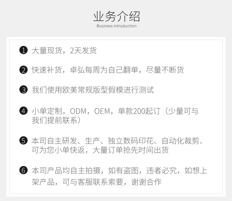 ---选择卓弘泳衣,我们拥有10余年以上的外贸泳衣打版经验,不断根据市场反馈去设计和完善外贸版型尺寸,大大降低了退货率!