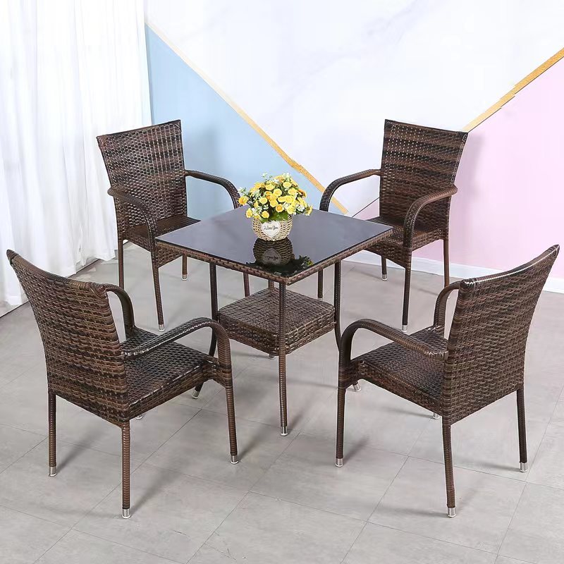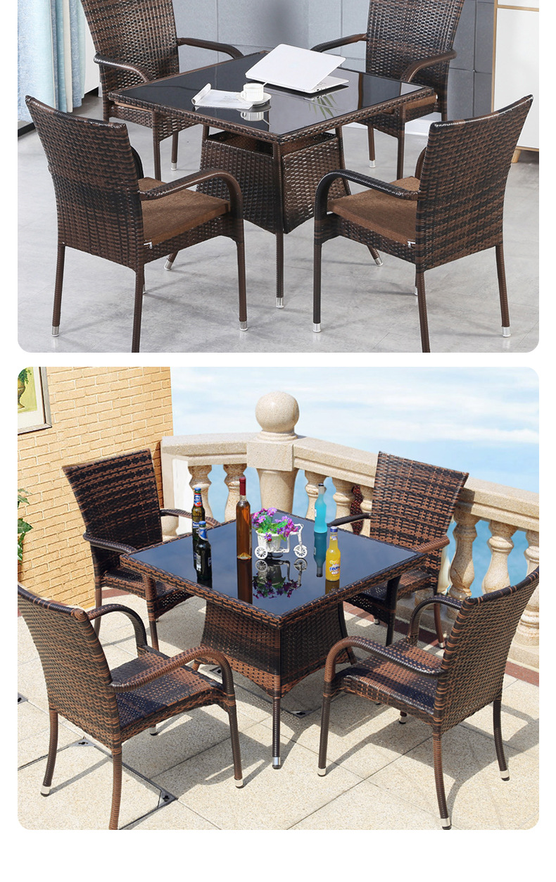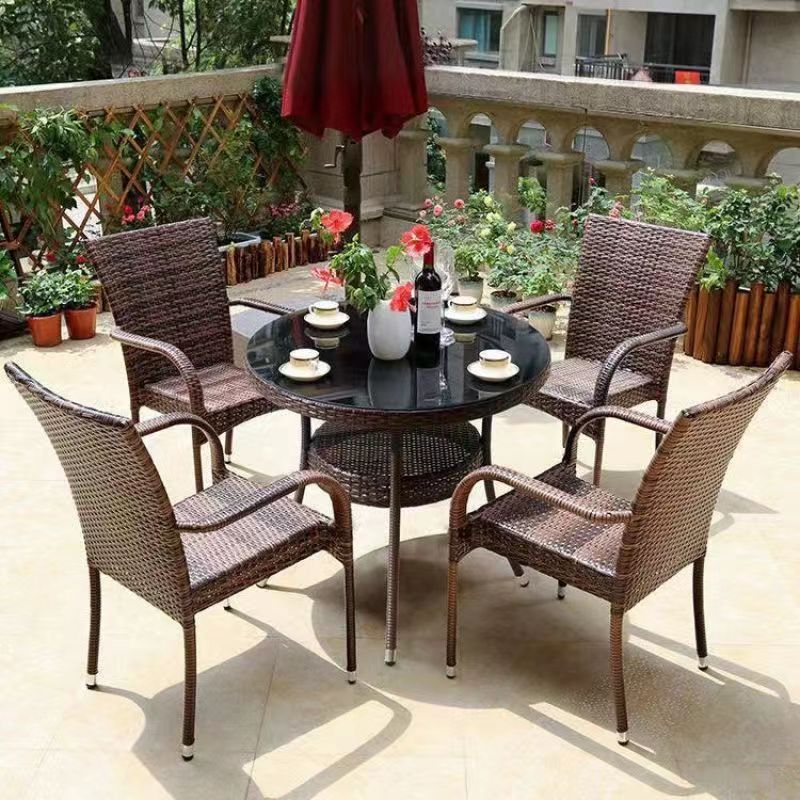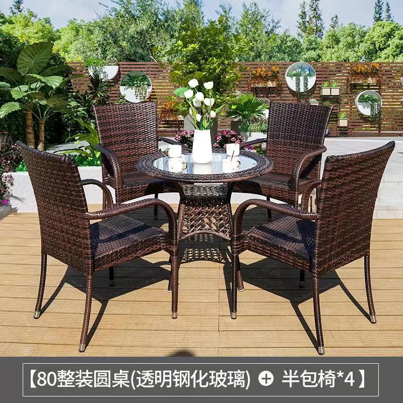 야외 테이블과 의자 안뜰 방수 등나무 의자 도매 정원 야외 소형 커피 테이블 레저 식당 의자 우산 조합스토어 가기