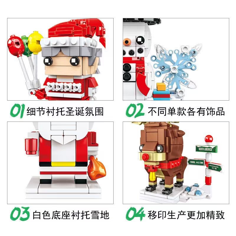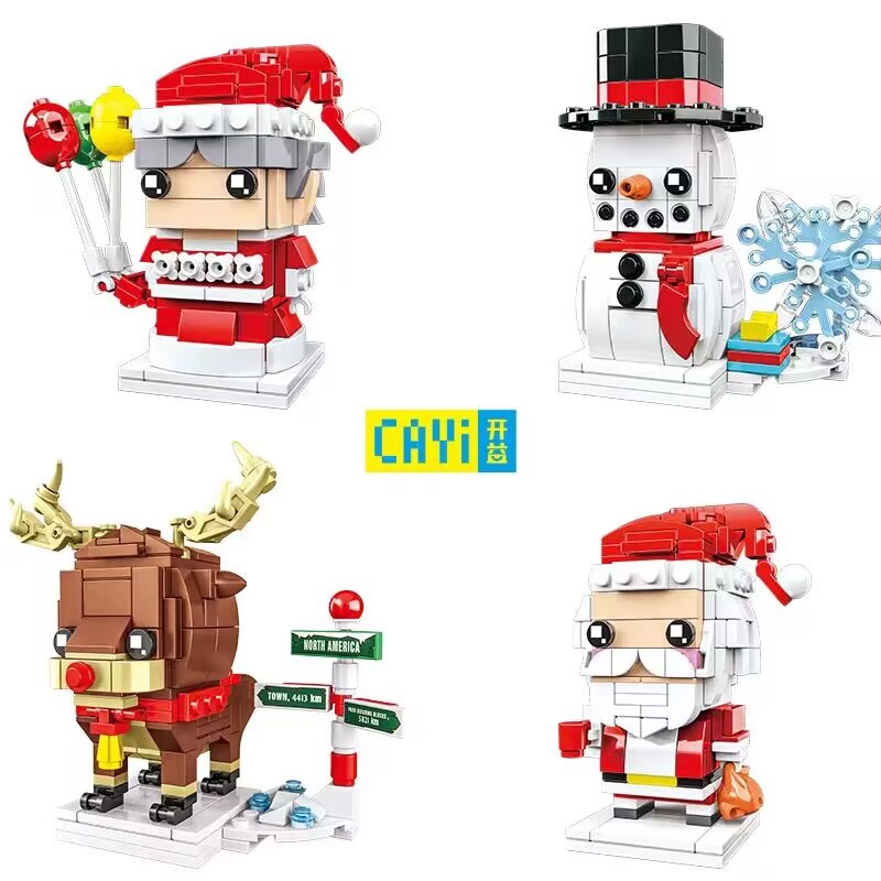 Kaiyi 10089ABCD 크리스마스 선물 노인 눈사람 엘크 스퀘어 헤드 보이 퍼즐 조립 빌딩 블록 장난감 가방스토어 가기