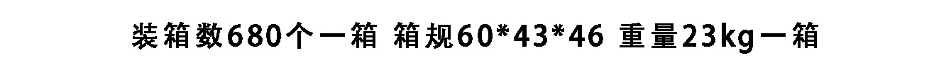 装箱数:680个一箱  箱规:60*43*46 重量:23.12kg一箱
