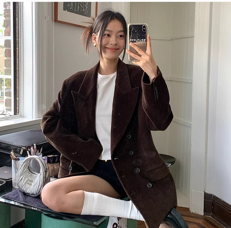 KHA*TE 코듀로이 정장 재킷 여성 봄, 가을 새로운 틈새 디자인 캐주얼 정장 탑 여성스토어 가기