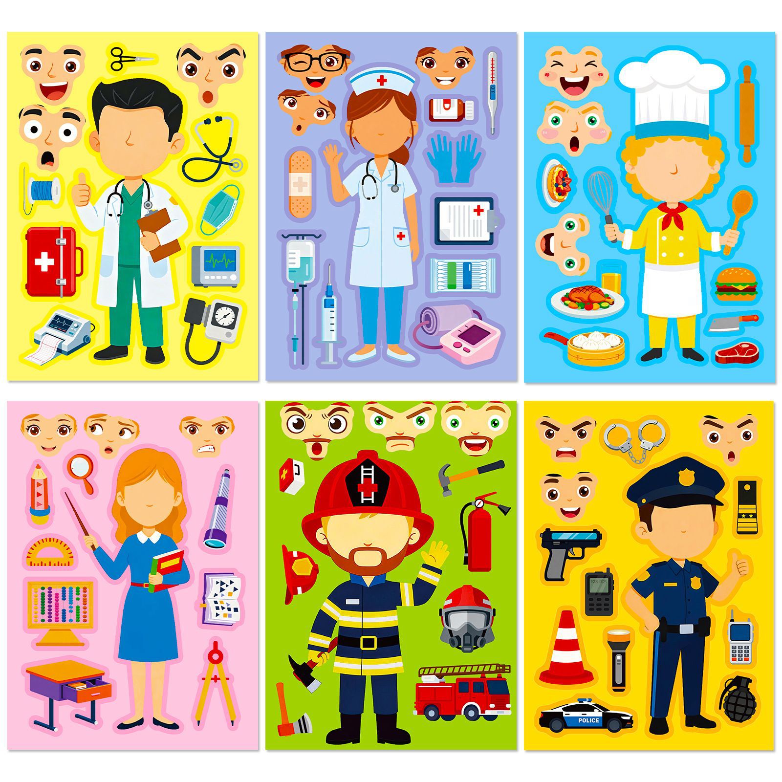 국경을 넘는 6장/팩 전문 얼굴 교체 퍼즐 스티커 테무 어린이 교육용 장난감 조기 교육 DIY 퍼즐 스티커