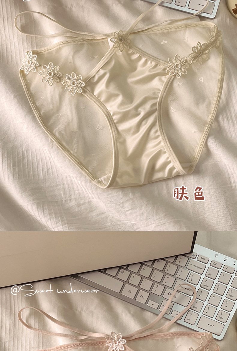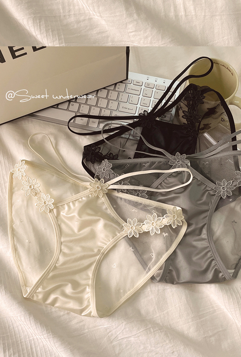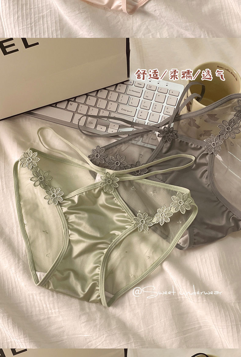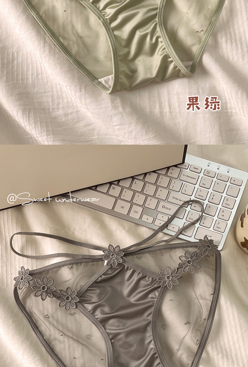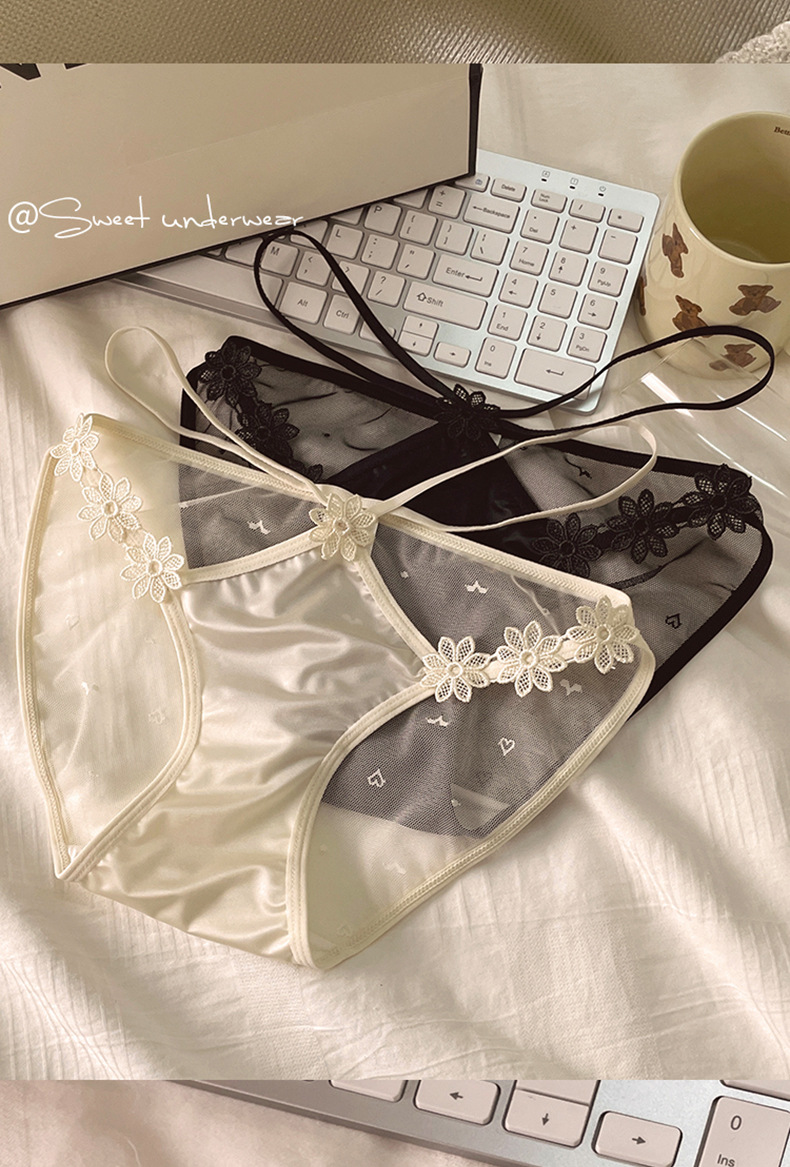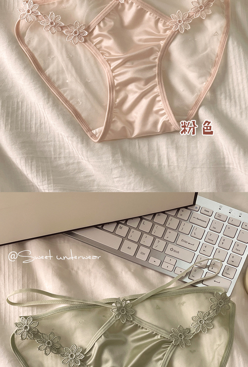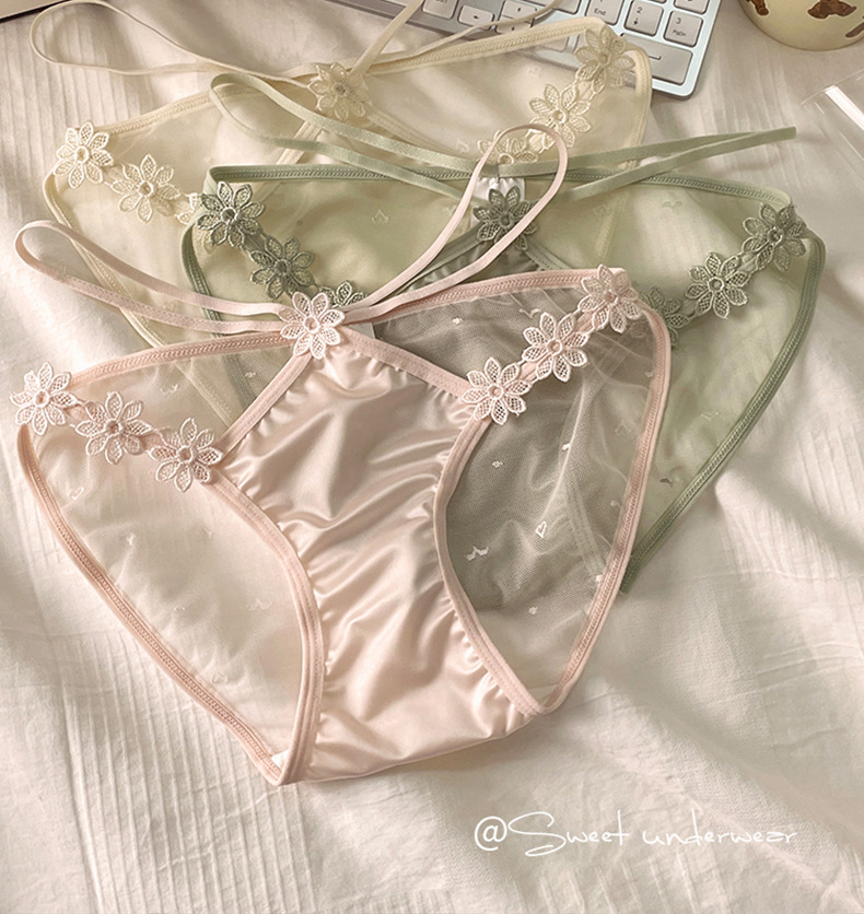 새로운 프랑스 스타일 레이스 속옷 새틴 스트레치 소프트 보우 여성용 면 가랑이 팬티 젤리 달콤한스토어 가기