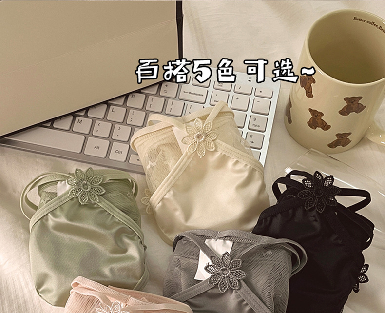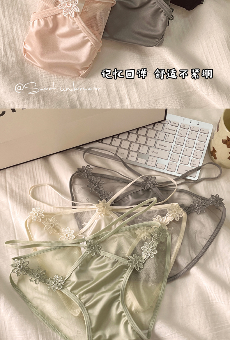 새로운 프랑스 스타일 레이스 속옷 새틴 스트레치 소프트 보우 여성용 면 가랑이 팬티 젤리 달콤한