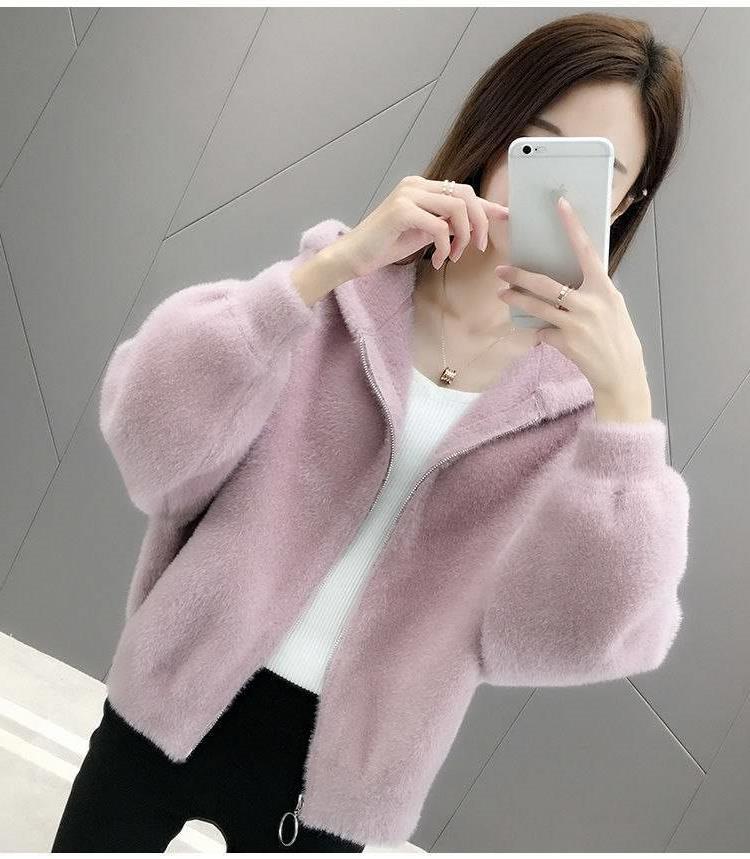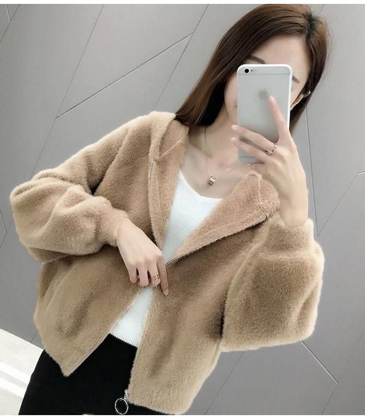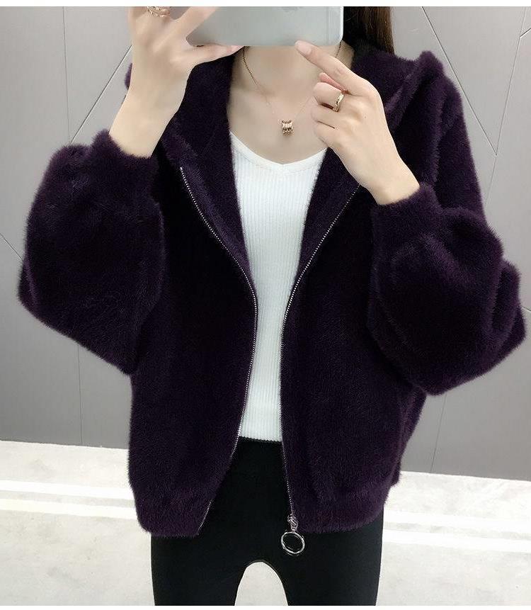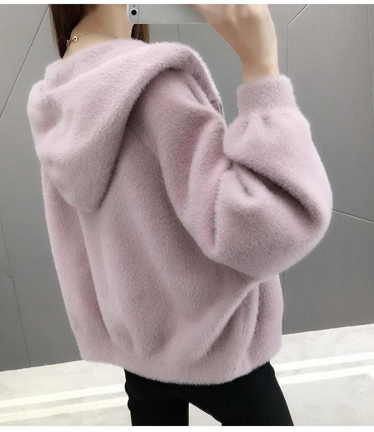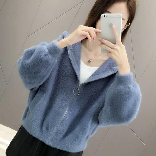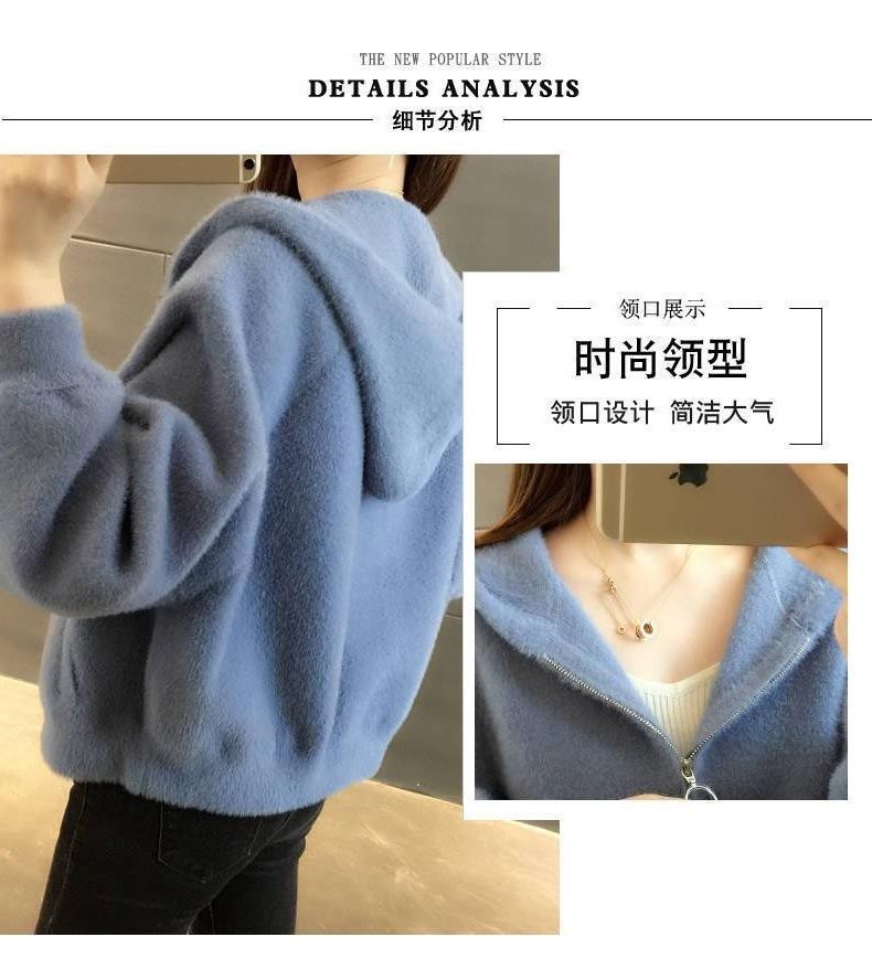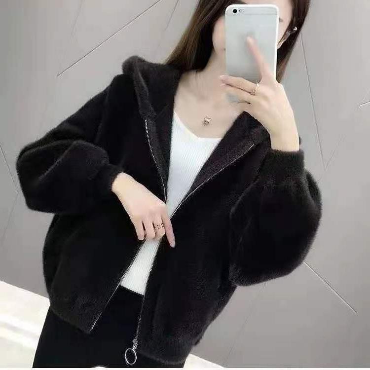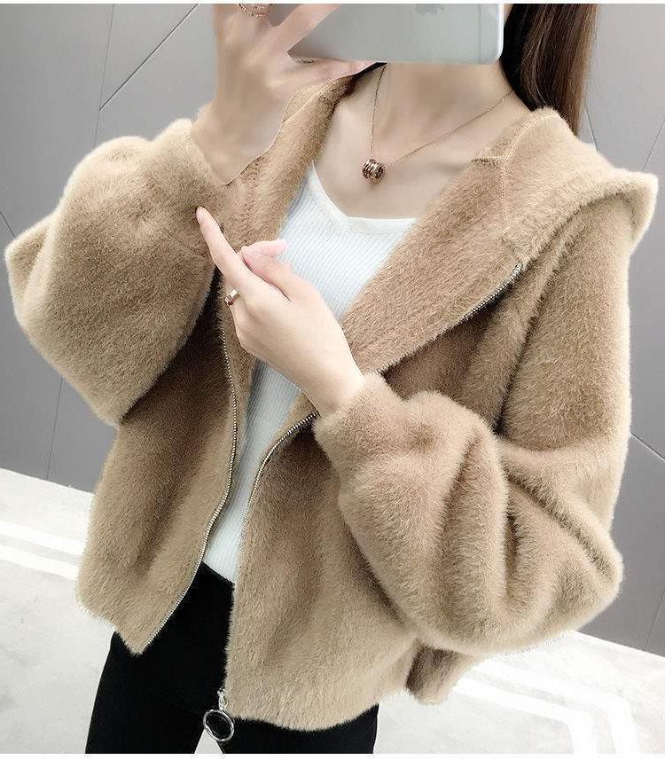 밍크 벨벳 쇼트 코트 2023 새로운 여성의 봄과 가을 한국 느슨한 후드 플러시 솔리드 컬러 가디건 탑
