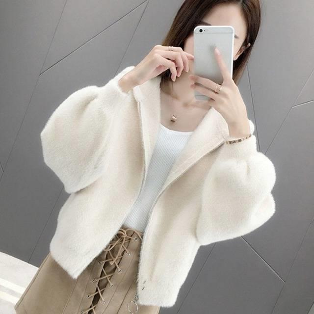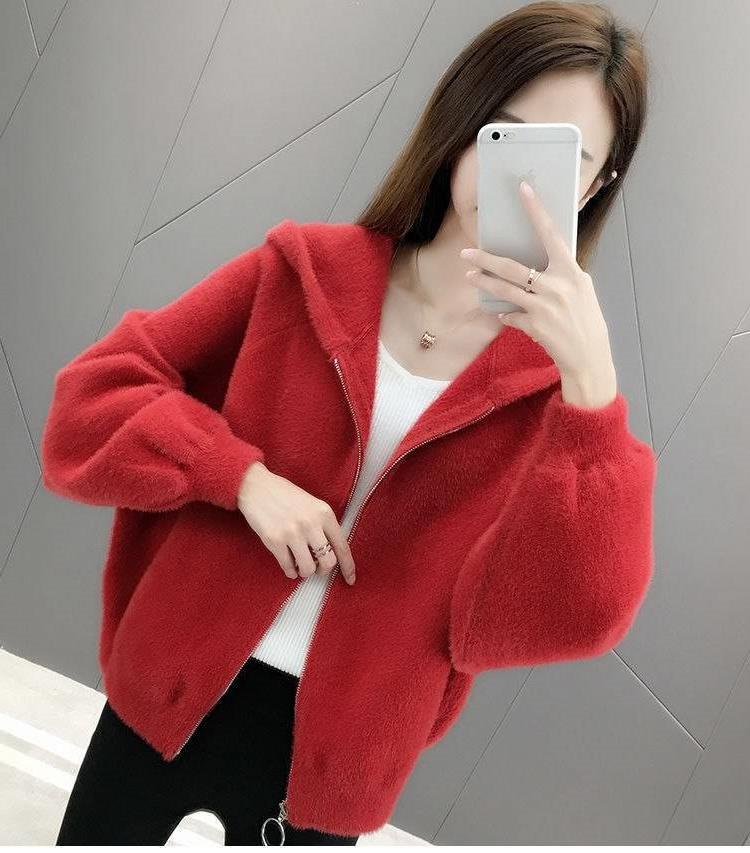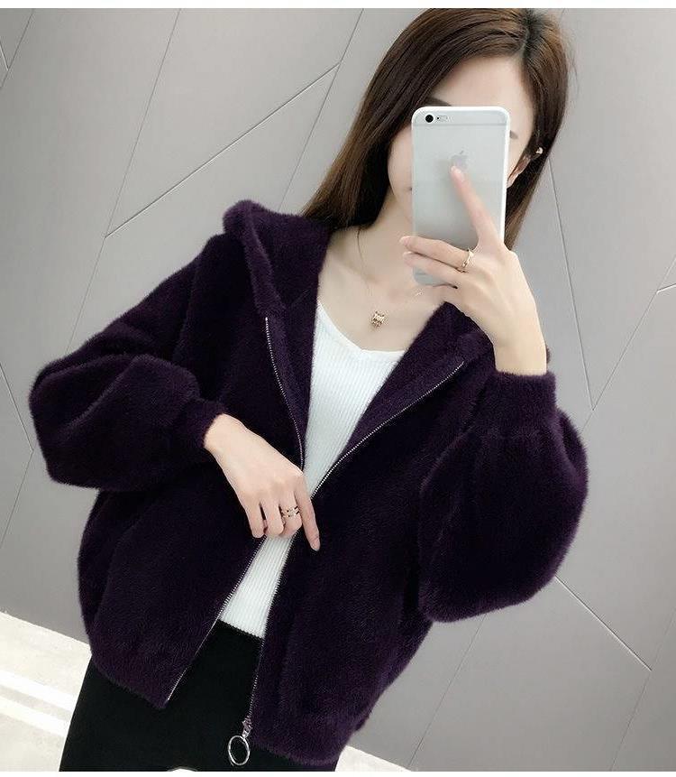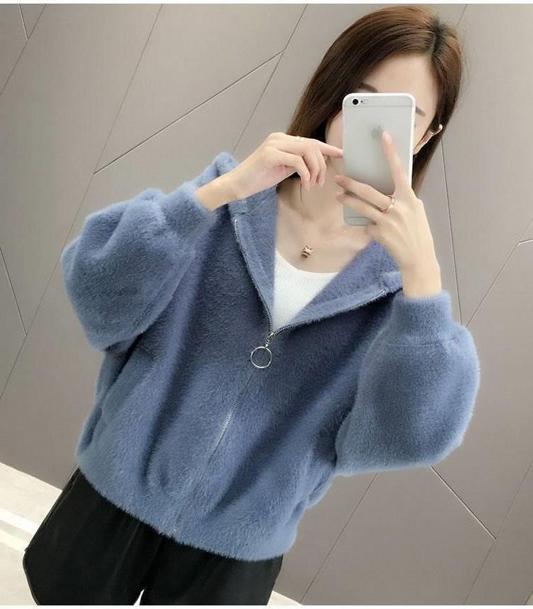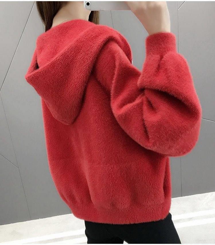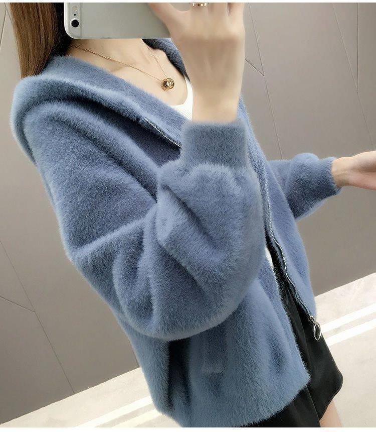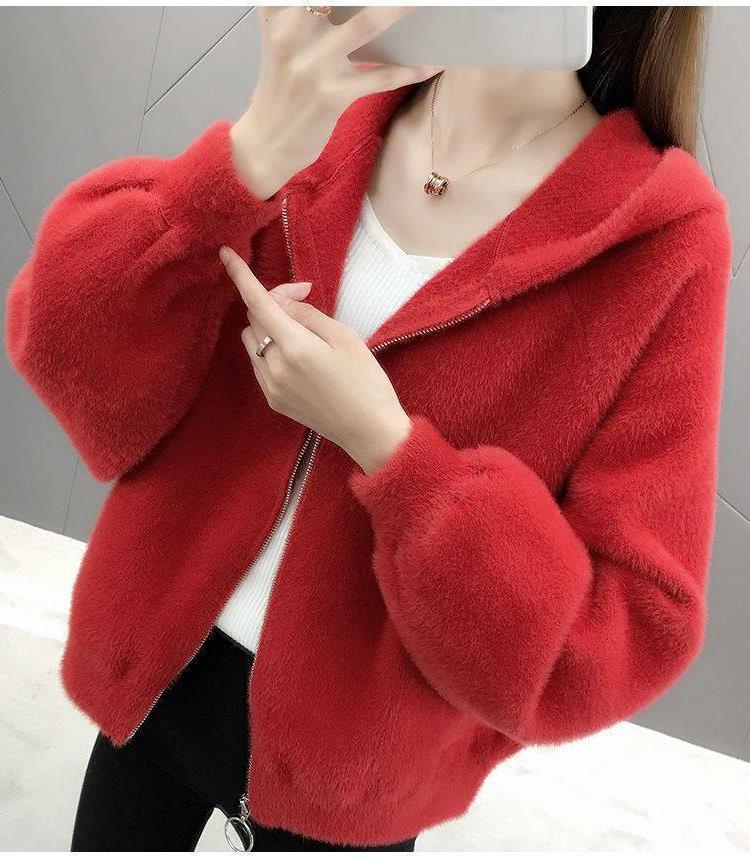 밍크 벨벳 쇼트 코트 2023 새로운 여성의 봄과 가을 한국 느슨한 후드 플러시 솔리드 컬러 가디건 탑
