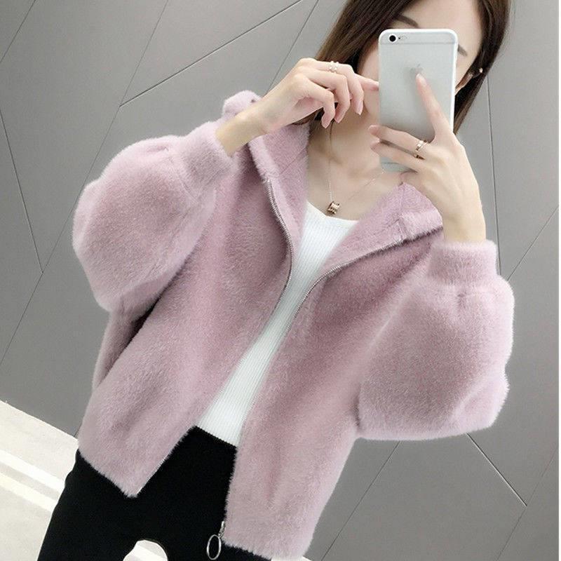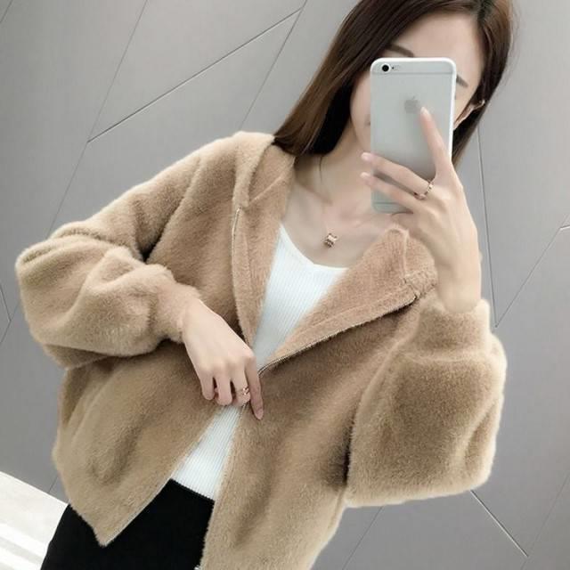 밍크 벨벳 쇼트 코트 2023 새로운 여성의 봄과 가을 한국 느슨한 후드 플러시 솔리드 컬러 가디건 탑스토어 가기