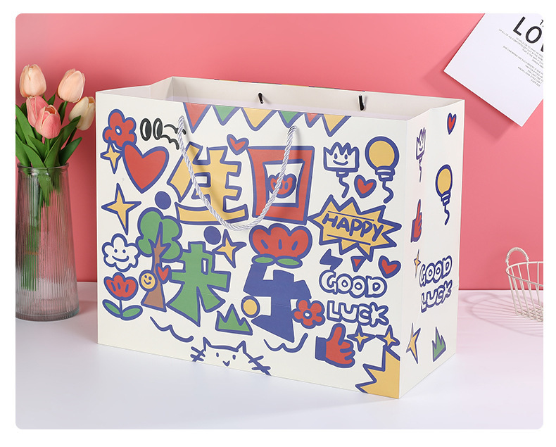 어린이 손그림 선물 가방 생일 축하 포장 핸드백 인기 선물 가방 웨딩 답례품 선물 가방
