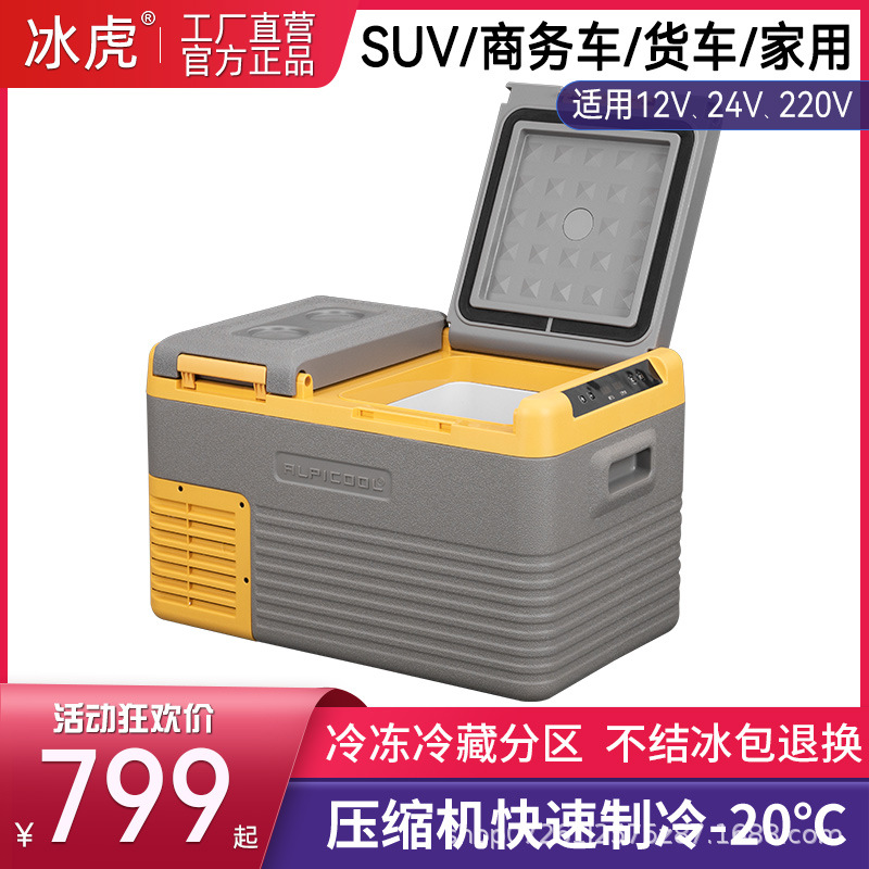 아이스 타이거 압축기 자동차 냉장고 이중 도어 냉동 및 냉장 파티션 자동차 홈 이중 용도 12V24V100V220V 캐비닛스토어 가기
