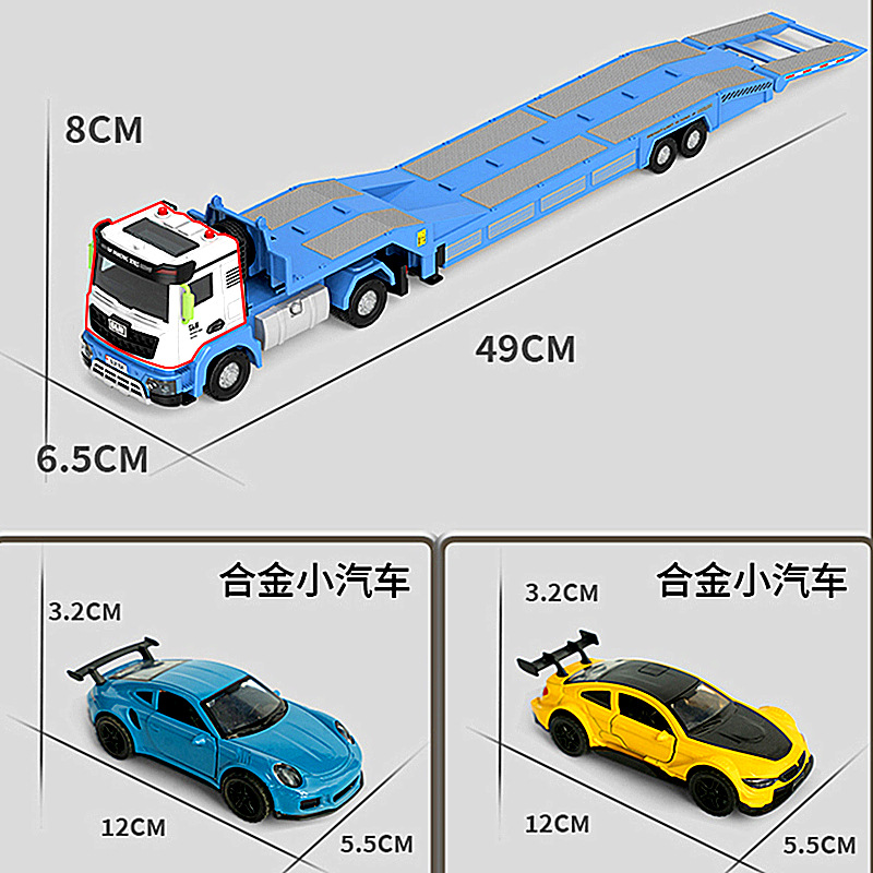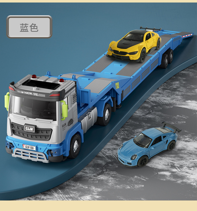 대형 합금 트레일러 장난감 어린이 공학 자동차 자동차 수송기 세트 소년 평판 트레일러 모델