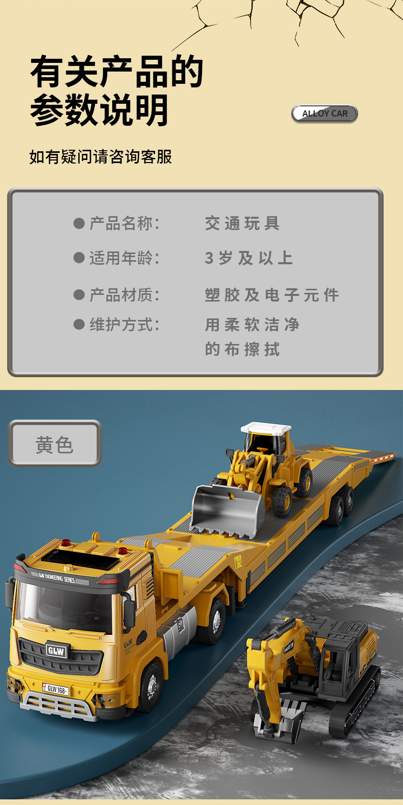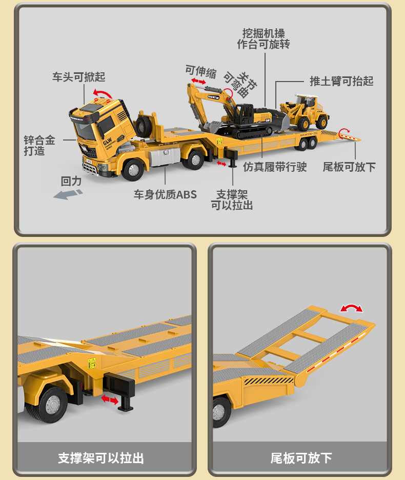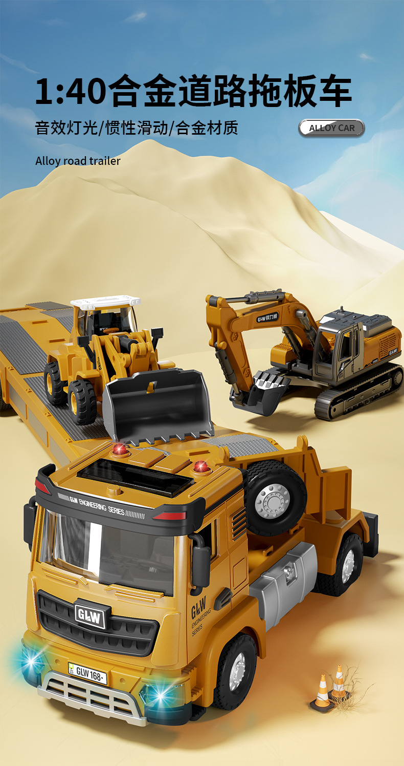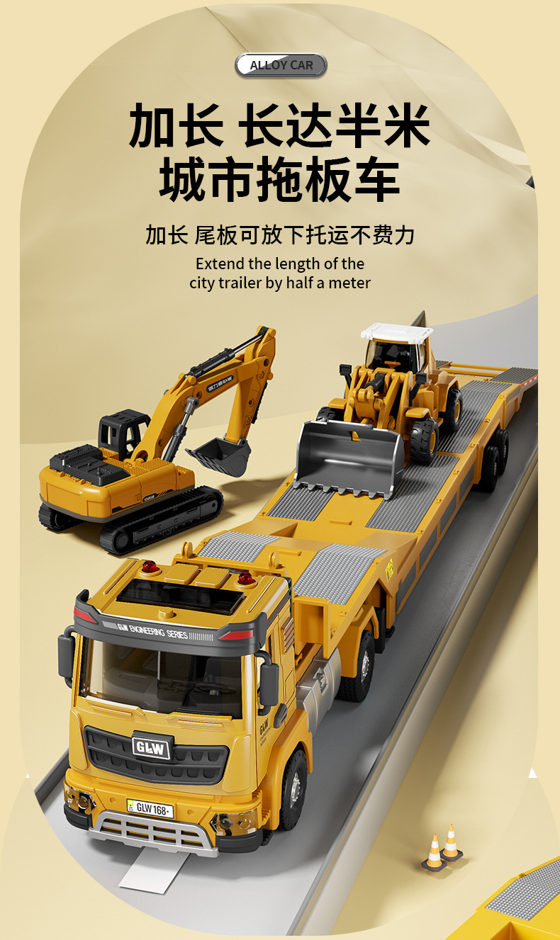 대형 합금 트레일러 장난감 어린이 공학 자동차 자동차 수송기 세트 소년 평판 트레일러 모델스토어 가기