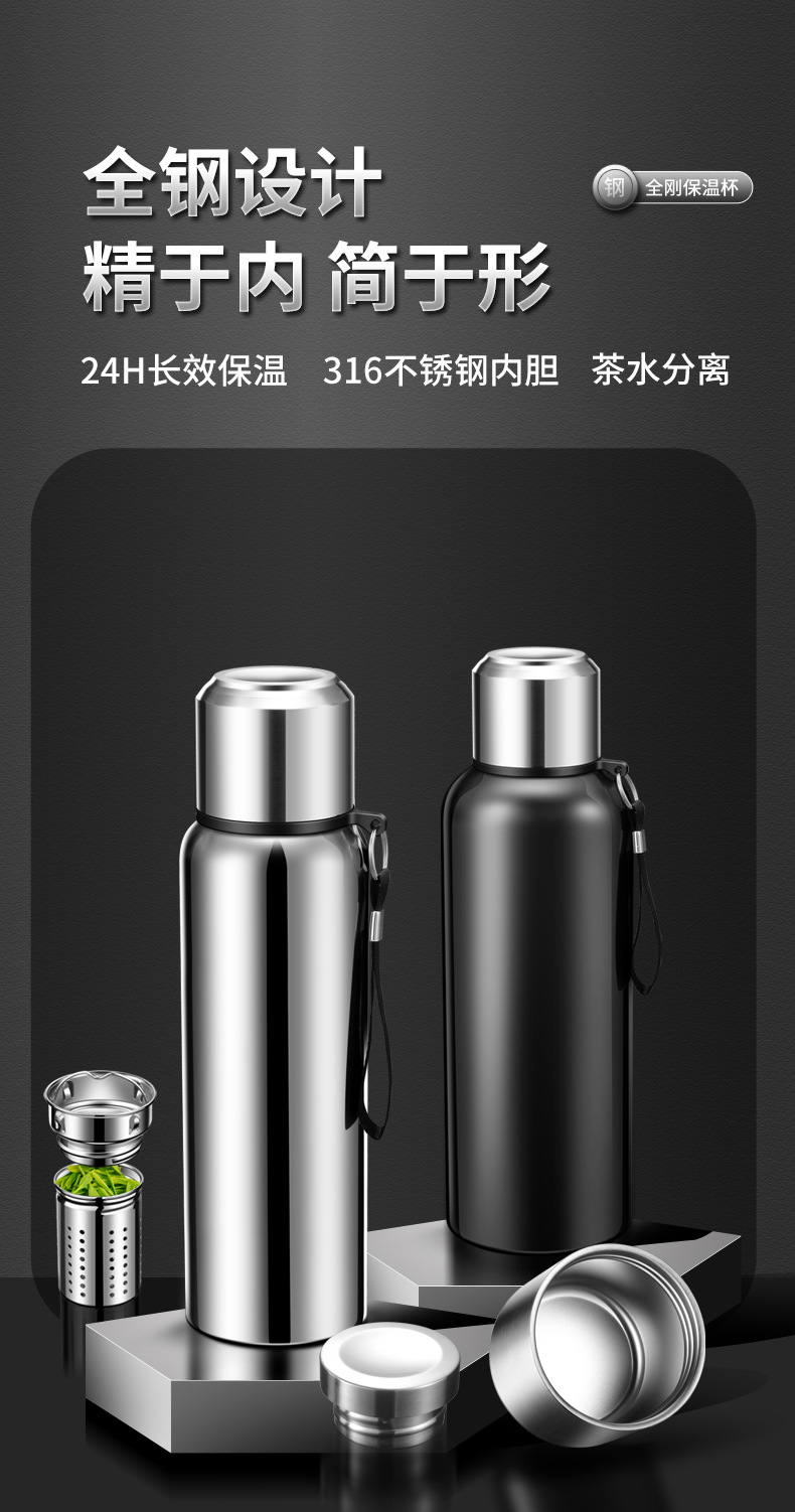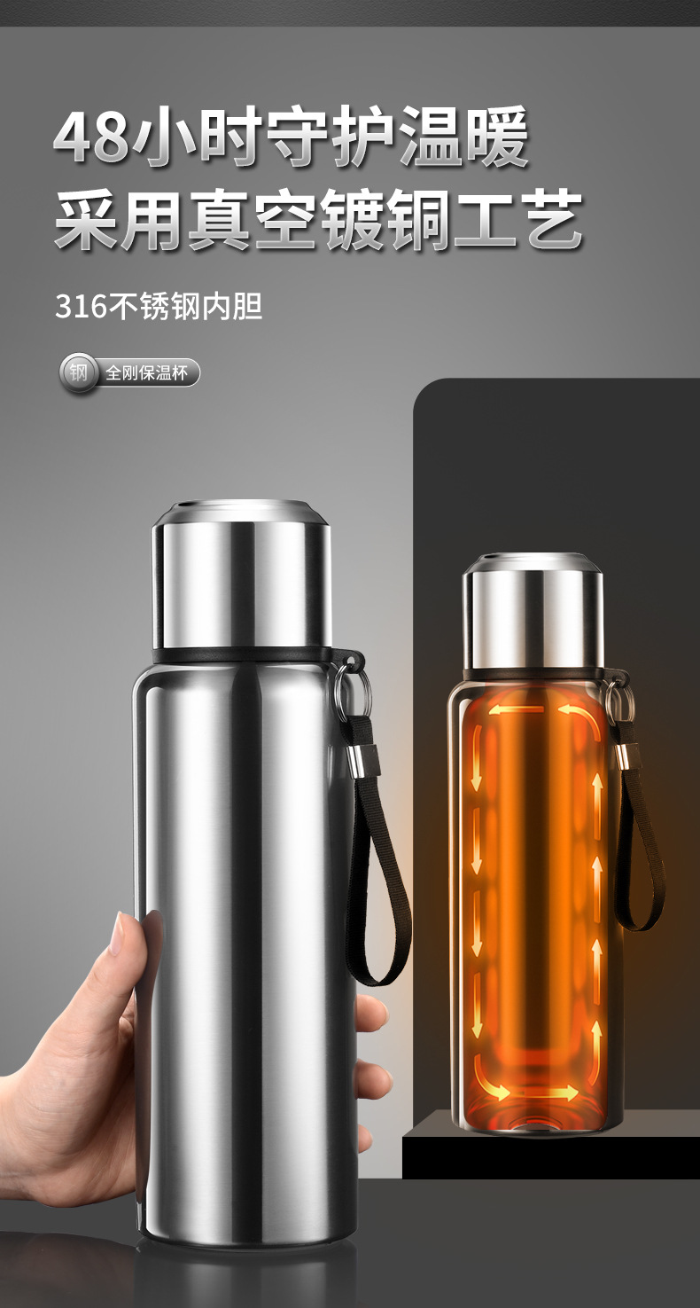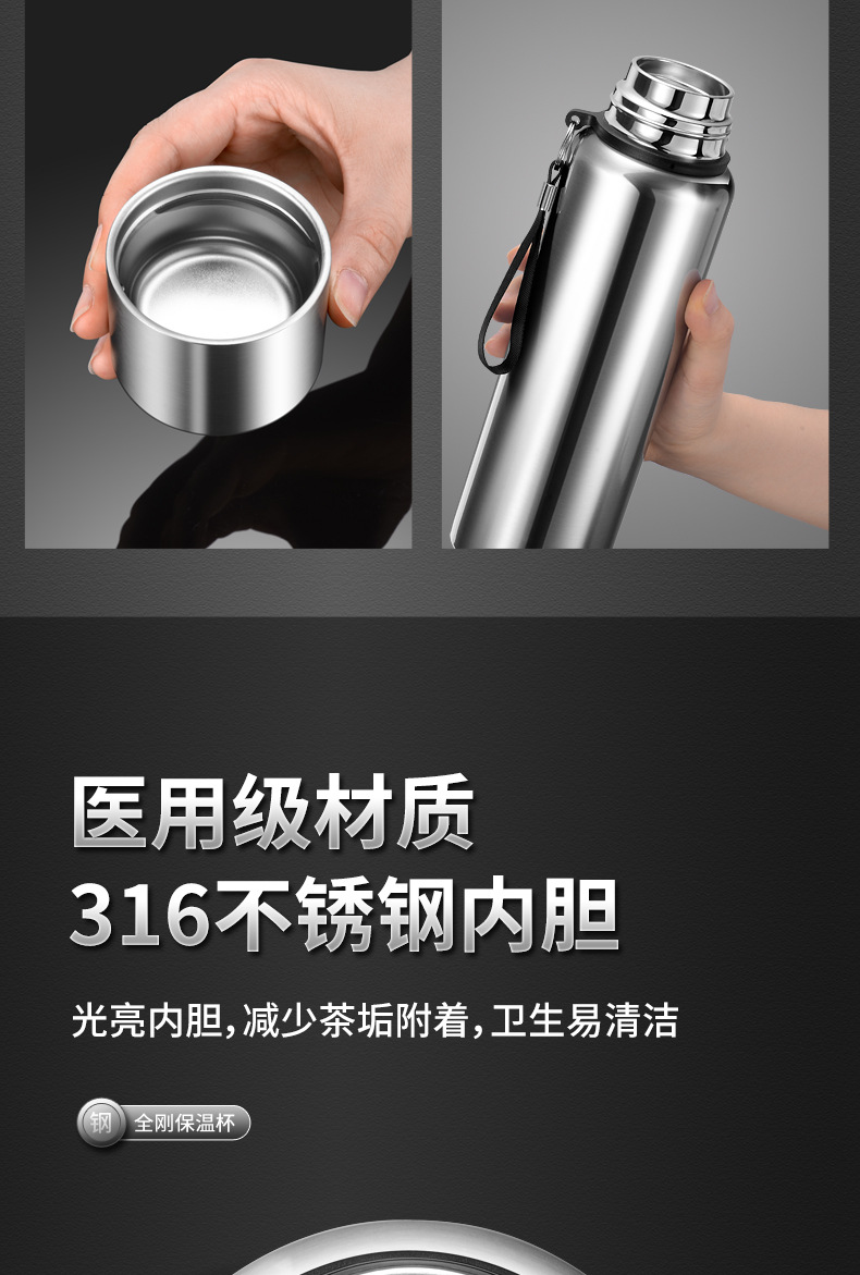 316 스테인리스 지능형 온도 측정 올스틸 보온병 컵 대용량 고급 야외 스포츠 주전자 도매 물 컵스토어 가기