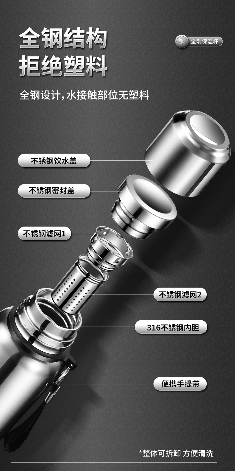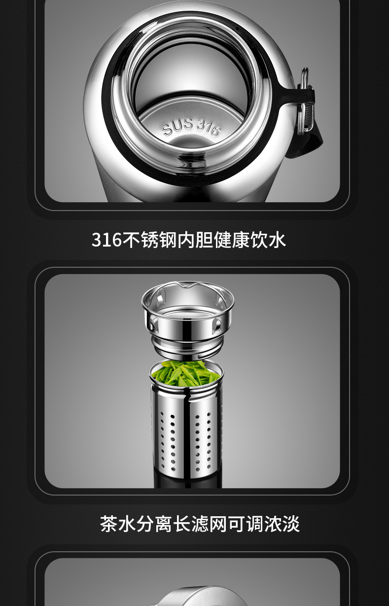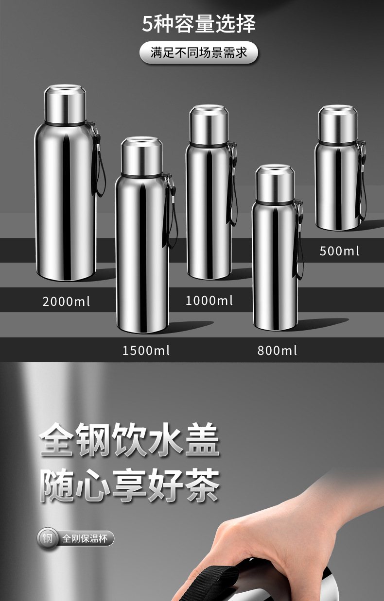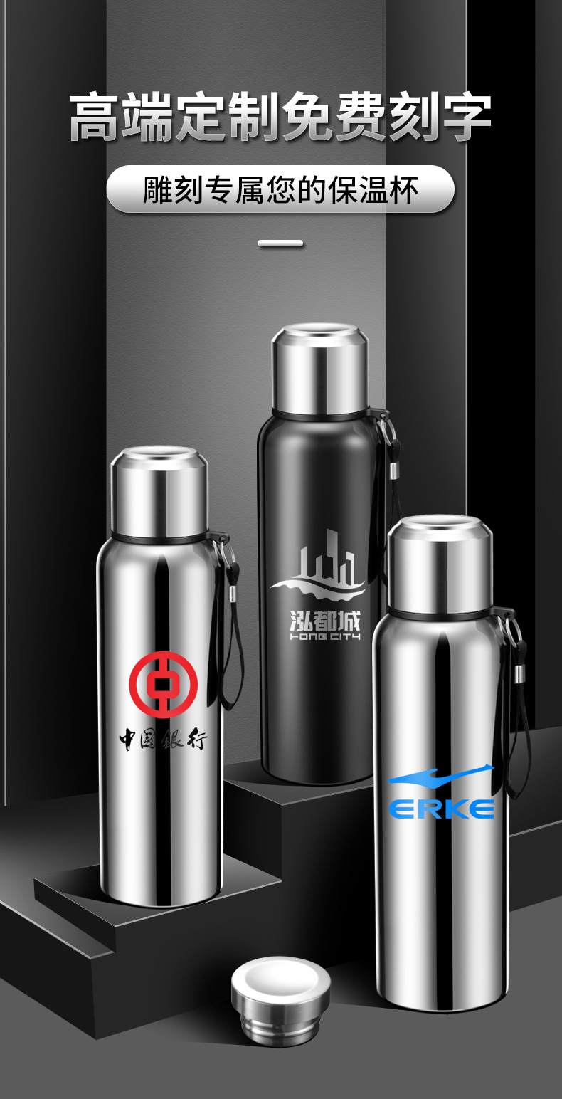 316 스테인리스 지능형 온도 측정 올스틸 보온병 컵 대용량 고급 야외 스포츠 주전자 도매 물 컵스토어 가기