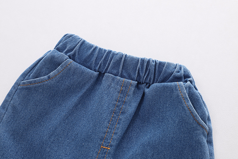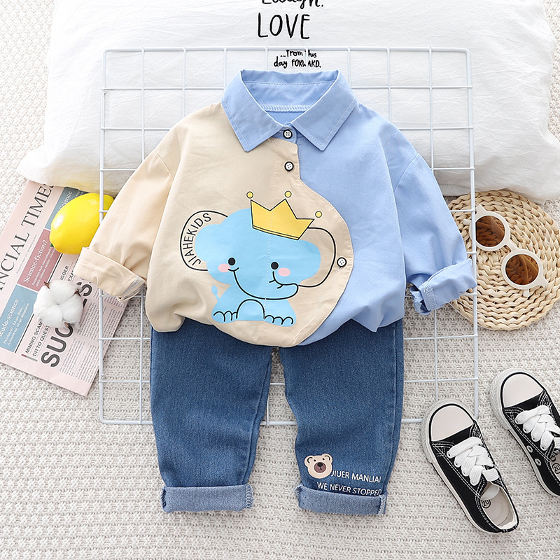 2023 봄 새 소년 옷깃 셔츠 긴 소매 세트 소년 아기 캐주얼 데님 바지 머리를위한 투피스 세트