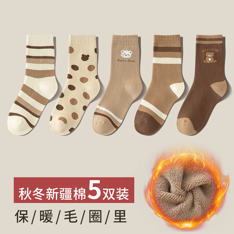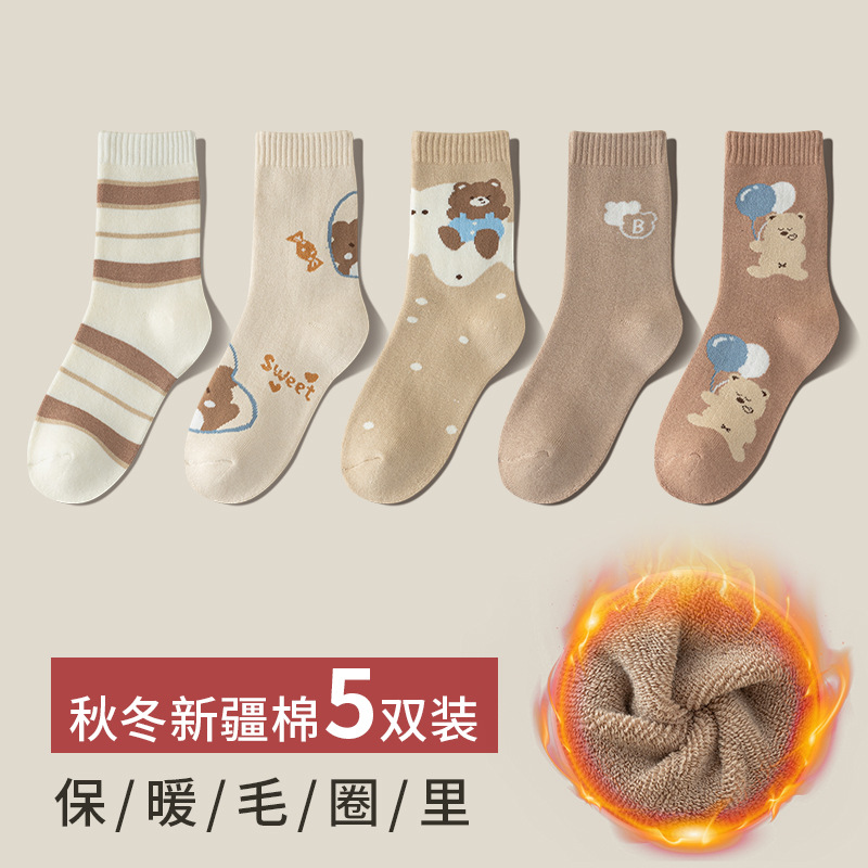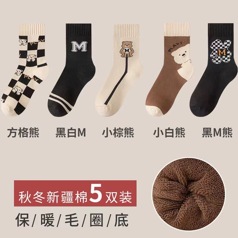 겨울 양말 여성용 따뜻한 부동액 발 스타킹 기모 두꺼운 중간 길이 양말 따뜻한 발 땀 흡수 통기성 루프 스타킹스토어 가기