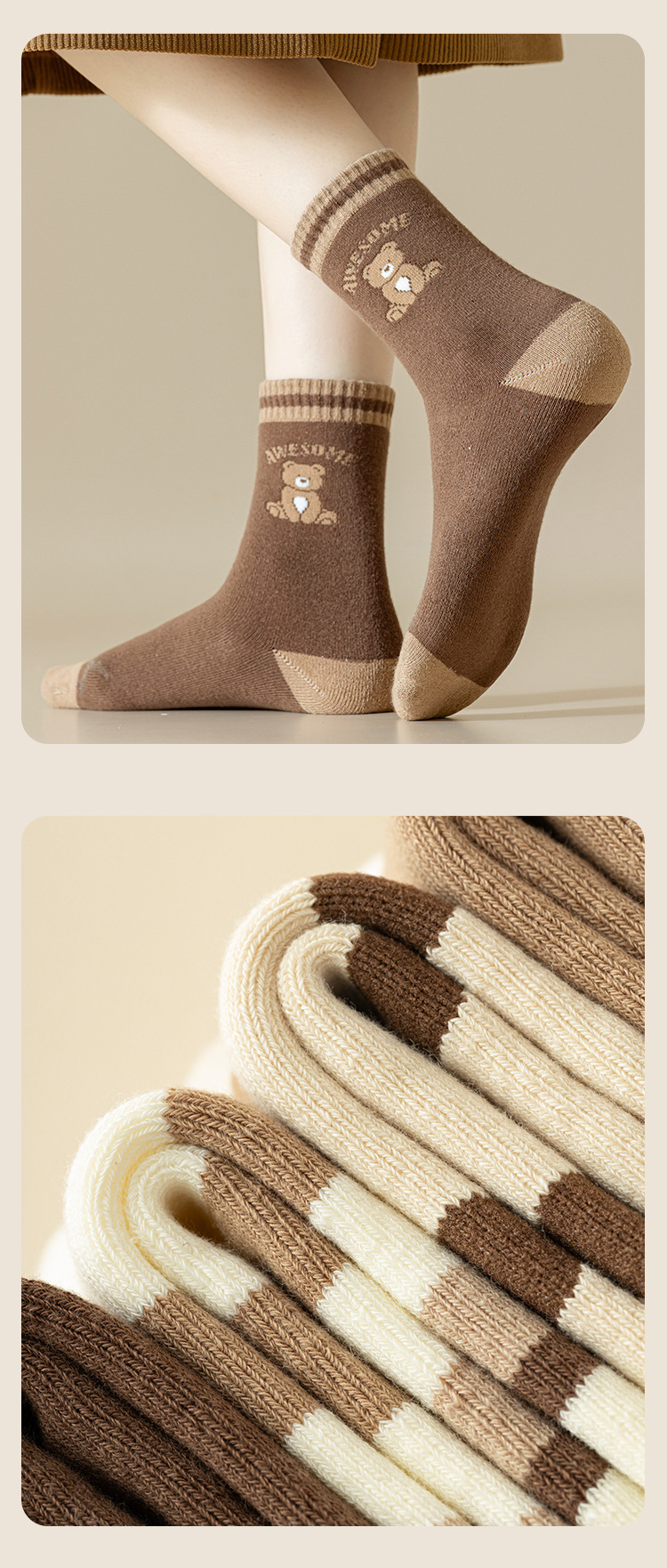 • "새로운 카키 곰" 차가운 기모 농축 5 쌍