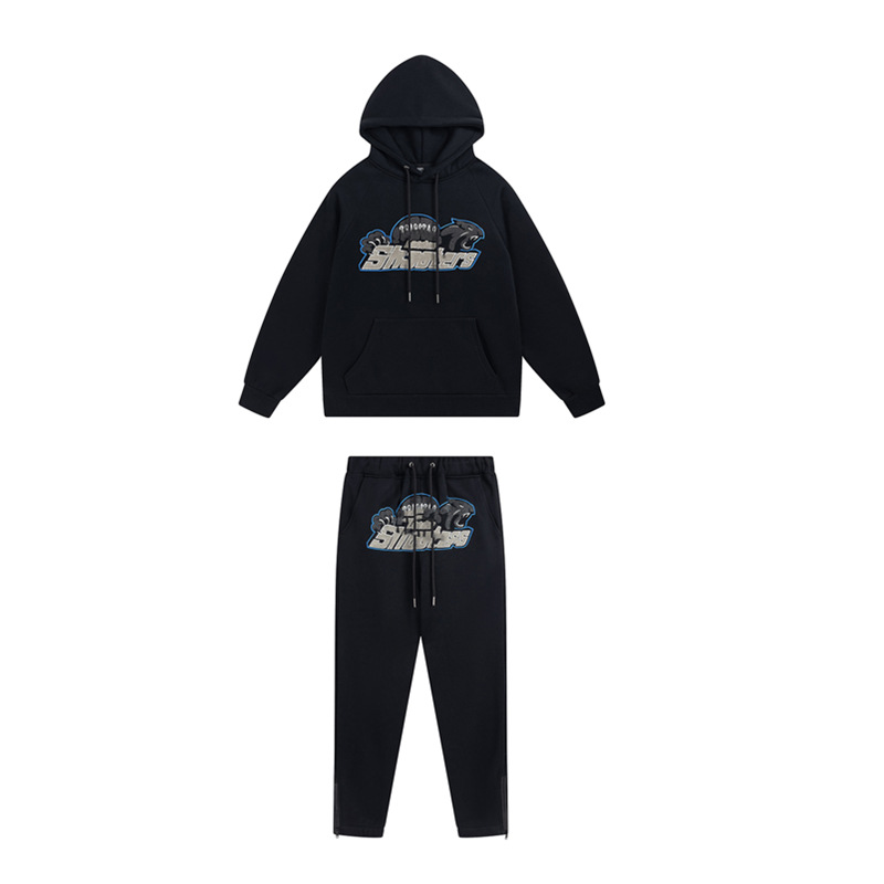 국경 간 대외 무역 Trapstarr 스웨터 스웨터 2 피스 세트 가을과 겨울 편지 호랑이 머리 수건 자수 기모 후드 세트스토어 가기