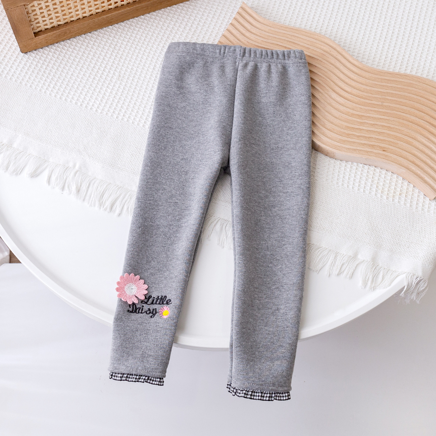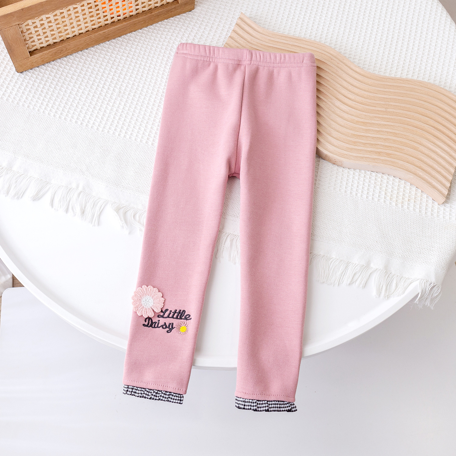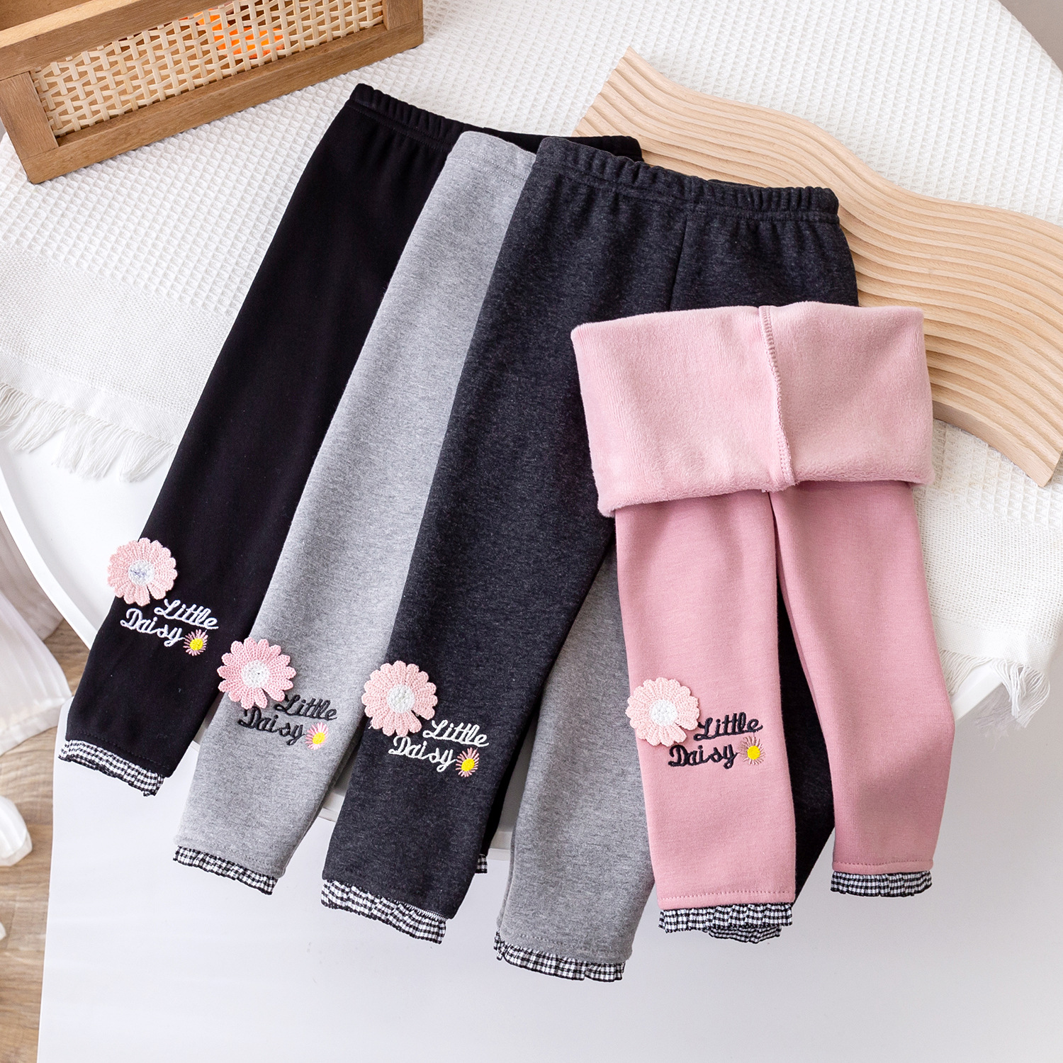 2025 가을 겨울 신상 여아용 기모 바지, 패셔너블한 아동용 일체형 기모 아우터웨어, 여아용 데이지 레깅스스토어 가기