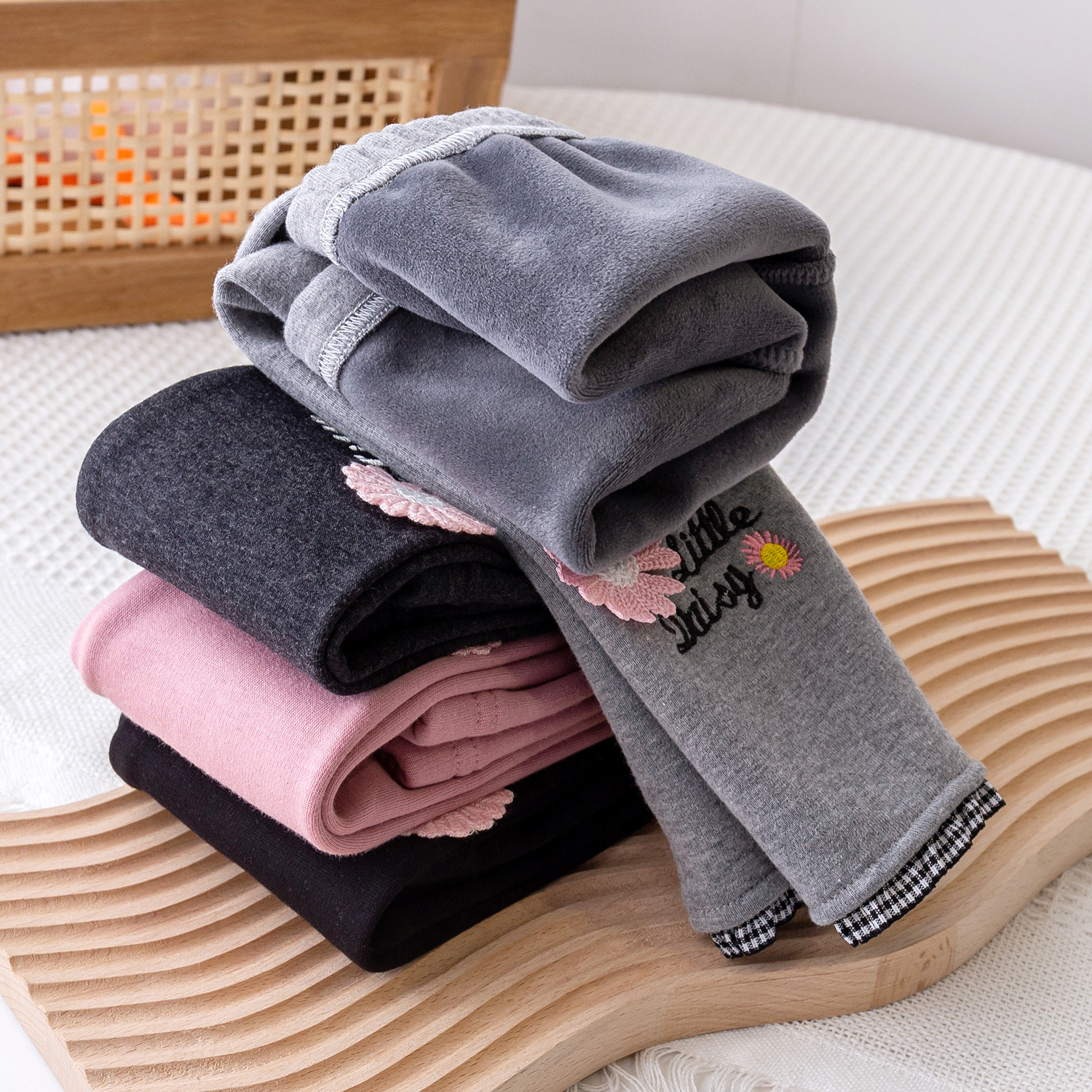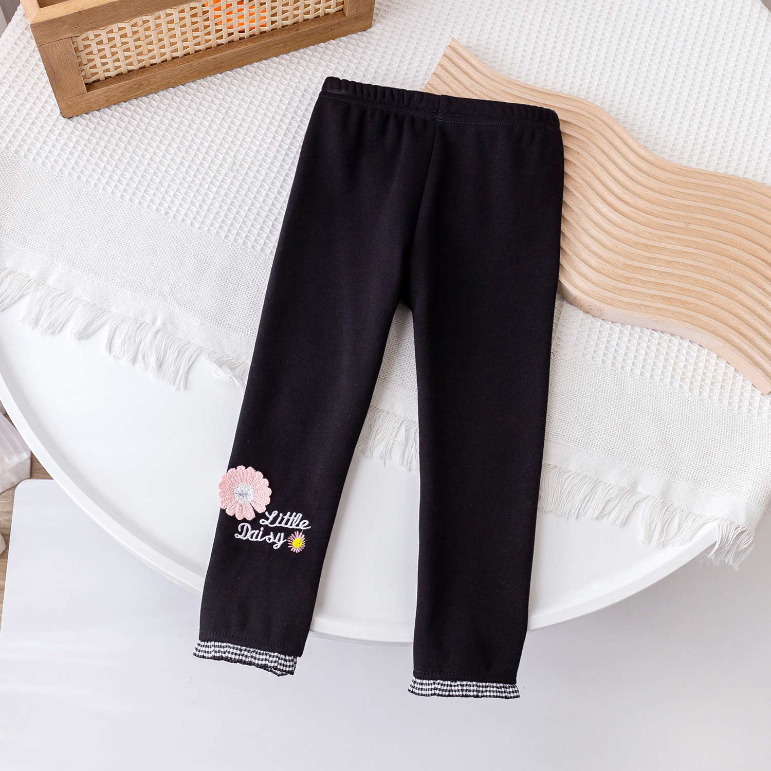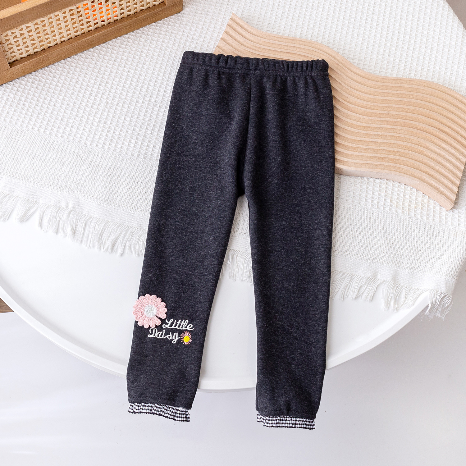 2025 가을 겨울 신상 여아용 기모 바지, 패셔너블한 아동용 일체형 기모 아우터웨어, 여아용 데이지 레깅스스토어 가기