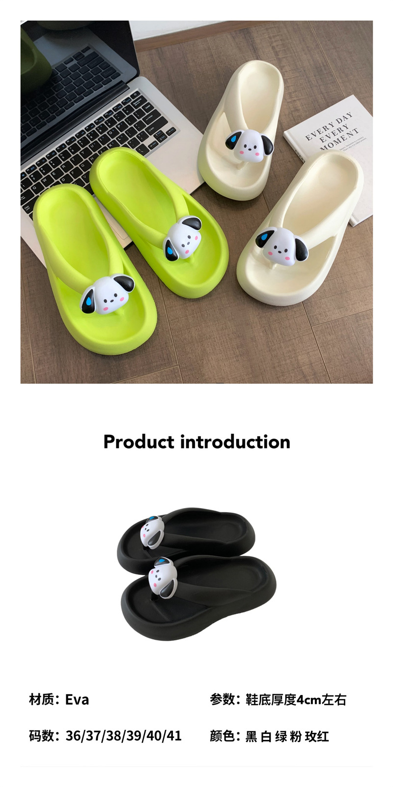 여름 귀여운 강아지 플립 플롭 여성 복장 실내 가정 방수 미끄럼 방지 편안한 사일런트 비치 샌들