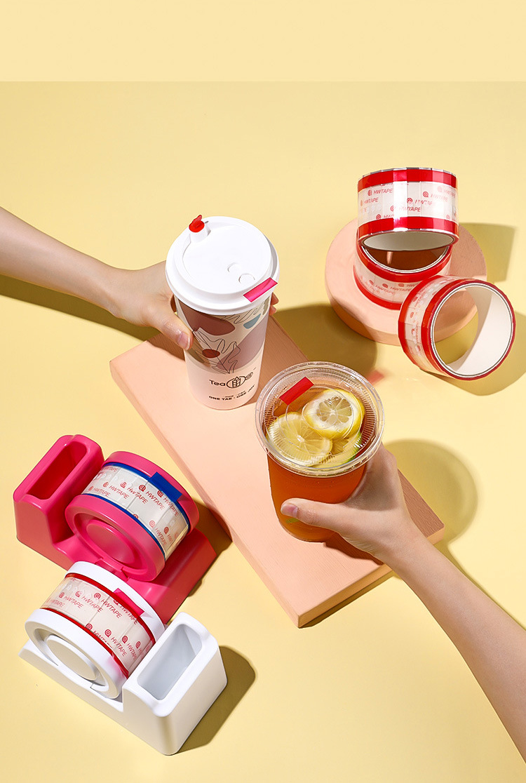 투명 쉬운 눈물 페이스트 커피 밀크 티 샵 컵 커버 테이프 테이크 아웃 포장 누출 방지 테이프 베이스 밀크 티 씰링 페이스트