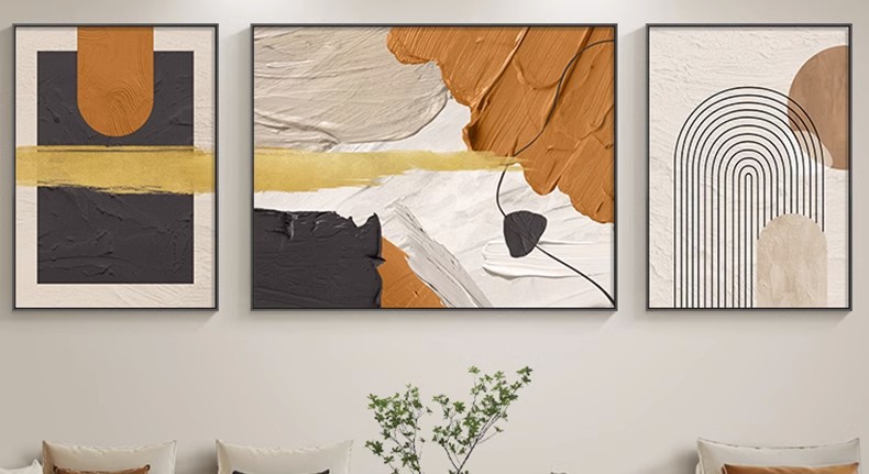 가벼운 럭셔리 추상 거실 장식 그림 현대 간단한 소파 배경 벽걸이 그림 크림 스타일 레스토랑 트리플 벽화