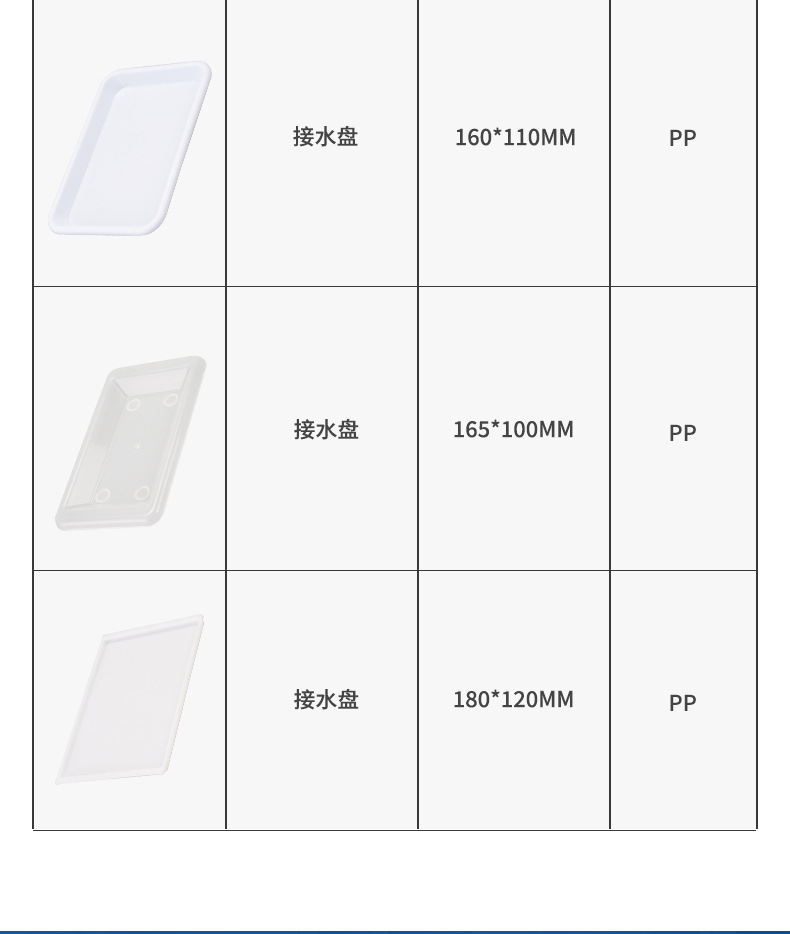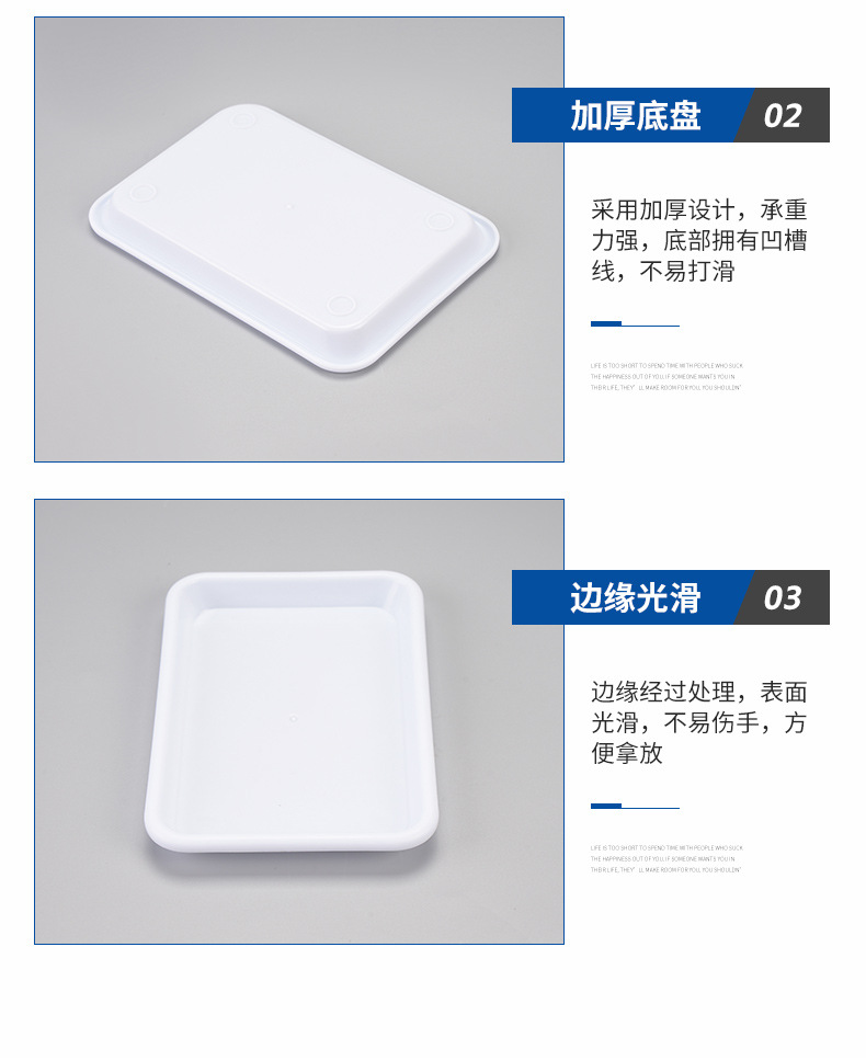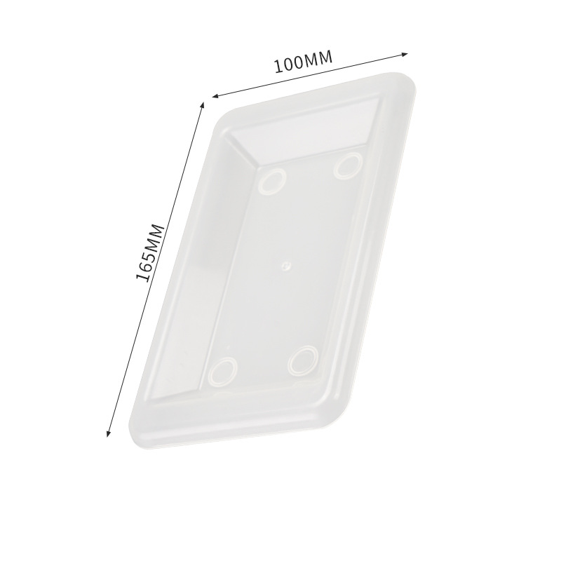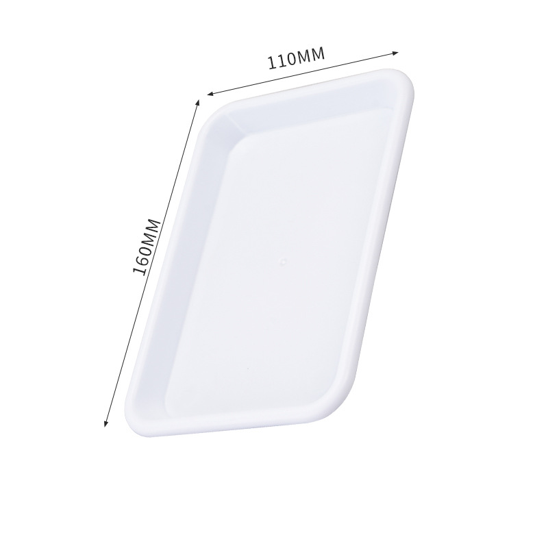제조업체 직접 공급 두꺼운 pp 흰색 플라스틱 물 트레이 직사각형 가장자리 150*90mm 투명 배수 트레이