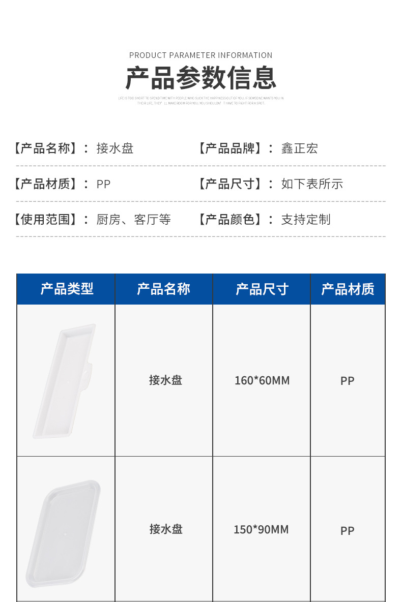 제조업체 직접 공급 두꺼운 pp 흰색 플라스틱 물 트레이 직사각형 가장자리 150*90mm 투명 배수 트레이스토어 가기