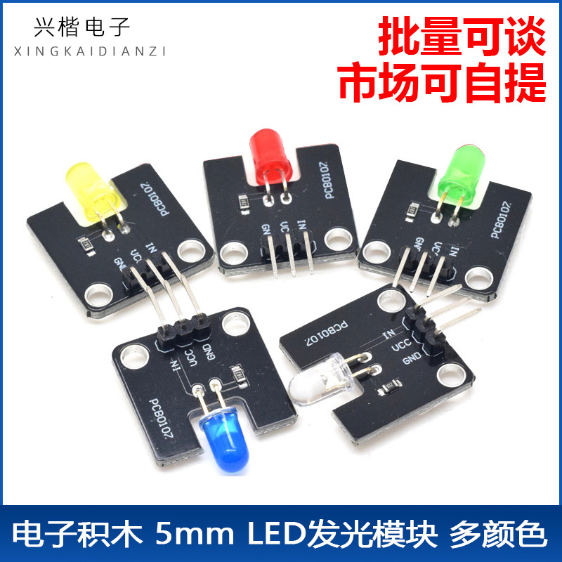 전자 빌딩 블록 5mm LED 조명 모듈 녹색/빨간색/흰색/노란색/파란색 멀티 컬러스토어 가기