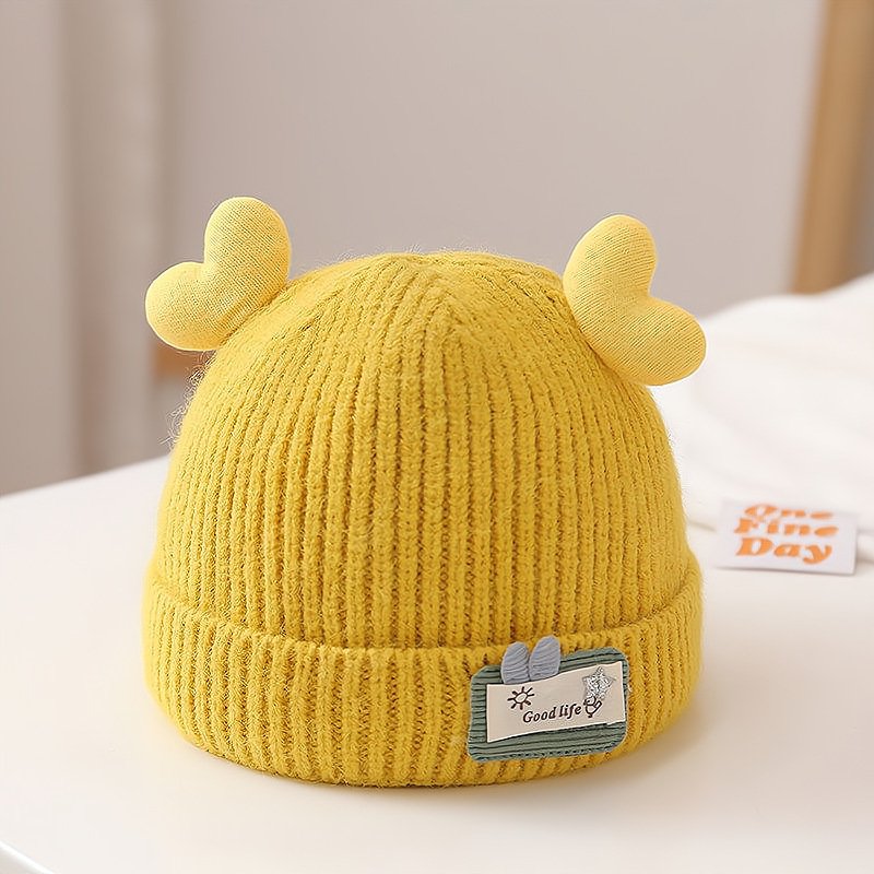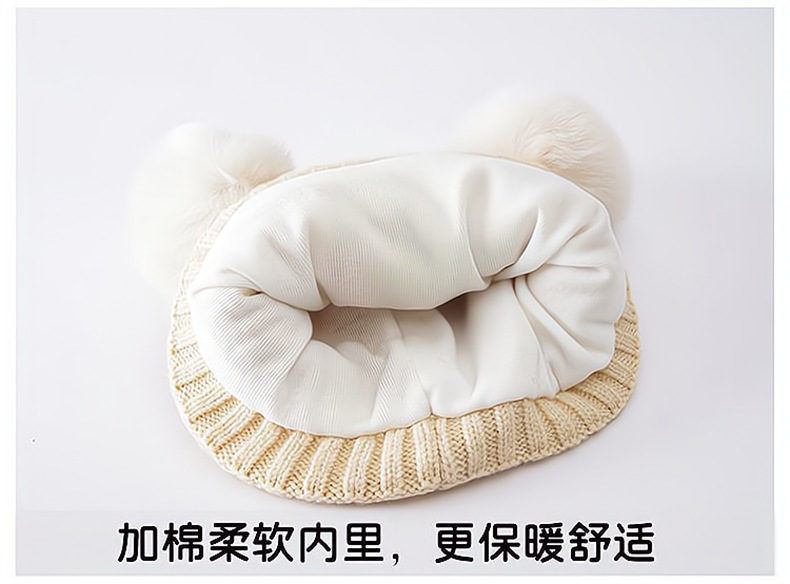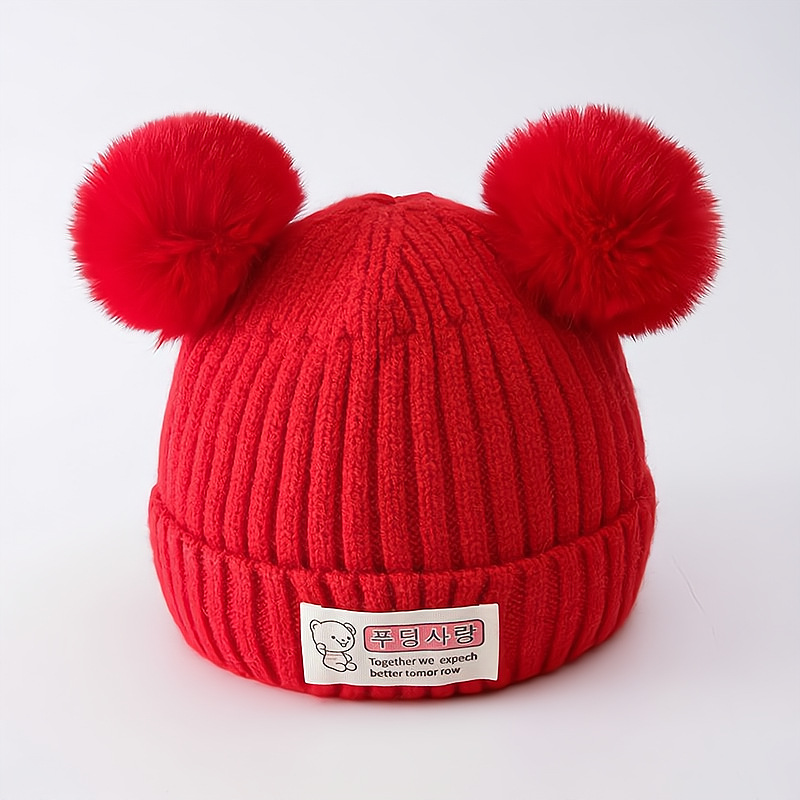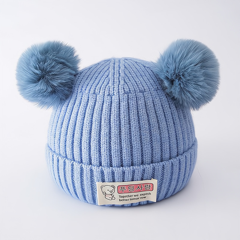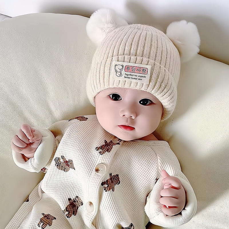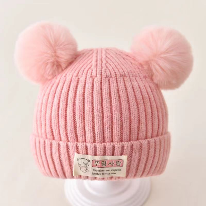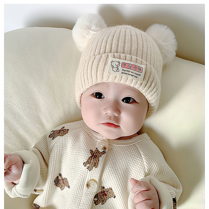 신생아 가을과 겨울 더블 볼 아기 아기 남자와 여자의 양모 니트 모자 한국 곰 따뜻한 두꺼운 태아 모자