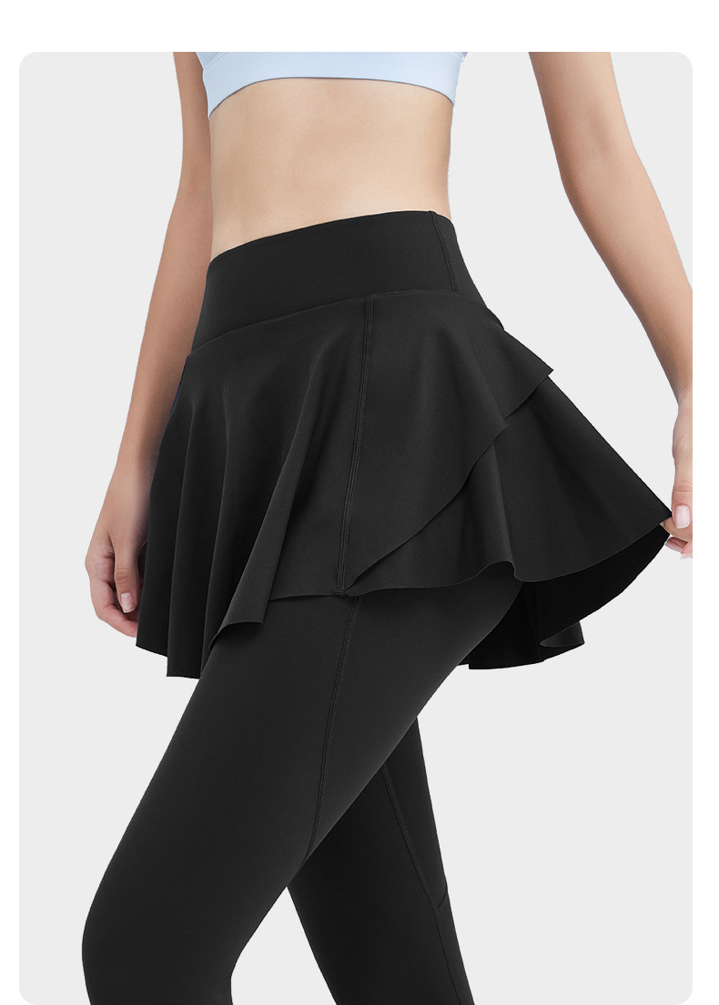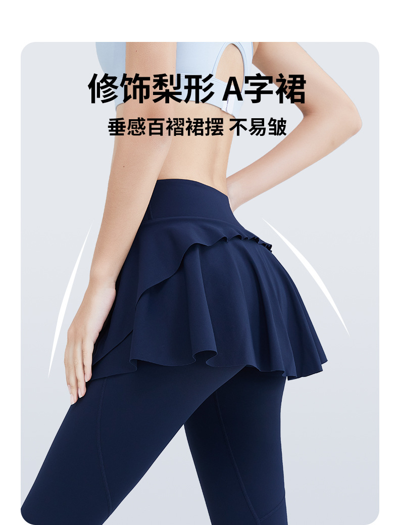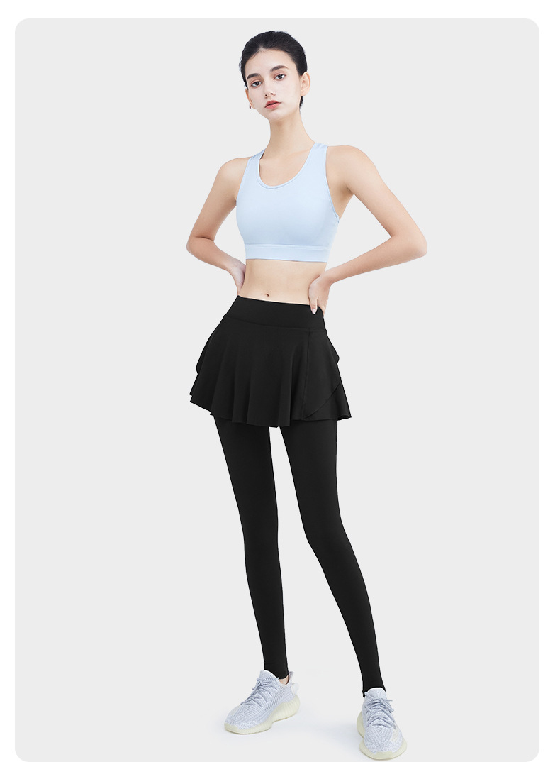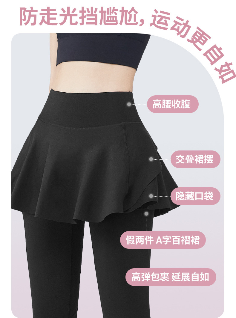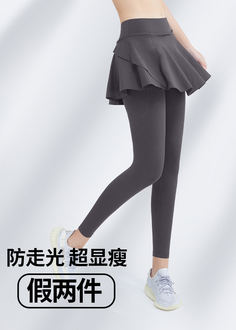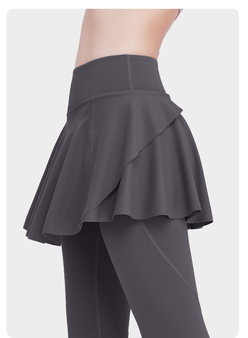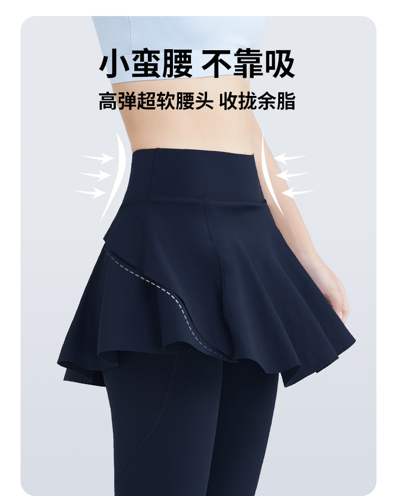 가짜 투피스 피트니스 퀼로트 여성용 하이 웨이스트 배꼽 엉덩이 리프팅 요가 바지 알몸 엉덩이 덮음 스포츠 러닝 겉옷 안티 라이트