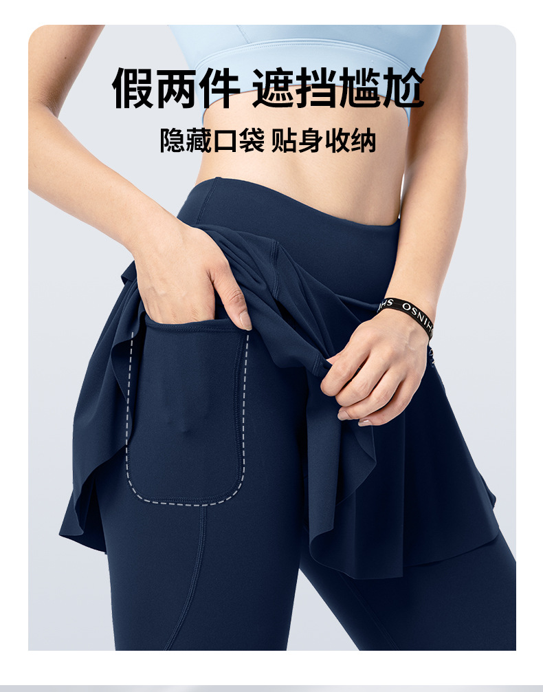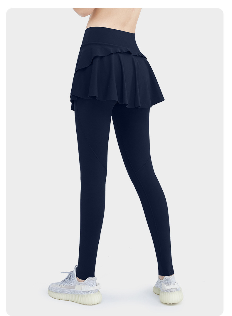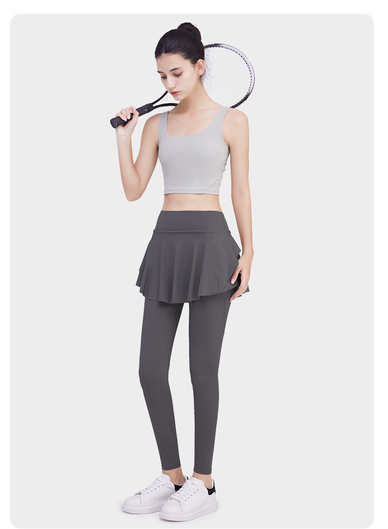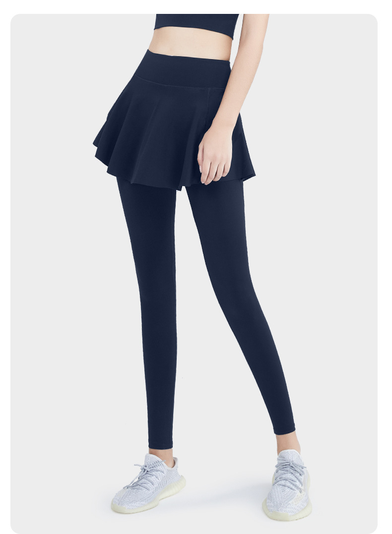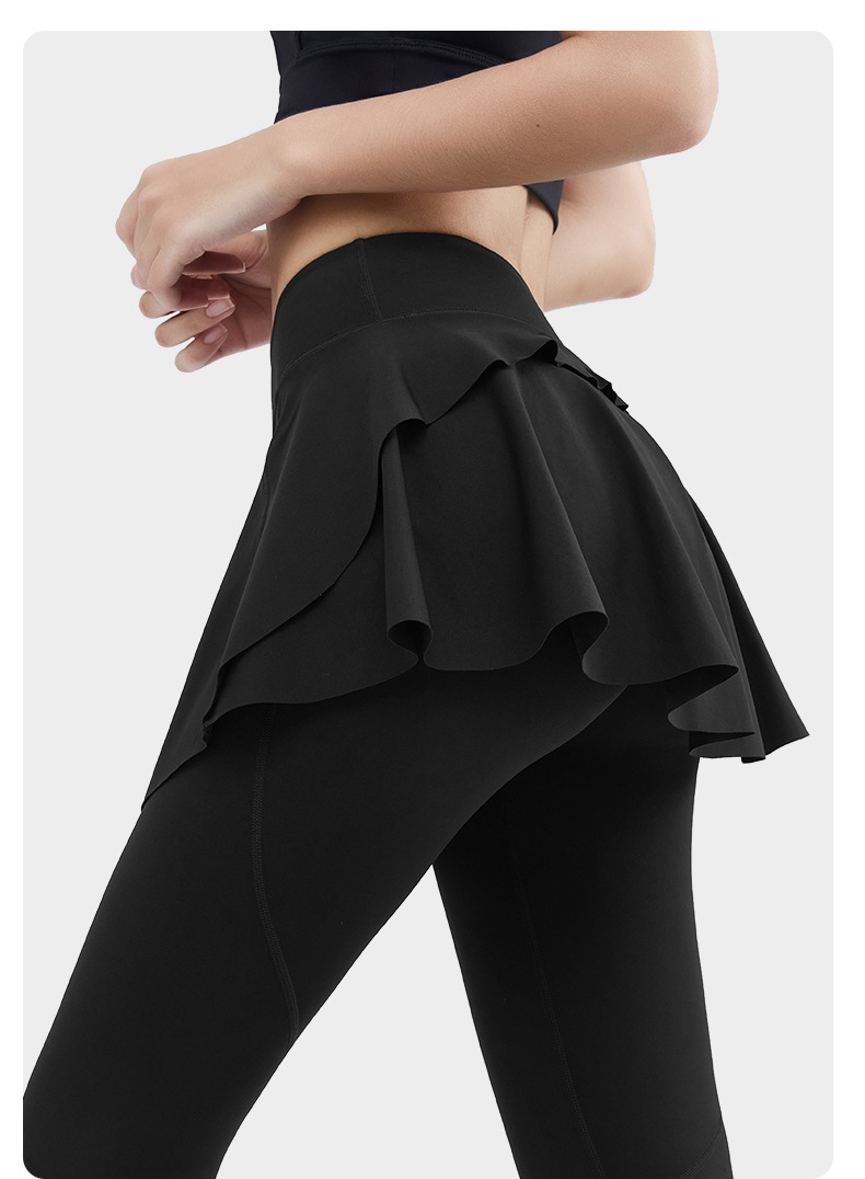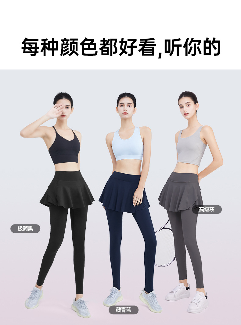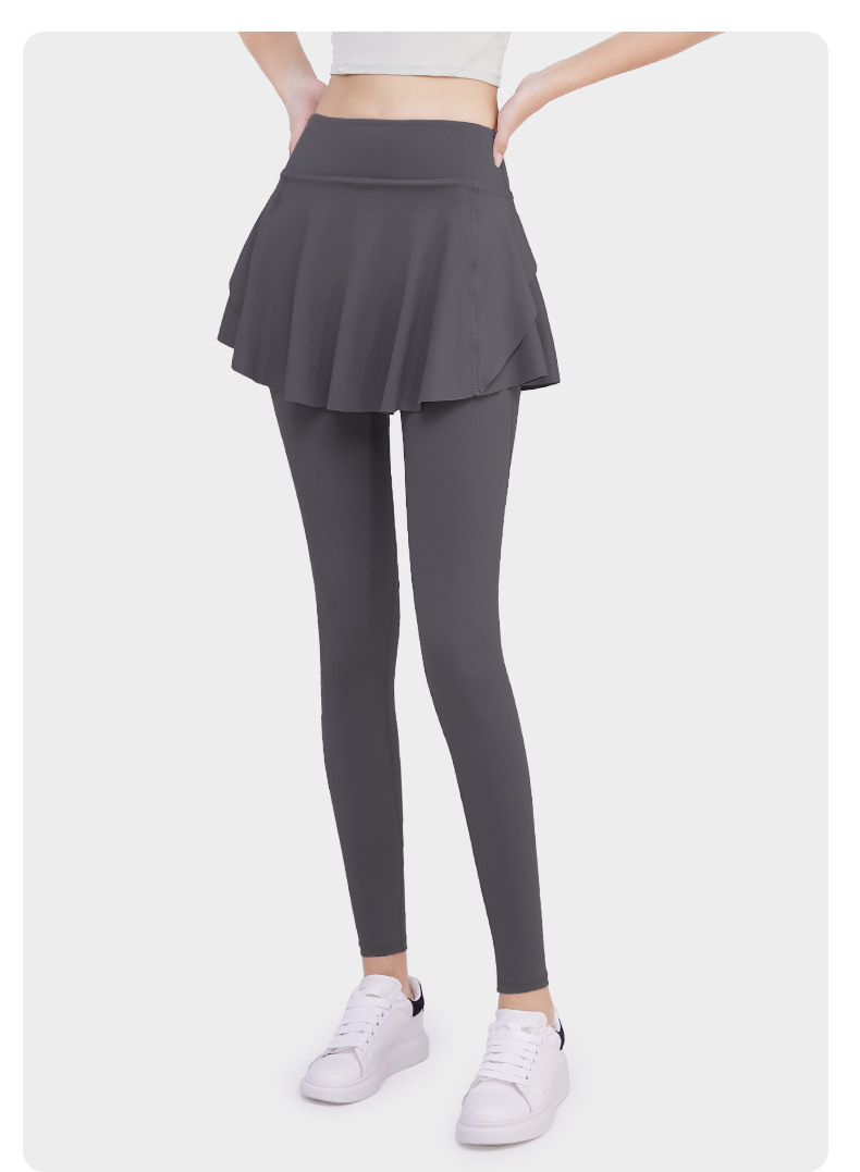 가짜 투피스 피트니스 퀼로트 여성용 하이 웨이스트 배꼽 엉덩이 리프팅 요가 바지 알몸 엉덩이 덮음 스포츠 러닝 겉옷 안티 라이트