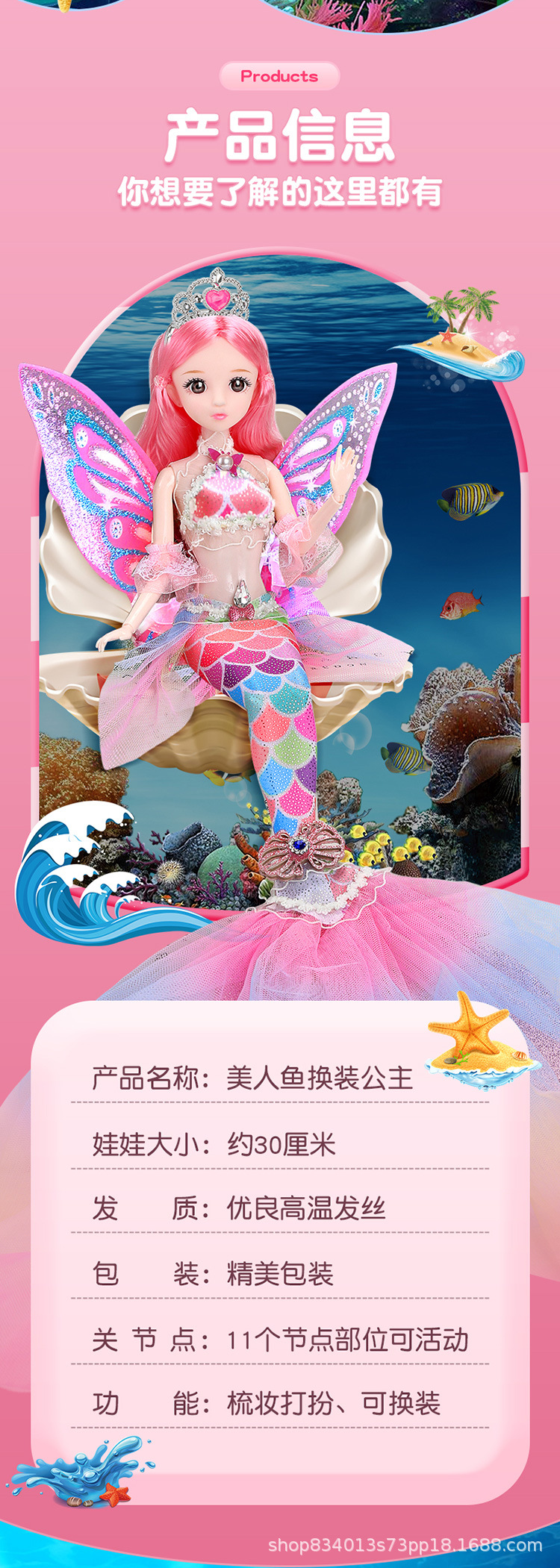 인어 공주 이순신 달콤한 바비 인형 세트 장난감 소녀 어린이 시뮬레이션 큰 소녀 원피스 인형스토어 가기
